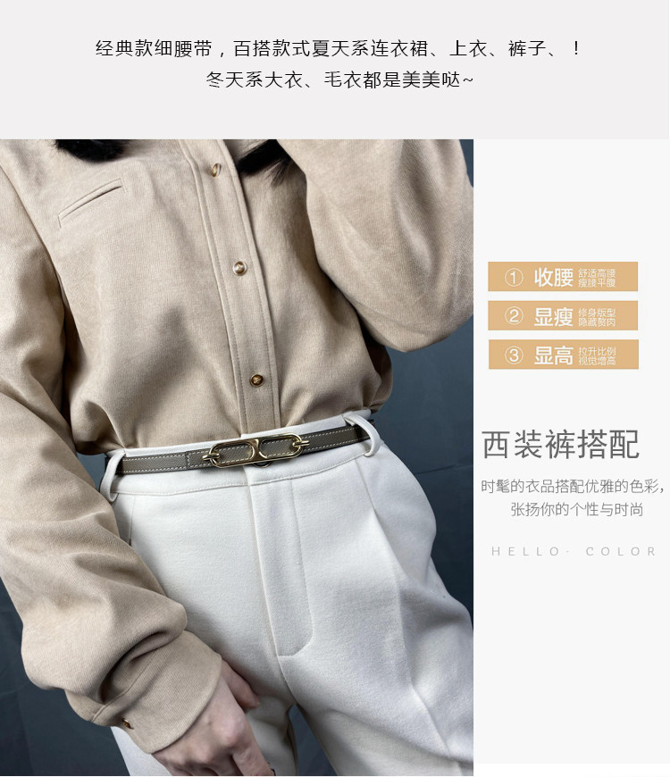 H Brand Kelly Thin Leather Belt for Women, Suitable for Pairing with Coats, Woolen Dresses, Waist-Cinching Decorative Pig-Nose Belt