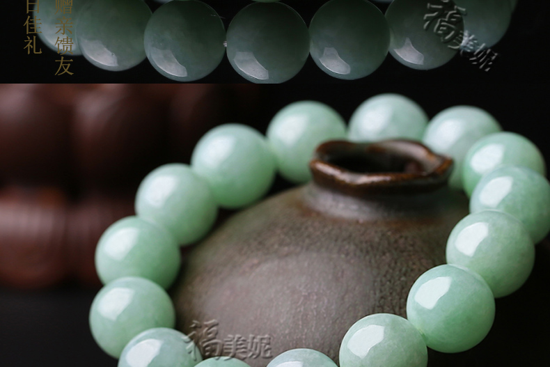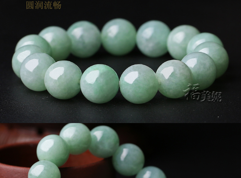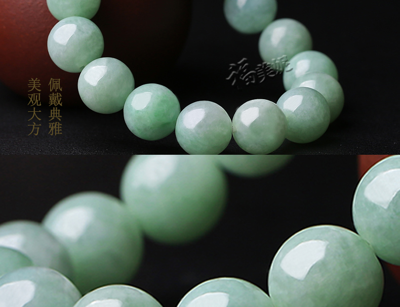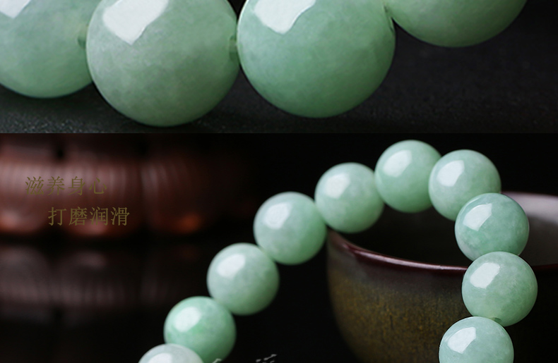Fumeini Genuine Burmese Natural Jade Bracelet for Men and Women, Beaded Bracelet, Icy Waxy Jade, Light Green Jade, A-Grade