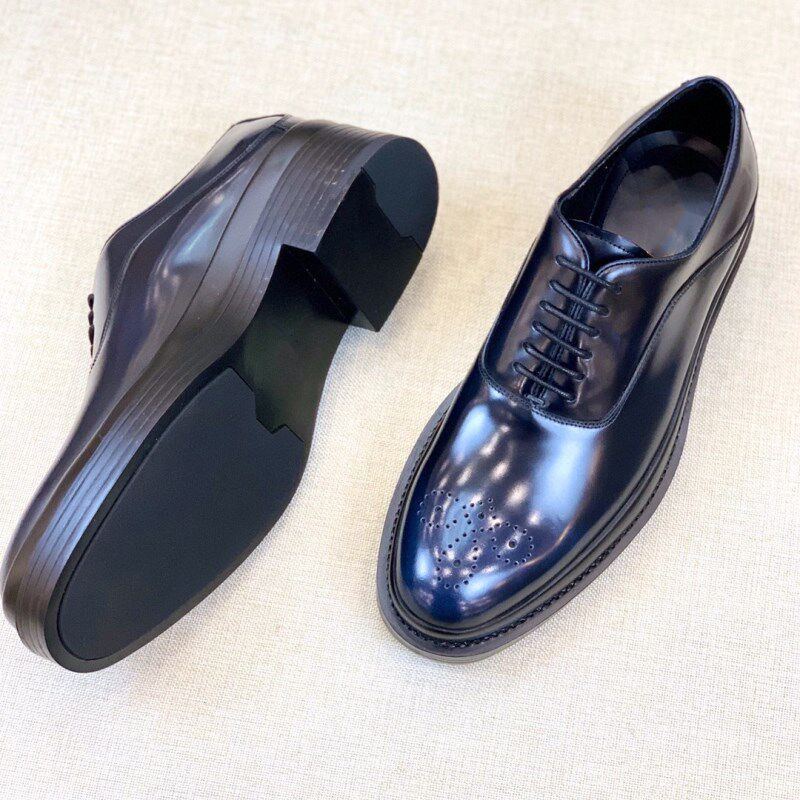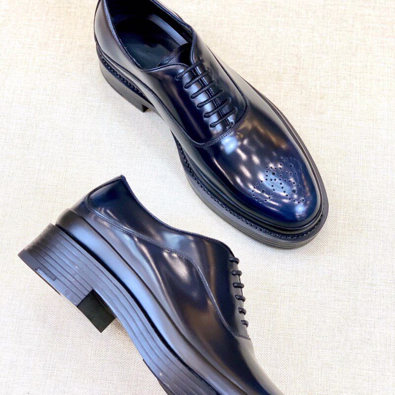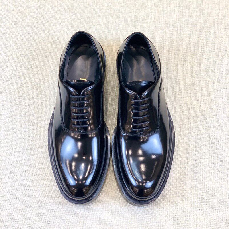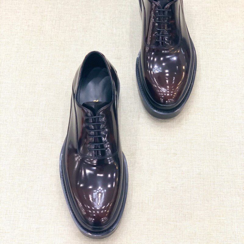 欧洲站2021春秋新款男士正装皮鞋系带休闲鞋亮面擦色德比鞋厚底鞋