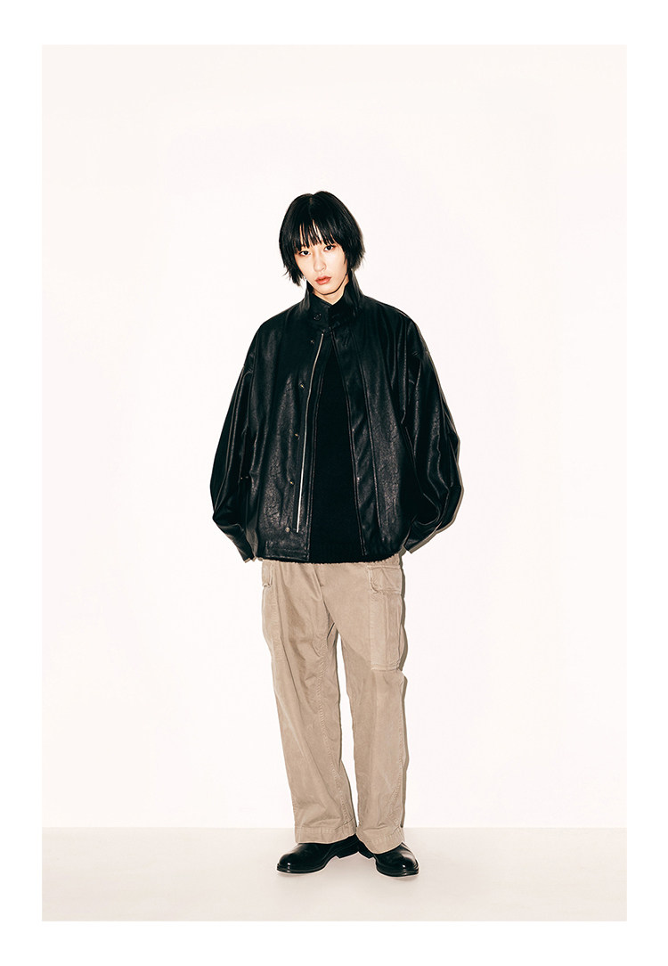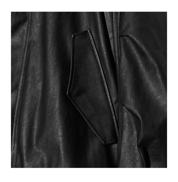 Drawstring Hem Pu Leather Jacket Korean Authentic Partimento Loose Casual Retro Stand Collar Leather Jacket