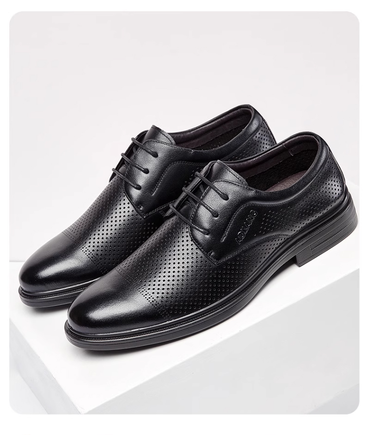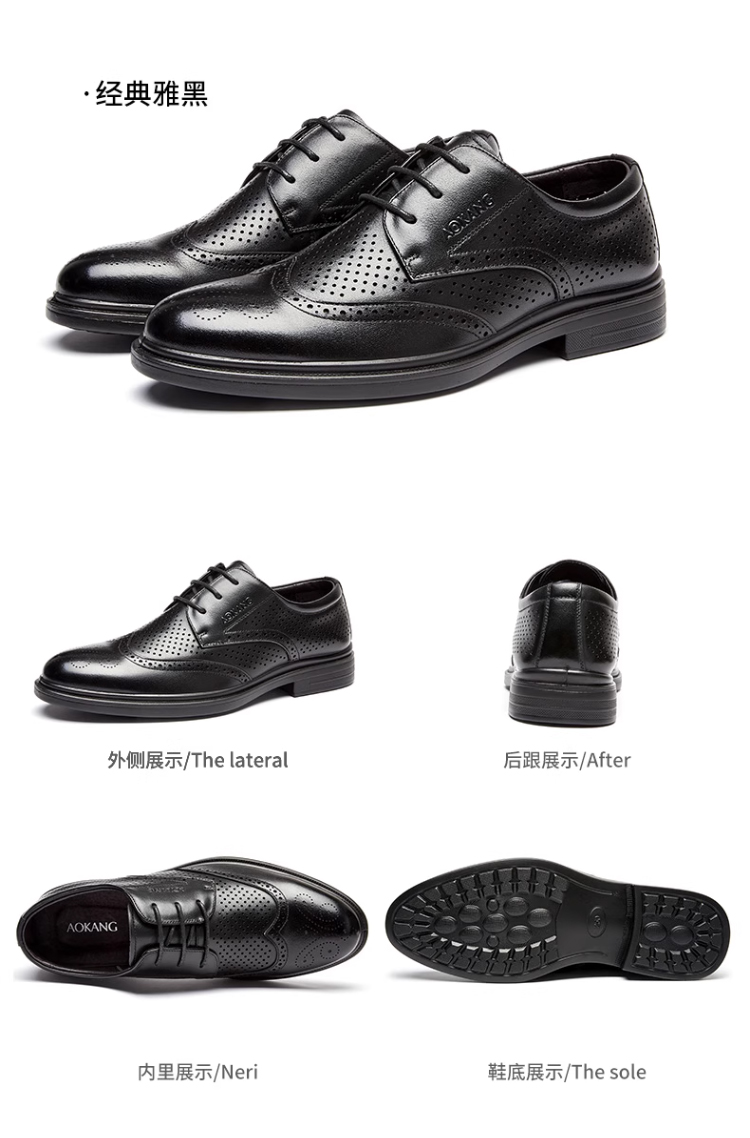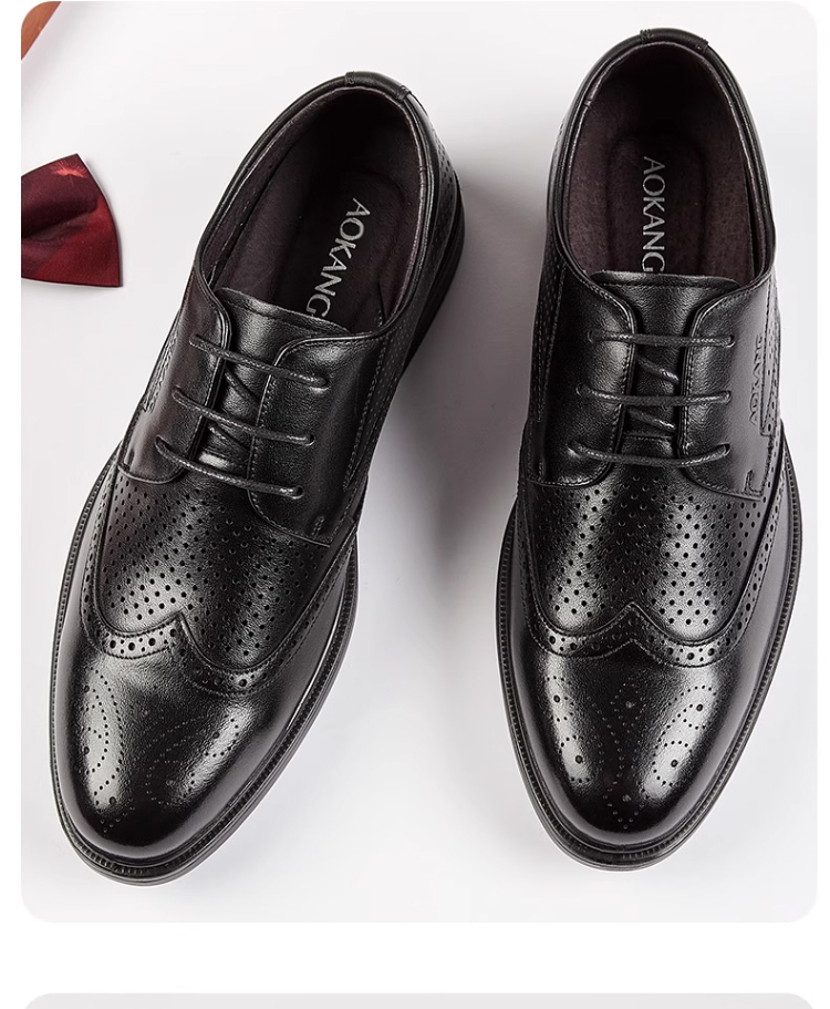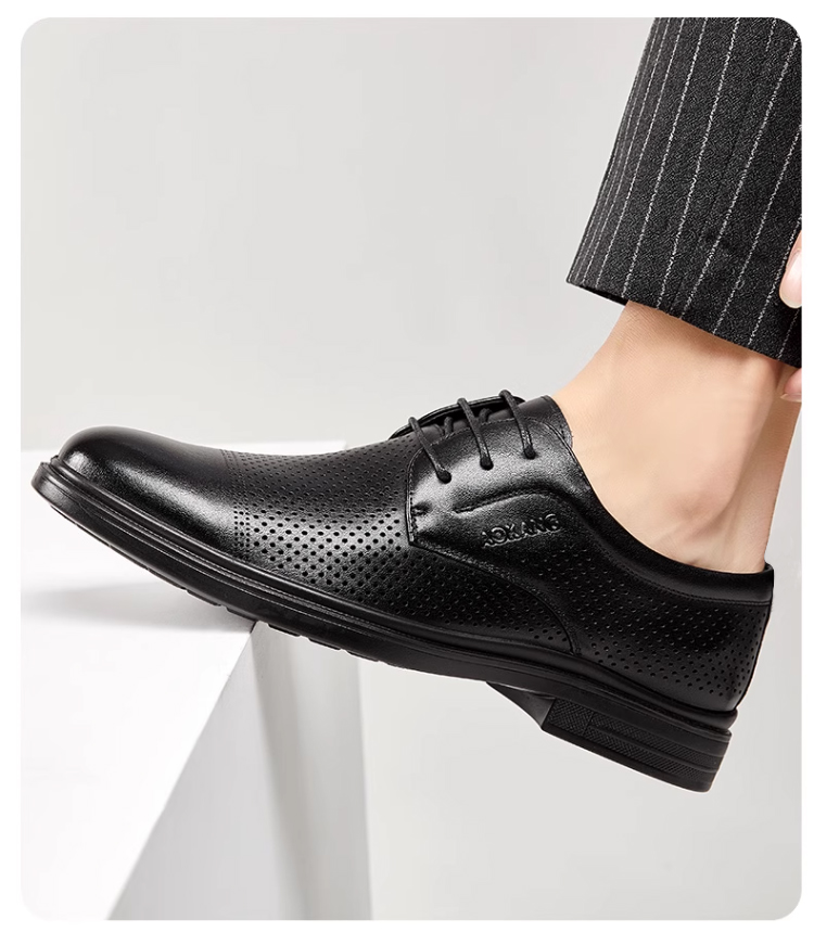 Aokang Men's Sandals 2025 Summer Cut Out Breathable Genuine Leather Business Dress Men Soft Sole Leather Shoes Plus size Hole Shoes
