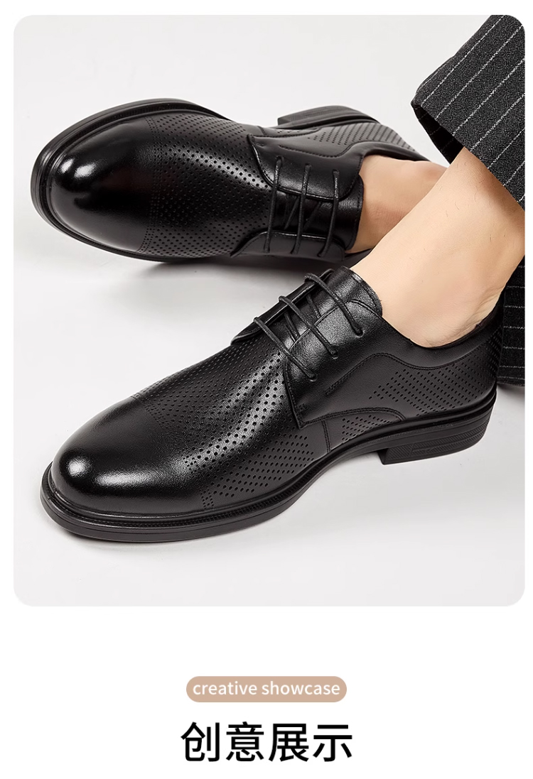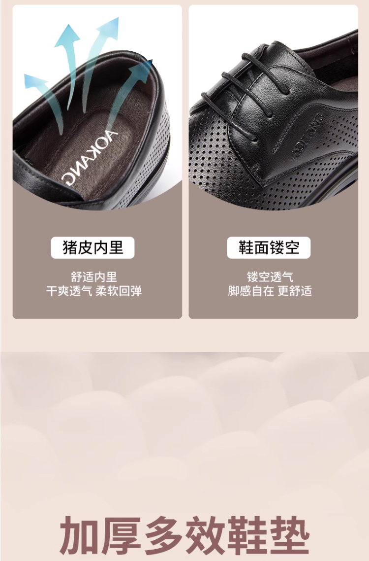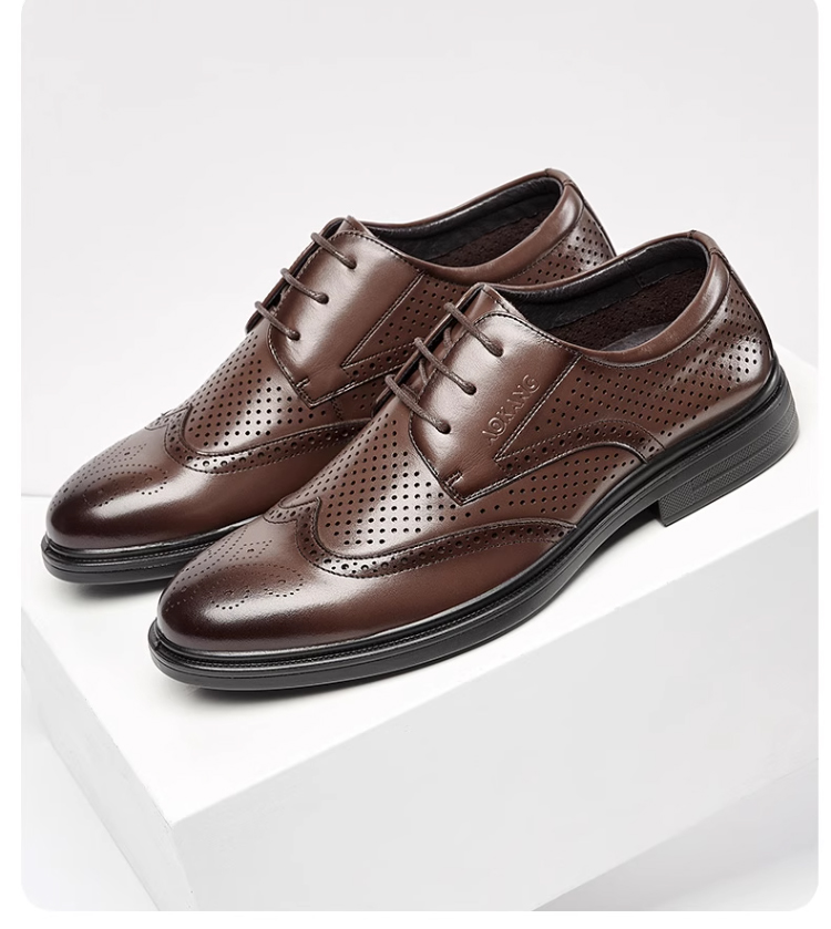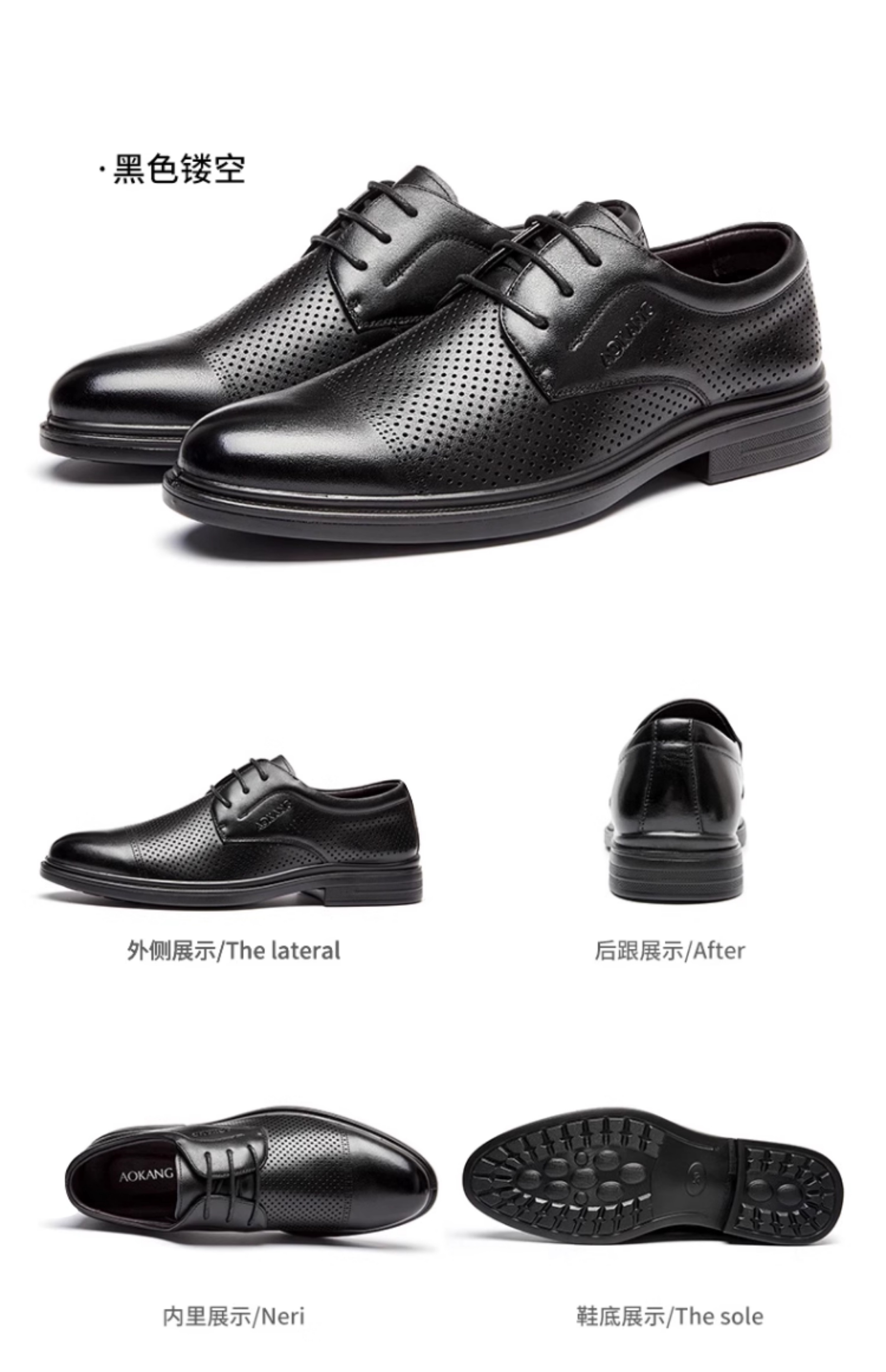 Aokang Men's Sandals 2025 Summer Cut Out Breathable Genuine Leather Business Dress Men Soft Sole Leather Shoes Plus size Hole Shoes