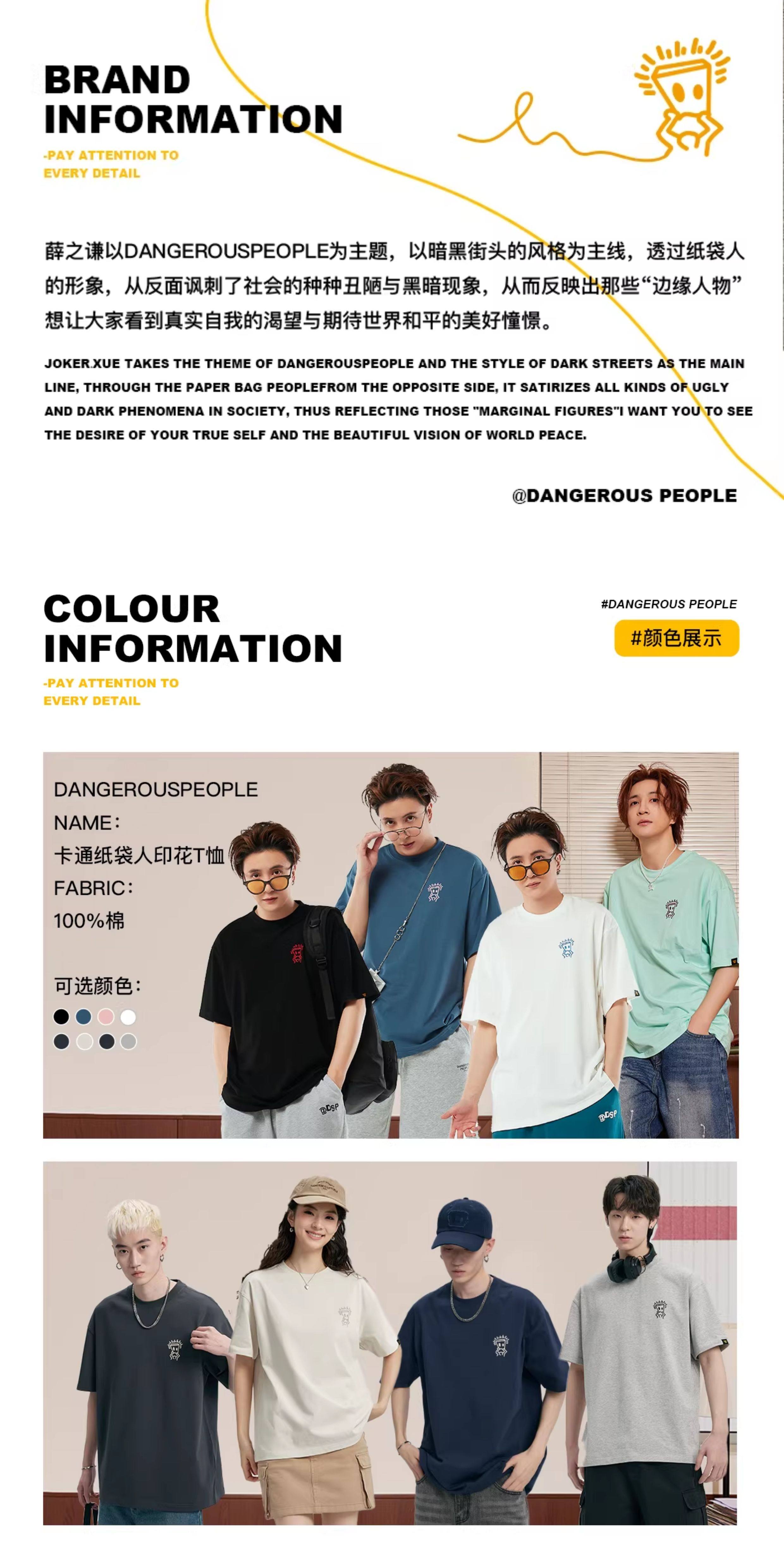 Dangerouspeople Joker Xue Dsp Short-Sleeve Trendy Brand Basic Loose Casual Trendy Couple Solid Color T-Shirt