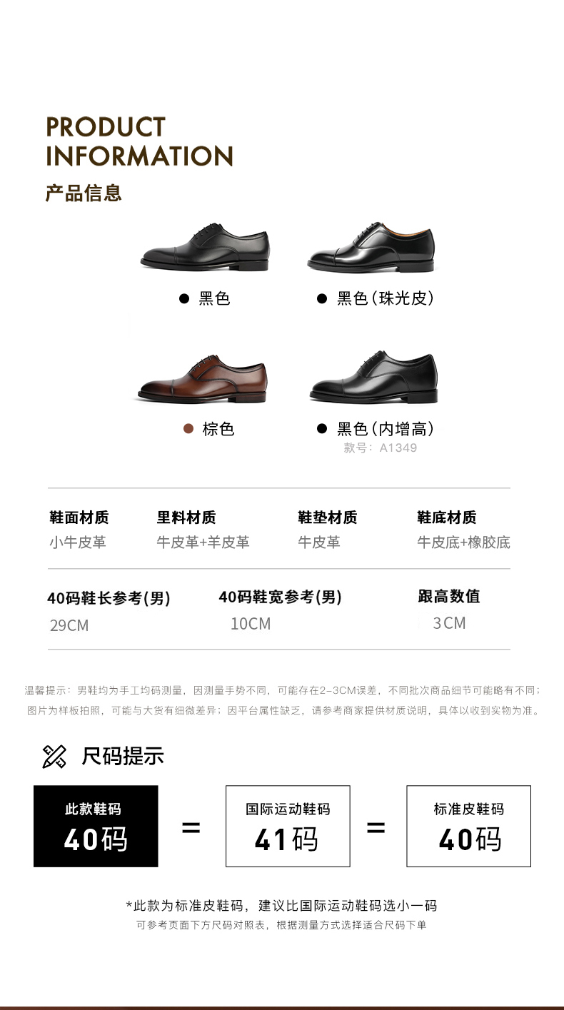 Zhang Linghe's Same Style Belle Shoes, Men's Business Formal Oxford Leather Shoes, Men's Height-Increasing Wedding Shoes 59736