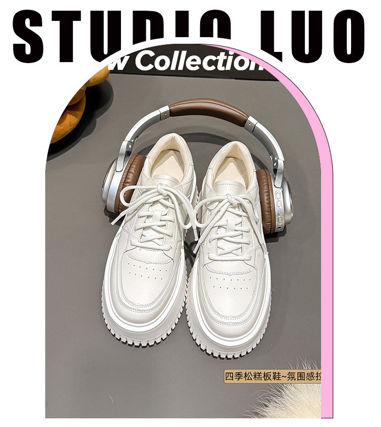 Hong Kong Style Small-Sized Thick-Soled Height-Increasing Genuine Leather White Sneakers for Women, 2026 Spring and Autumn New Versatile Platform Shoes, Korean Version