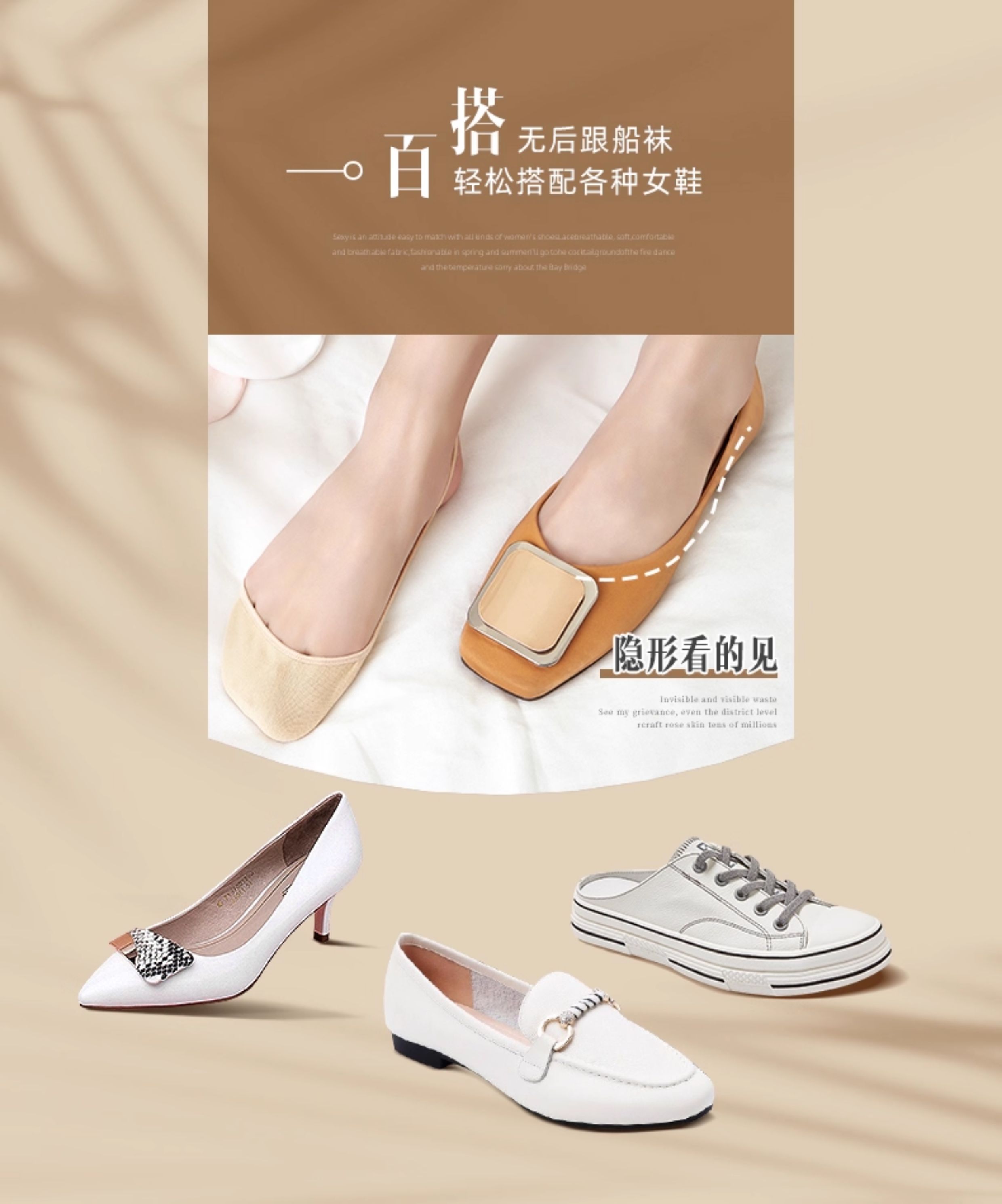 Strappy Boat Socks for Women, High Heel Socks, Cotton, Non-Slip, Shallow Mouth, Summer Thin Style, Forefoot Cotton Pad, Single Shoe Invisible Socks