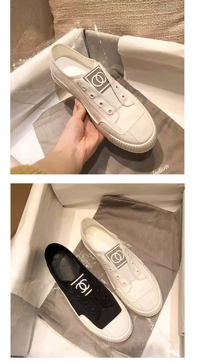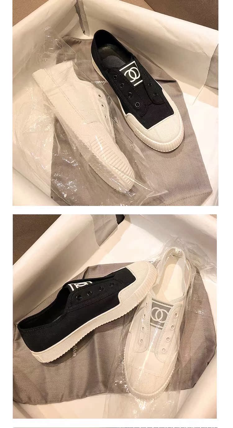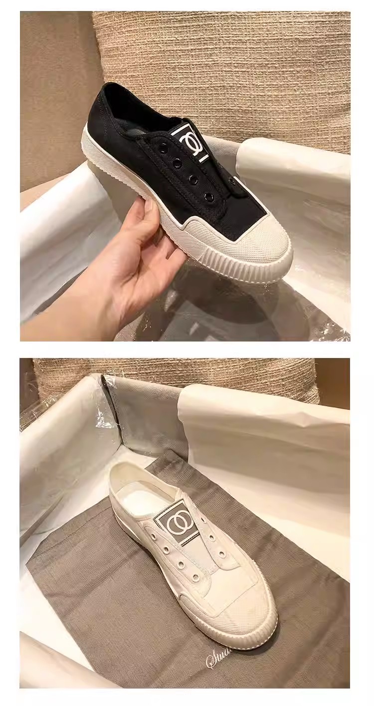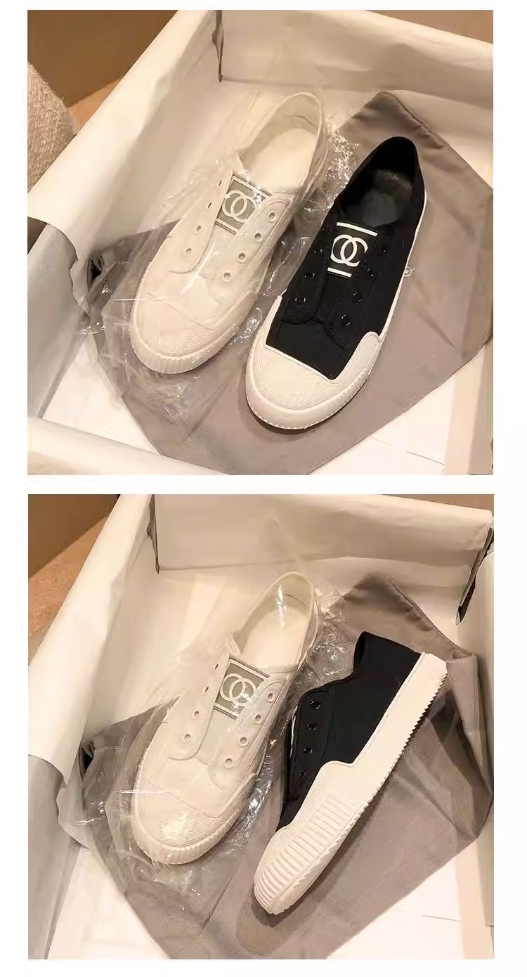 Hong Kong White Canvas Shoes for Women, 2025 Spring and Autumn New Style, Chanel-Inspired Flat Breathable Slip-On Sneakers