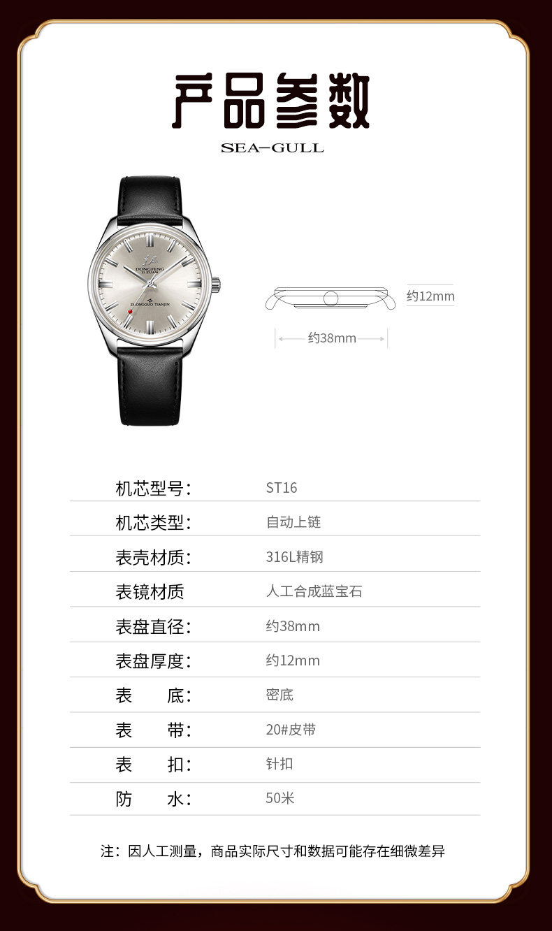 Seagull Watch Men's Automatic Mechanical Watch Casual Retro Classic Replica Dongfeng Watch Gift Box 6125