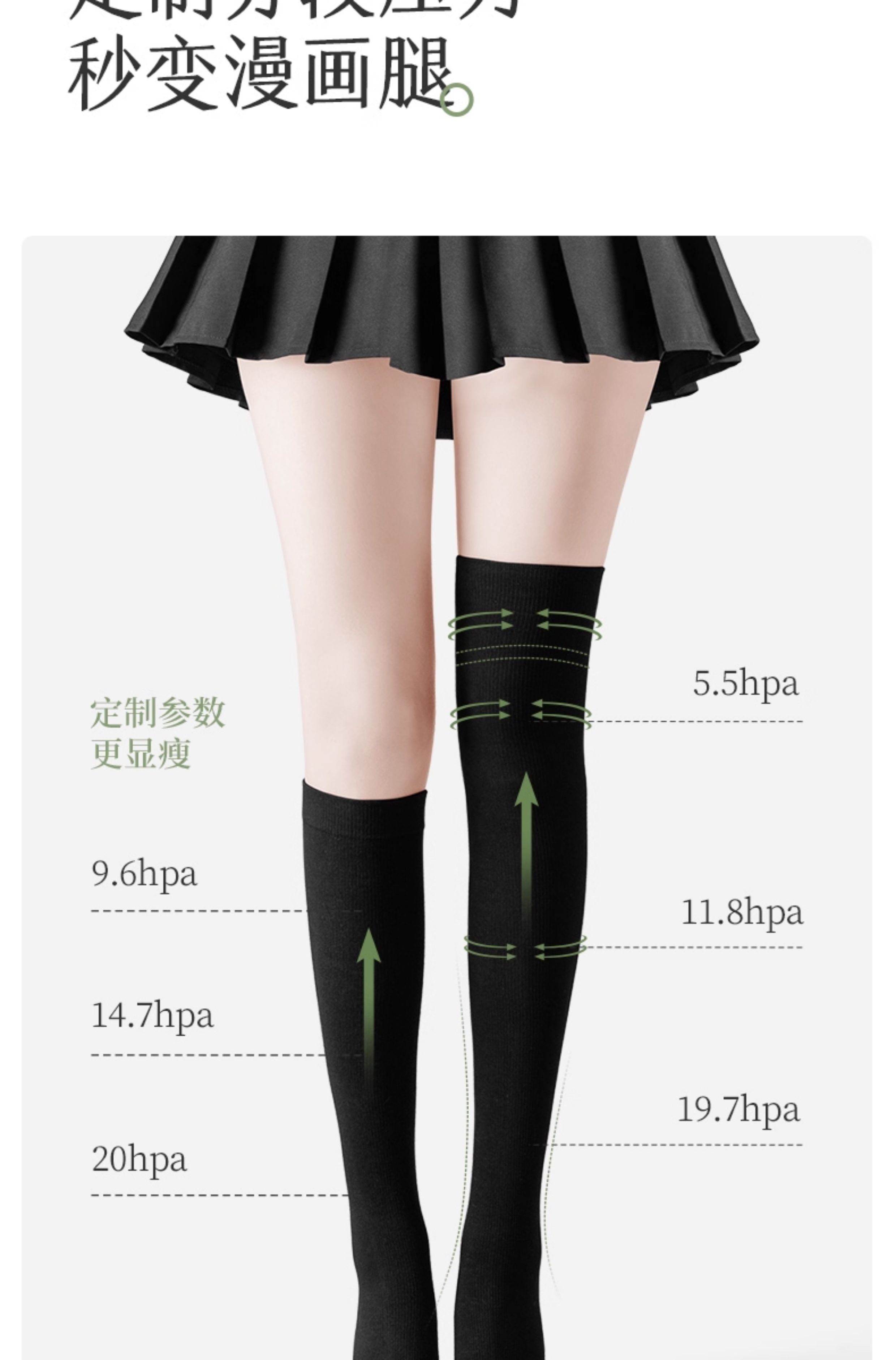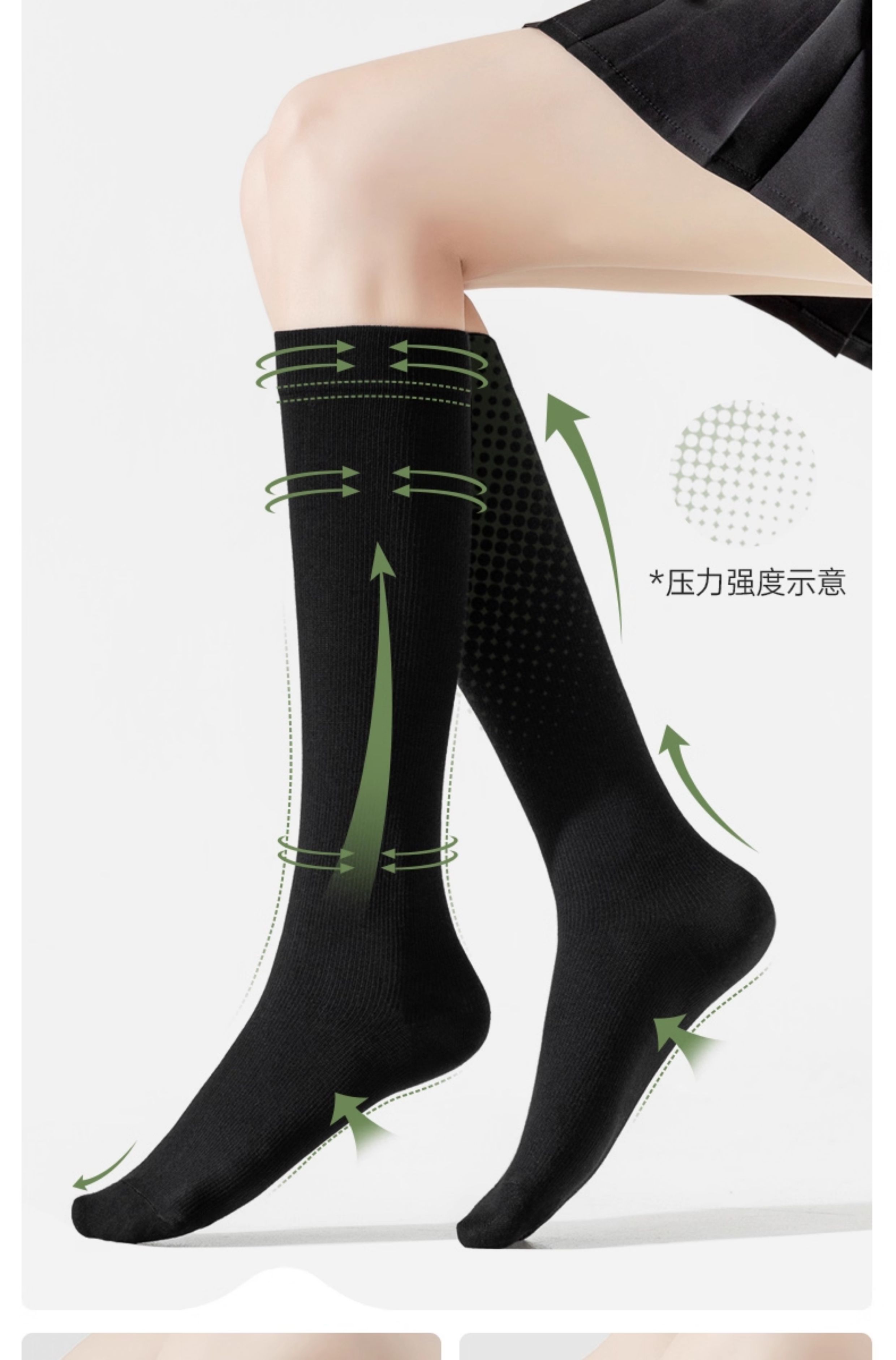 Compression Calf Socks for Women, Autumn and Winter, Strong Compression Slimming Mid-Calf Jk Socks, Long Socks, Over-The-Knee Socks, Non-Slip Black Long Socks