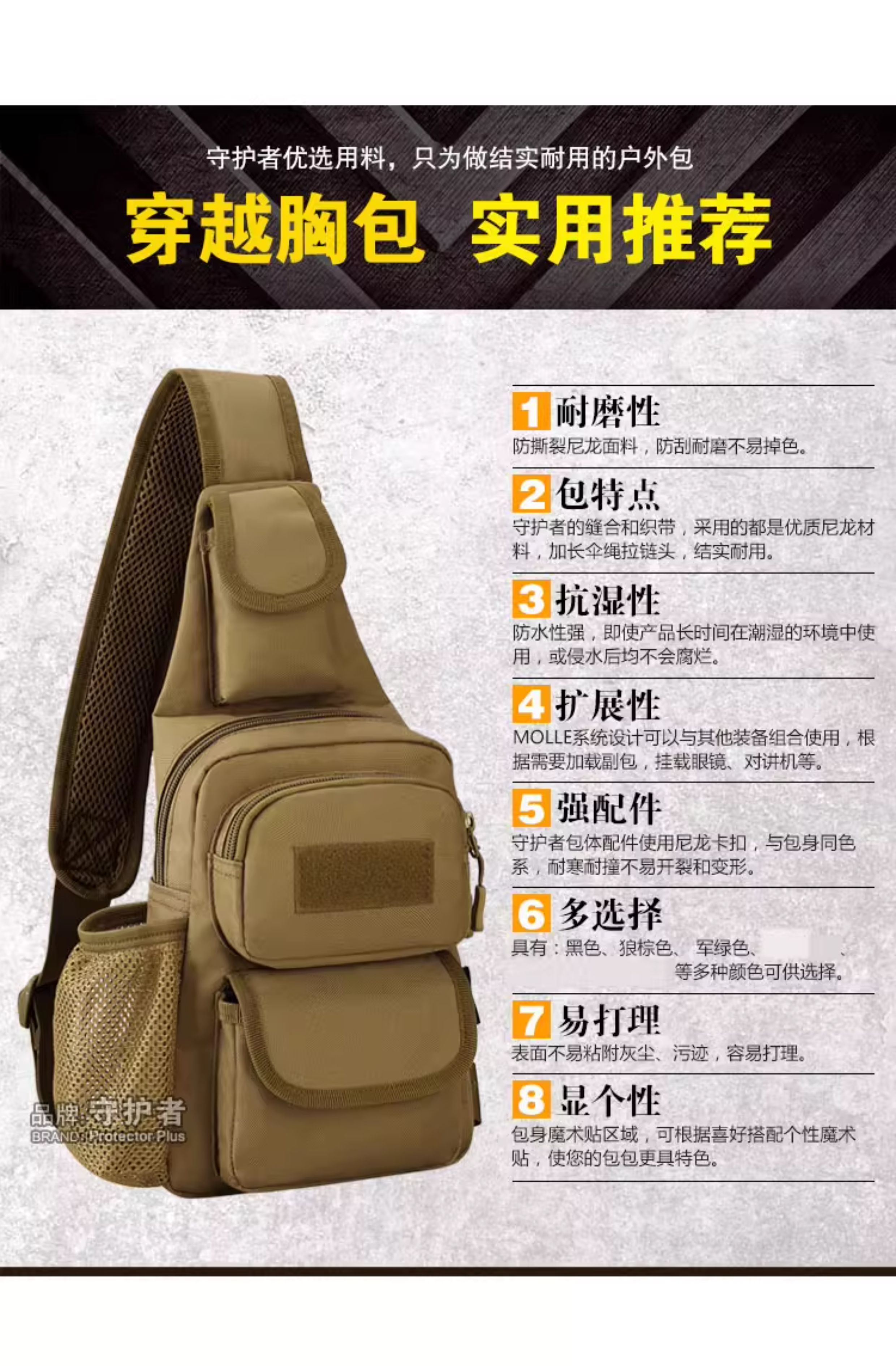 Guardian Chest Bag for Men, Outdoor Sports and Leisure Tactical Canvas Shoulder Crossbody Bag, Multifunctional Lure Slingshot Bag
