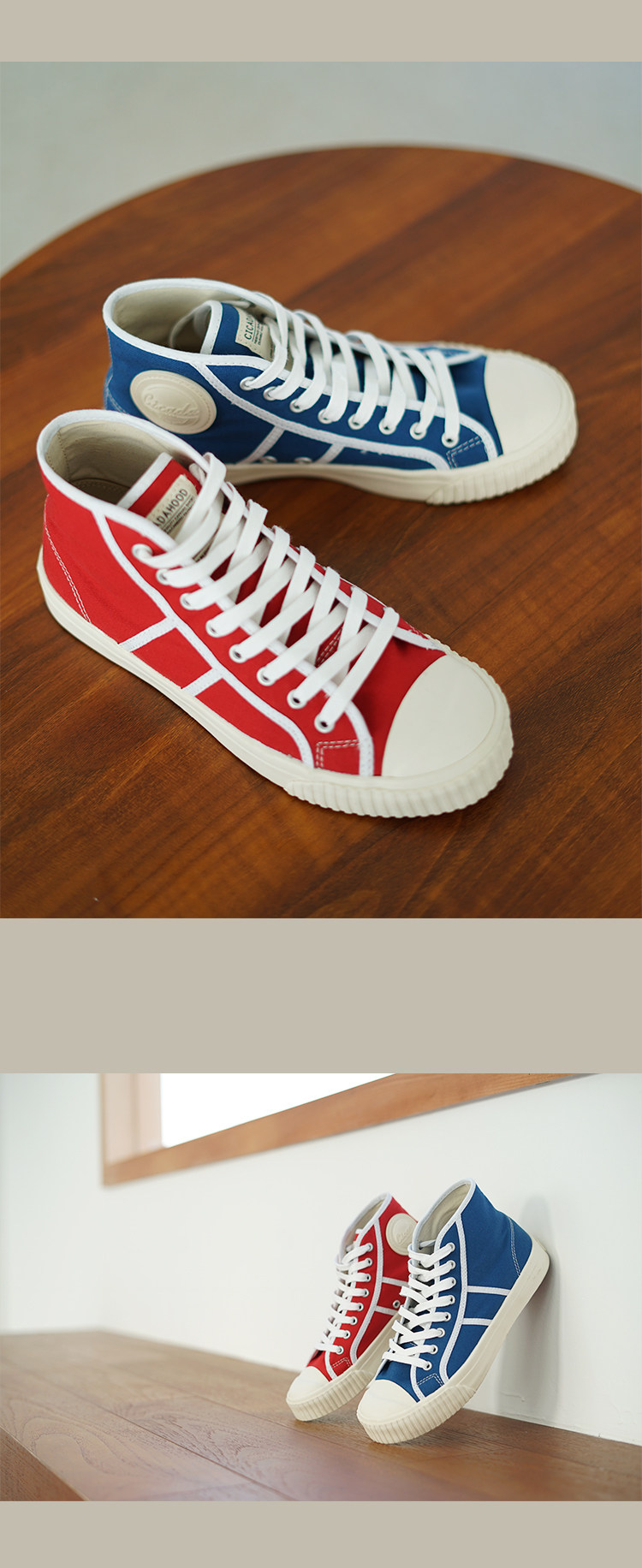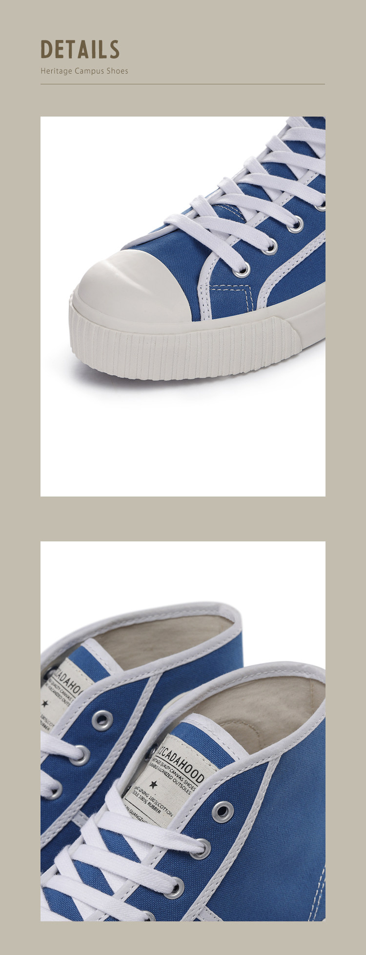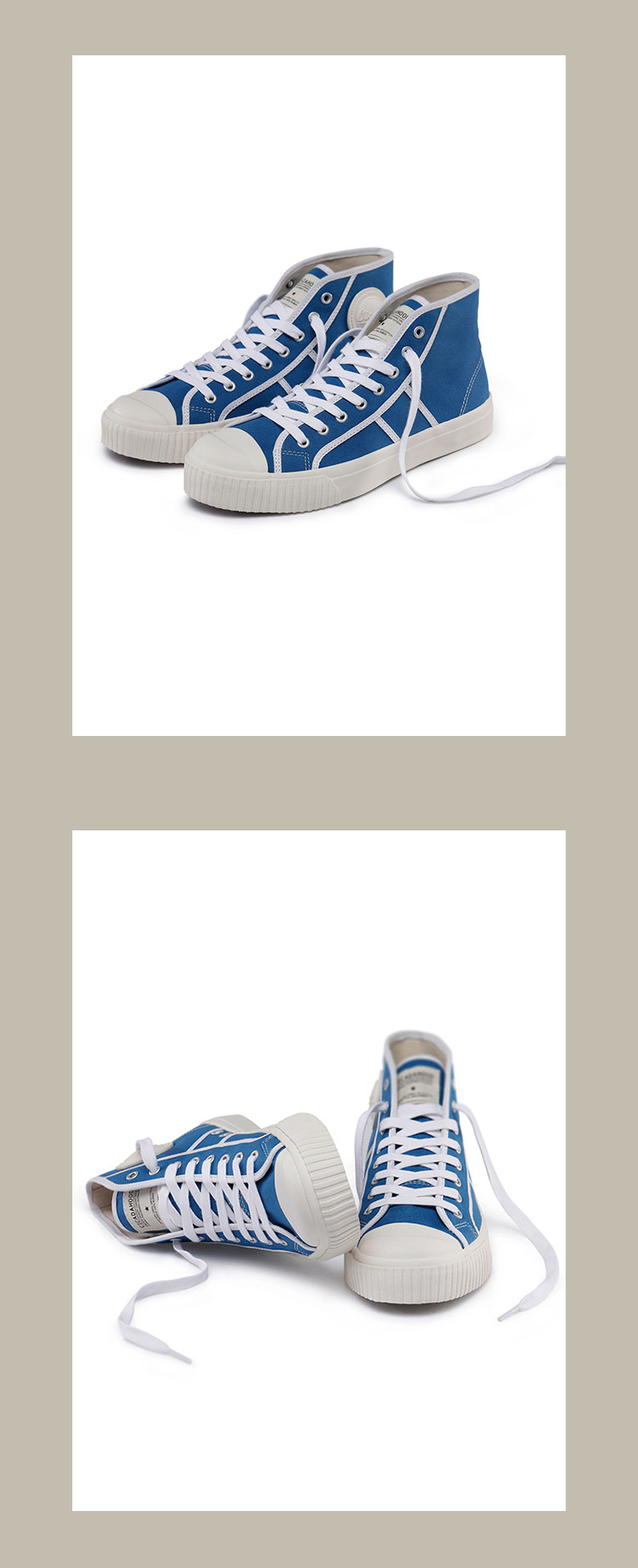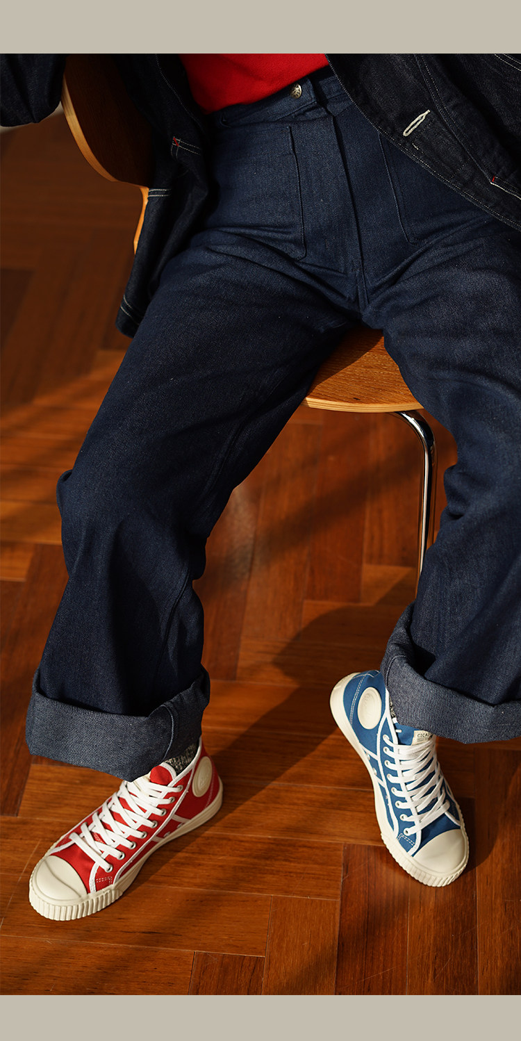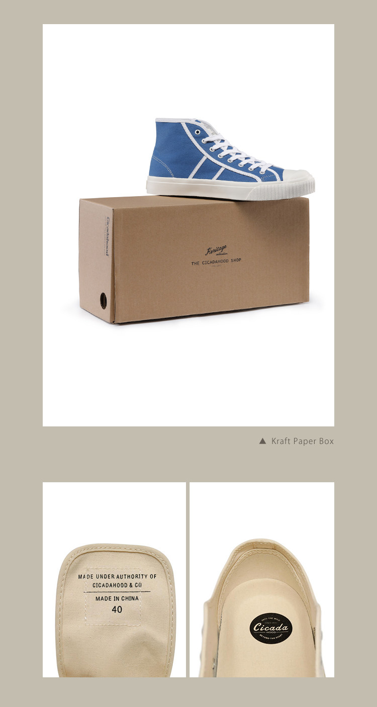 Cicadahood Japanese Okayama Canvas High-Top Vulcanized Shoes, Bright Blue Version, Original, Retro College Style