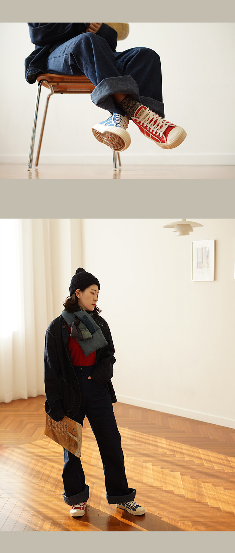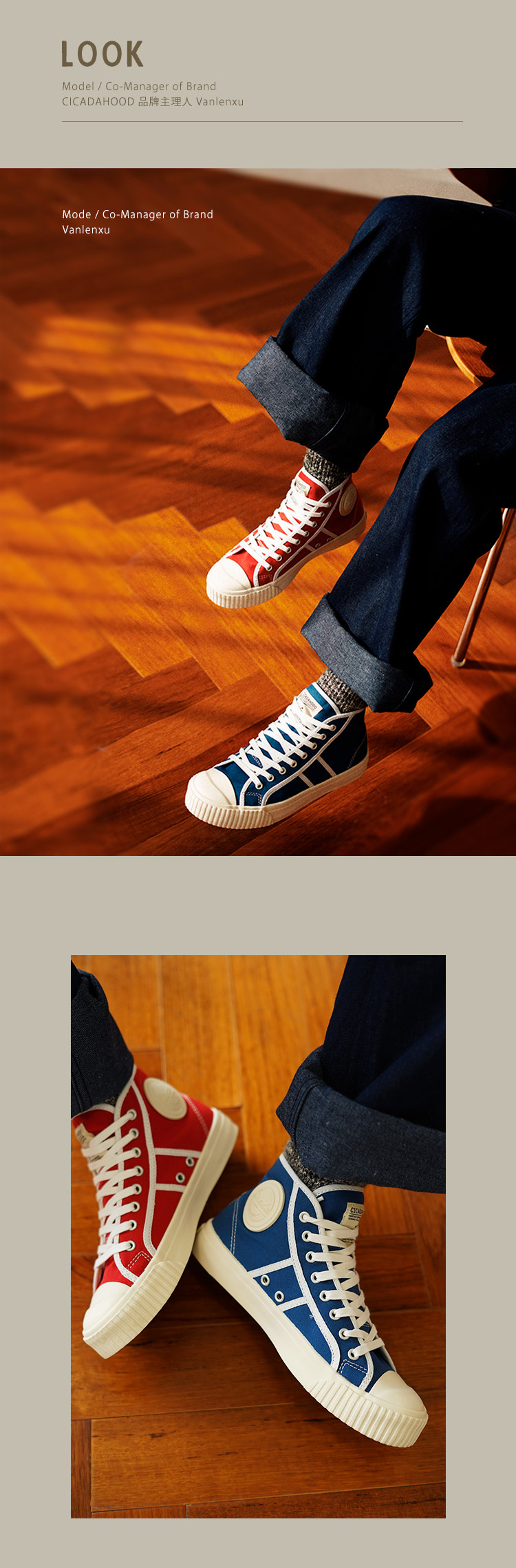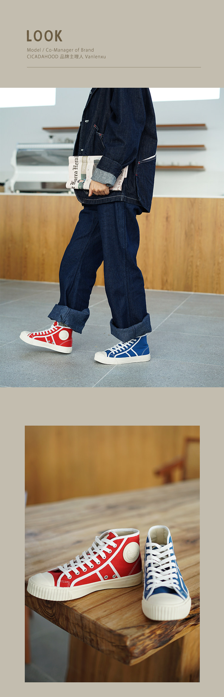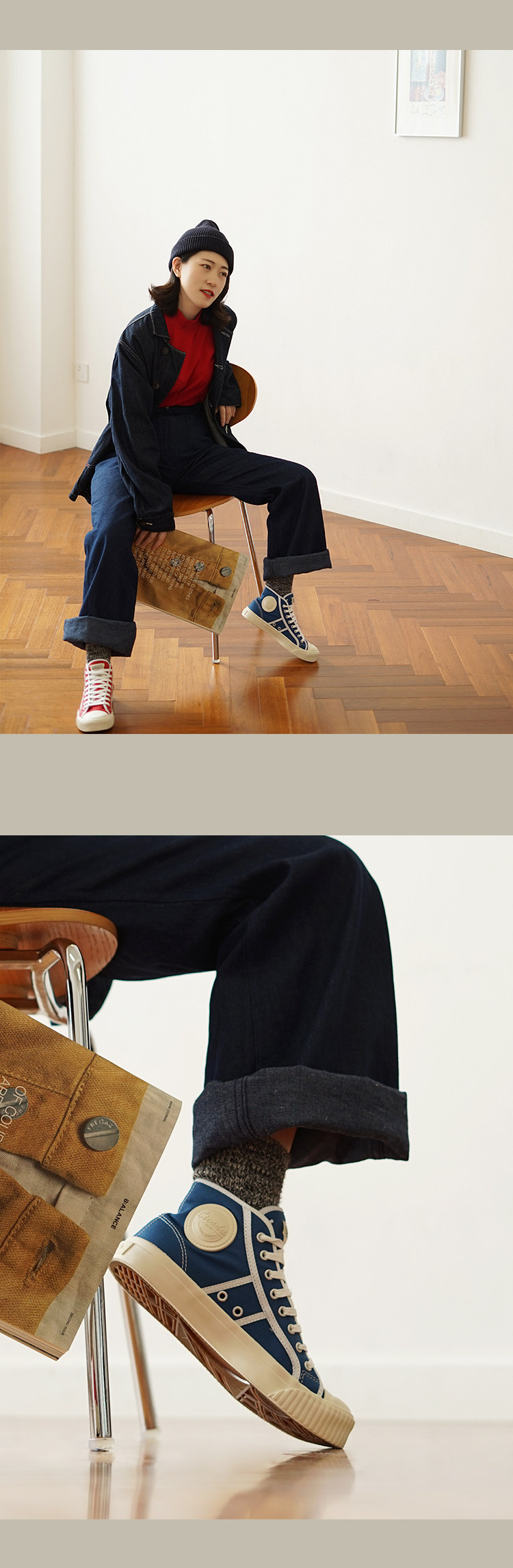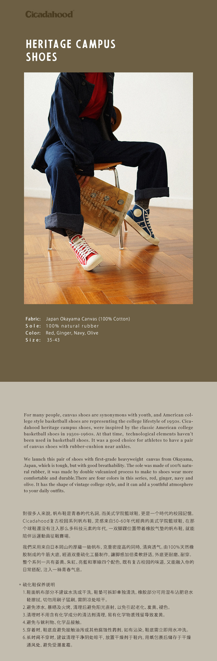 Cicadahood Japanese Okayama Canvas High-Top Vulcanized Shoes, Bright Blue Version, Original, Retro College Style