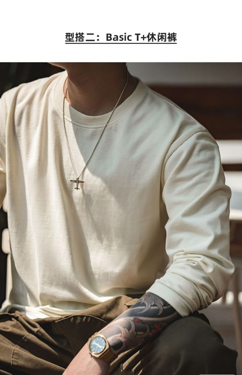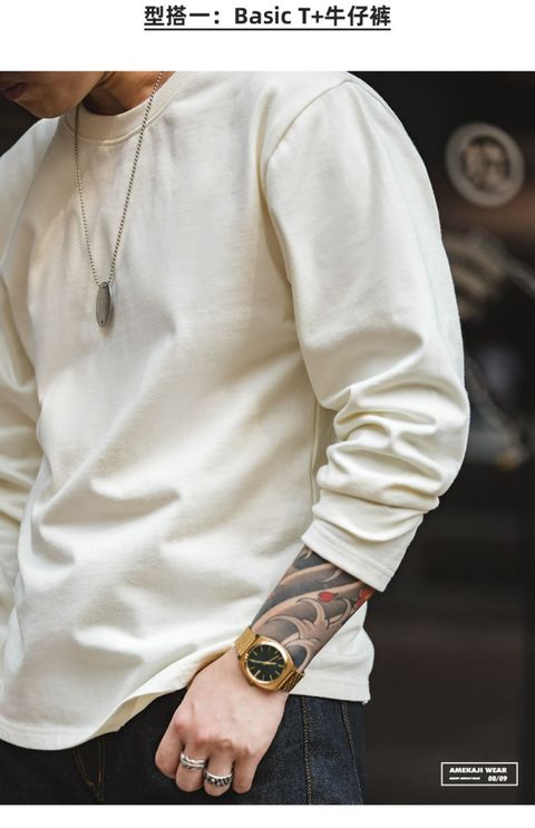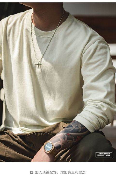 Madden Workwear American-Style 300g Pure Cotton Heavyweight Long-Sleeve T-Shirt White Crew Neck Inner Layer Sweatshirt Base Shirt for Men Autumn