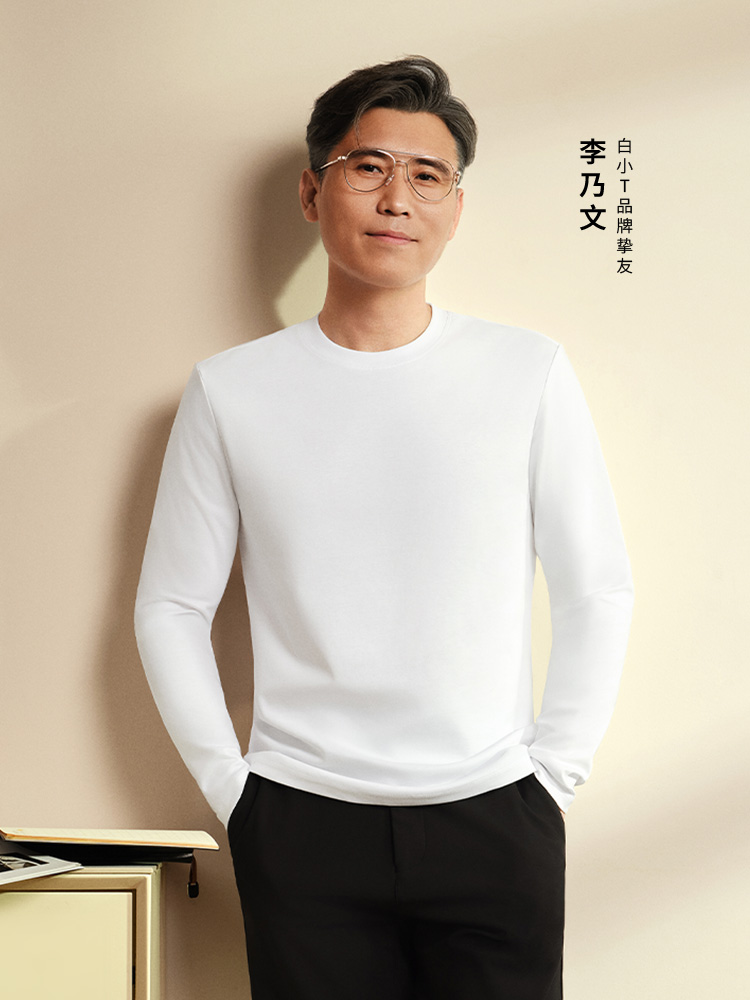 [Li Naiwen Same Model] Thumb White Small T Second Generation Long sleeves T-Shirt Autumn New arrival pure cotton Three-proof Men's and Women's Backing Shirt