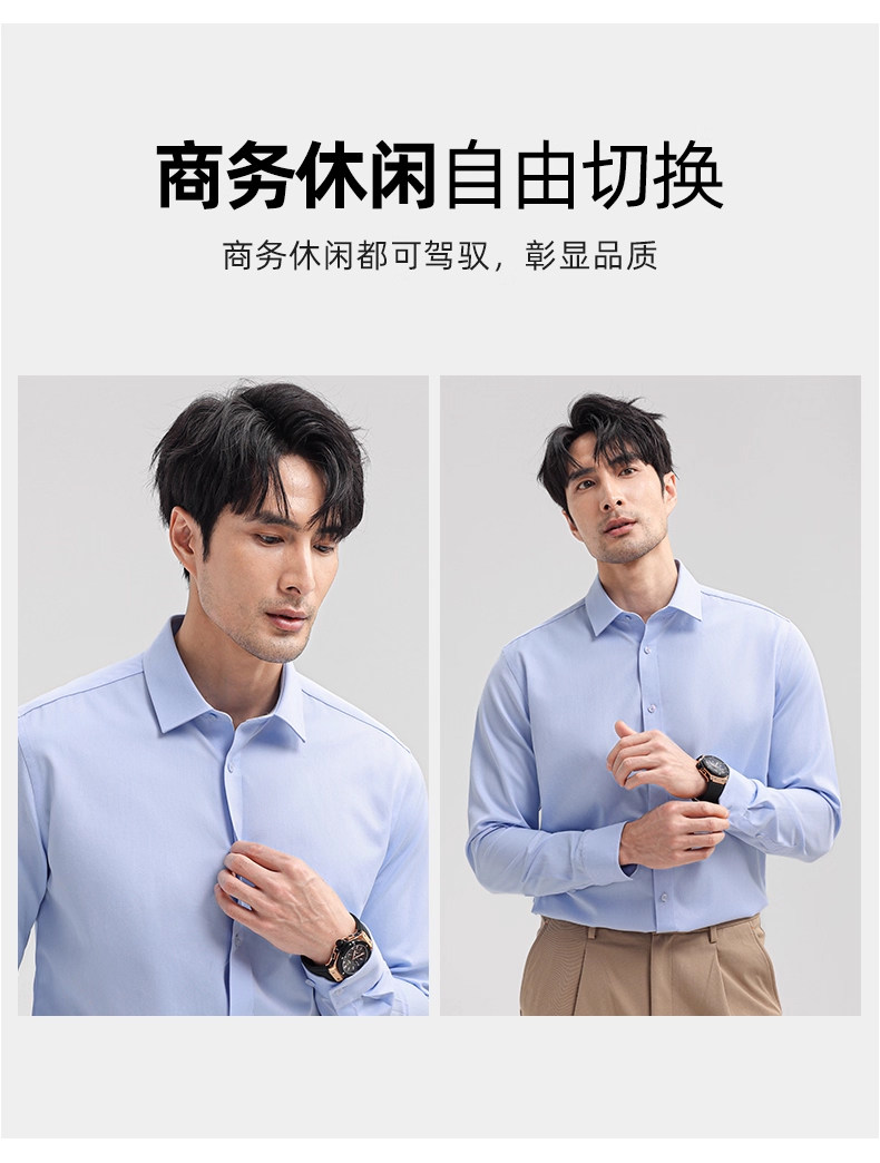 [Dp Ready-To-Wear No-Iron] Romon Men's Easy-Care Long-Sleeve Shirt 2026 Spring/Summer Pure Cotton Workwear Blue Shirt