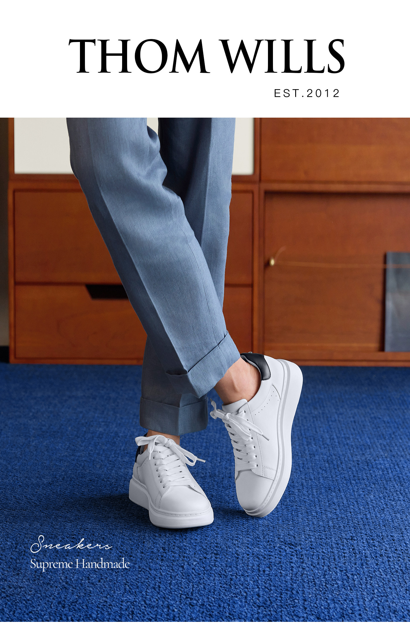 Thomwills Men's Shoes, White Sneakers with Hidden Height Increase, Thick Sole, Black Heel, Casual Leather Shoes, White Sneakers for Summer