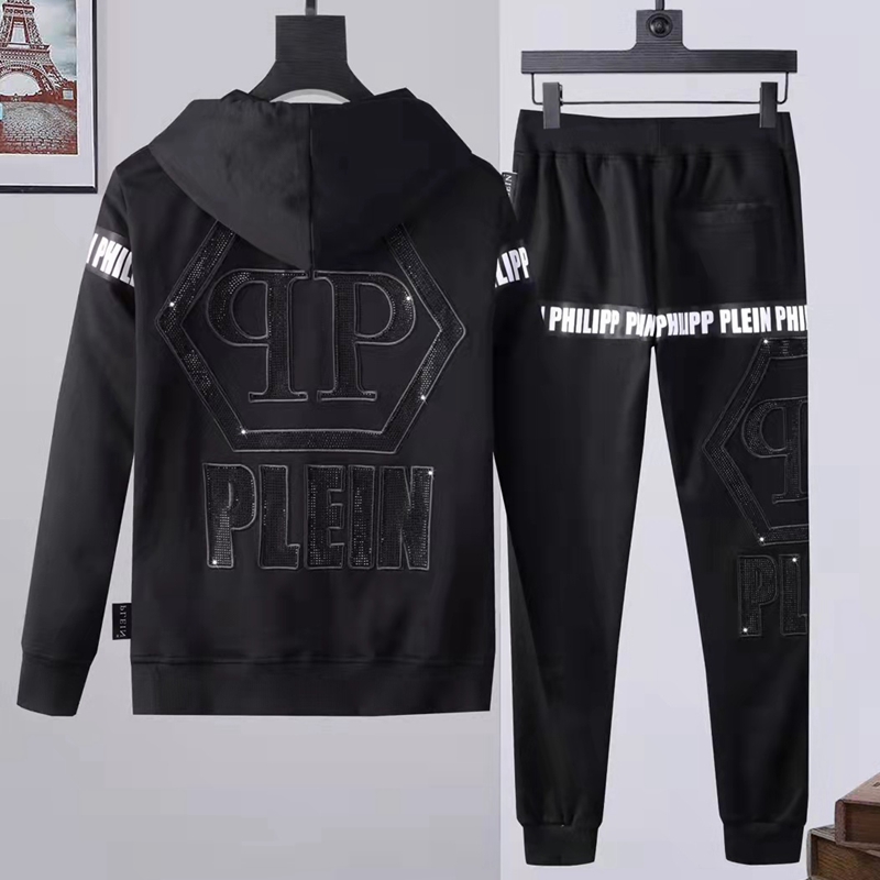 2021 Autumn Trendy Brand Qp Letter Print Sweatshirt and Sweatpants Two-Piece Set Men's Cardigan Zipper Philip Pp Suit