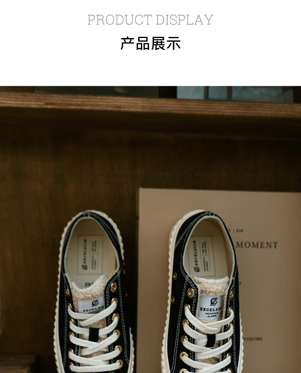 Excelsior Biscuit Shoes, Fleece-Lined Women's Shoes, Sports Casual Shoes, Men's Low-Top Sneakers, Height-Increasing Thick-Soled Canvas Shoes