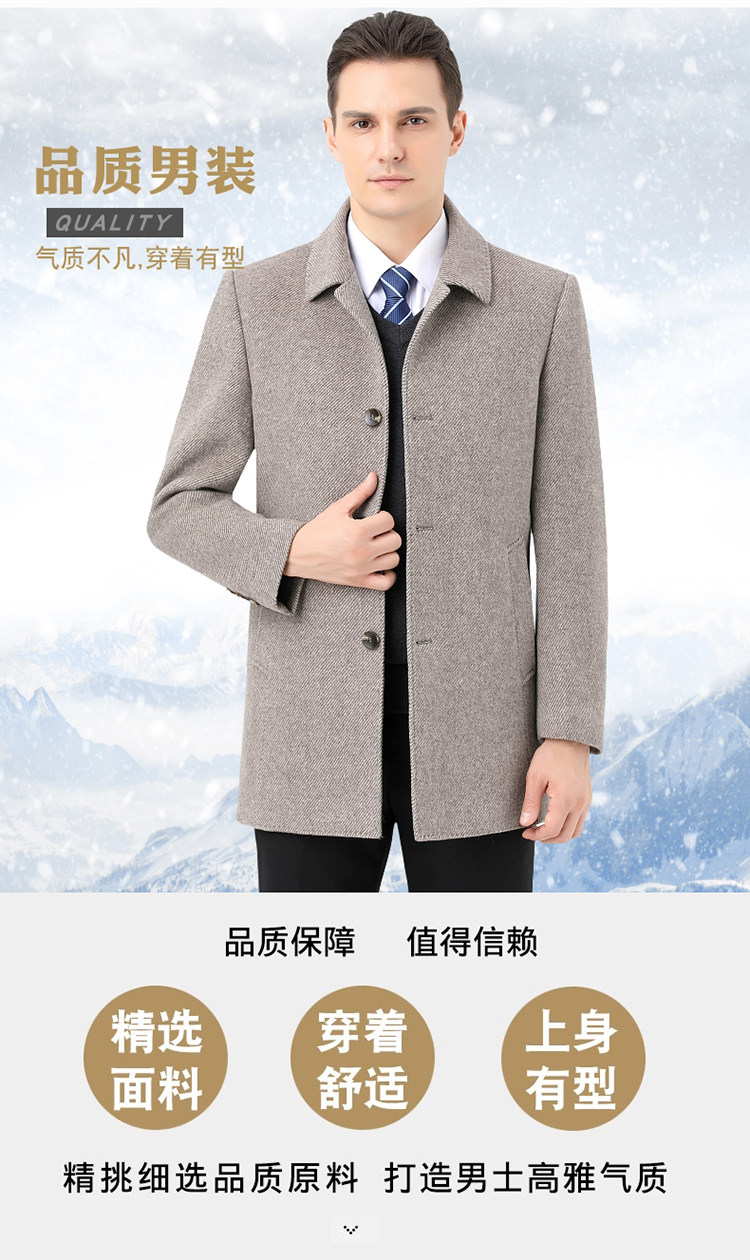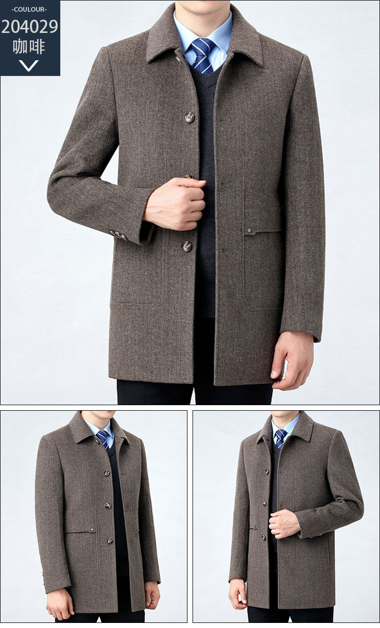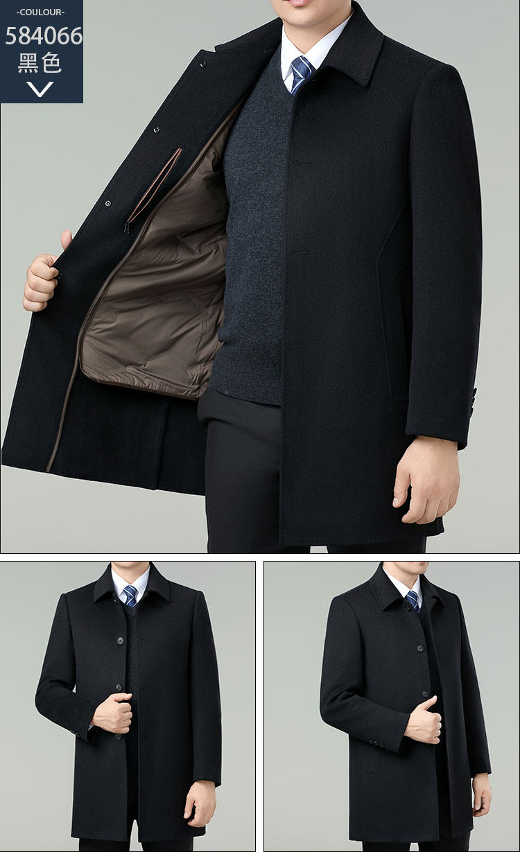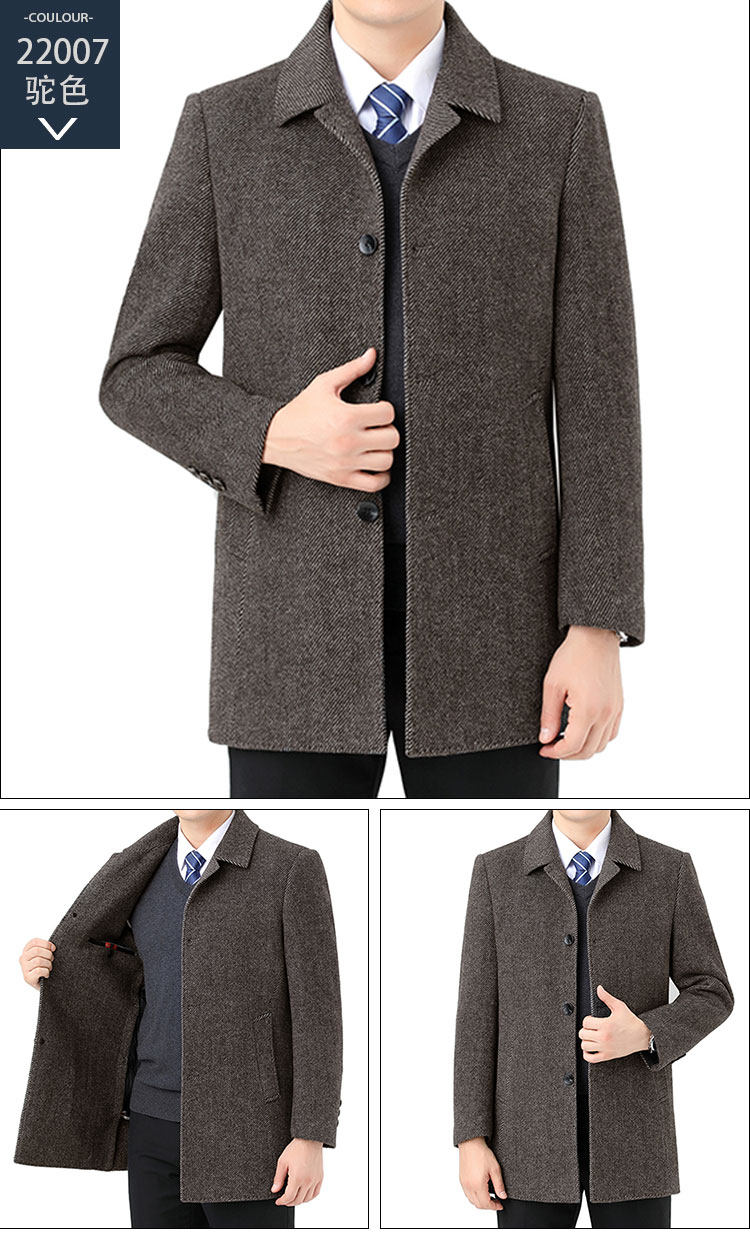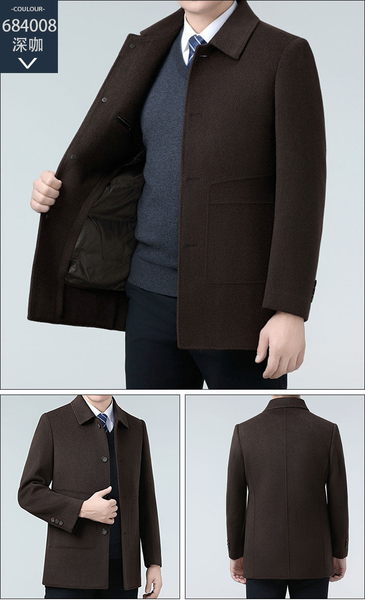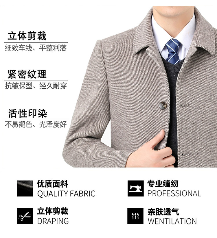 Hengyuanxiang Autumn and Winter Double-Sided Wool Men's Woolen Trench Coat for Middle-Aged Men, Woolen Coat for Middle-Aged and Elderly Men, Dad's Clothing