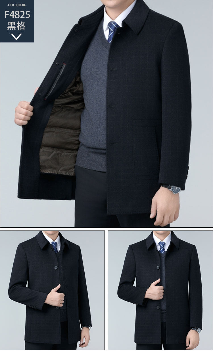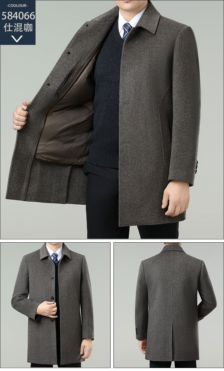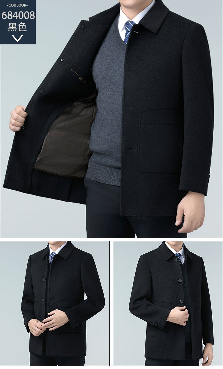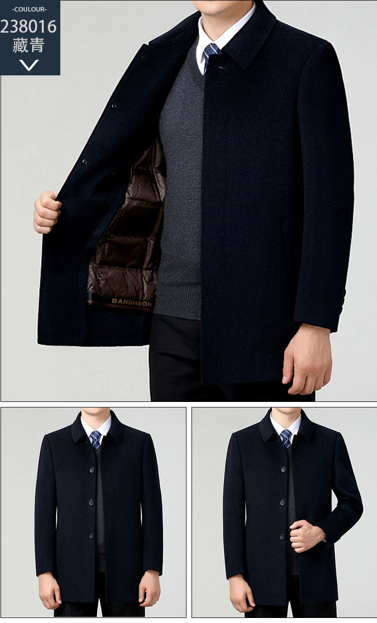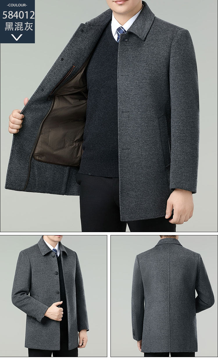 Hengyuanxiang Autumn and Winter Double-Sided Wool Men's Woolen Trench Coat for Middle-Aged Men, Woolen Coat for Middle-Aged and Elderly Men, Dad's Clothing