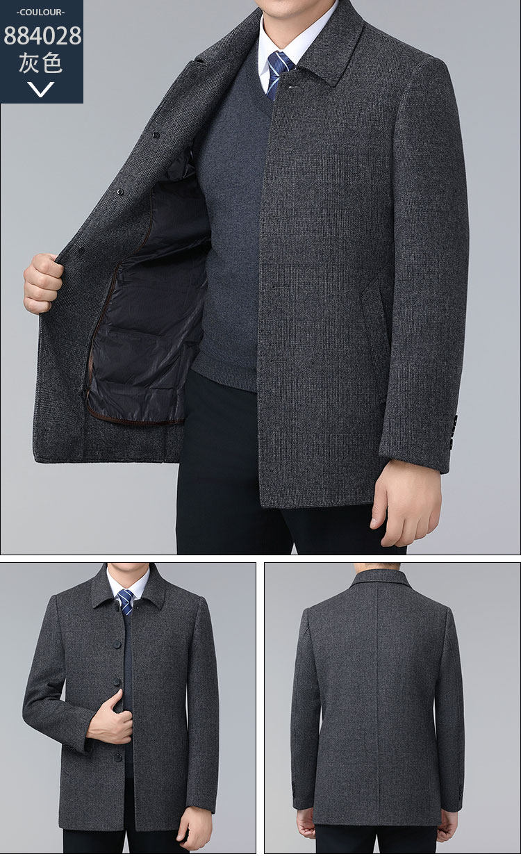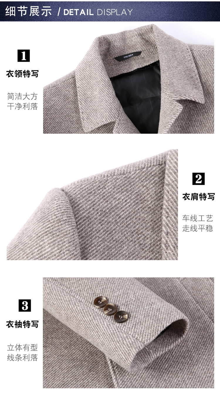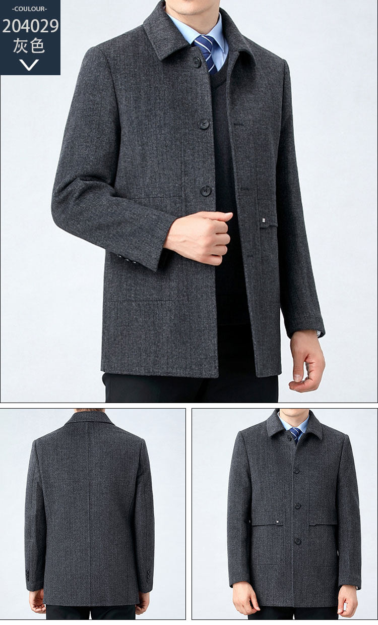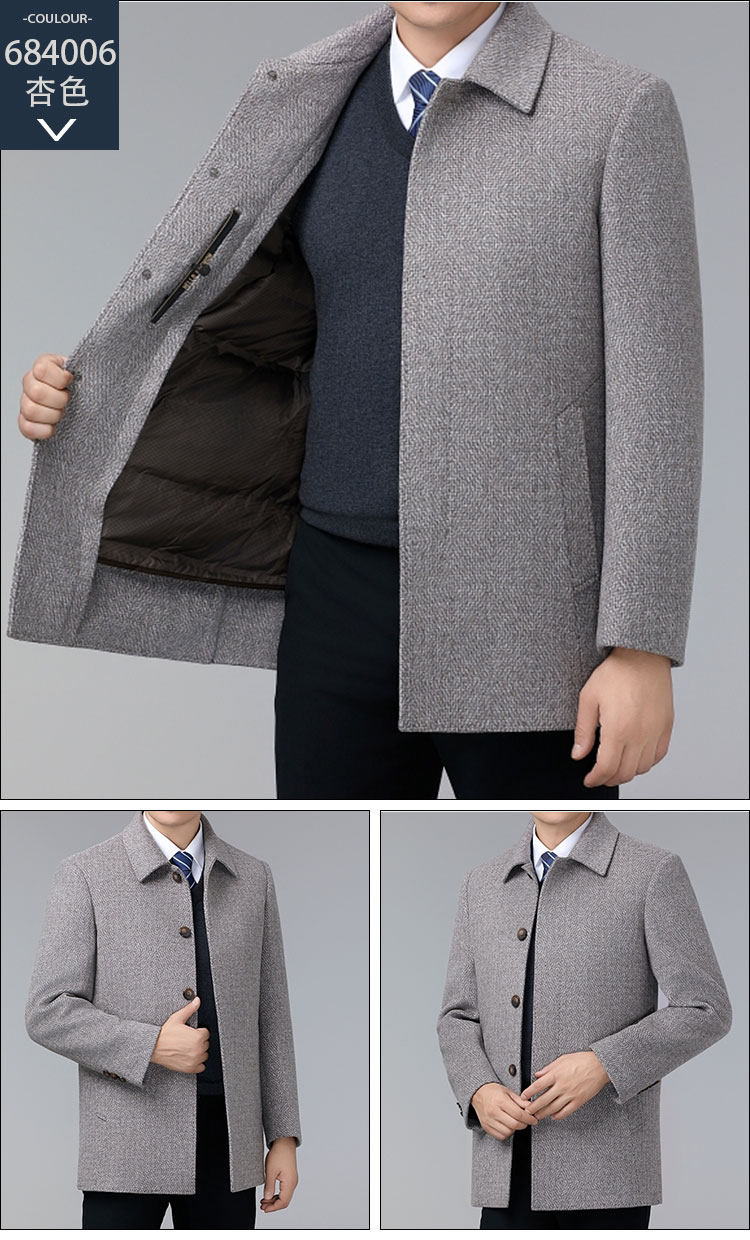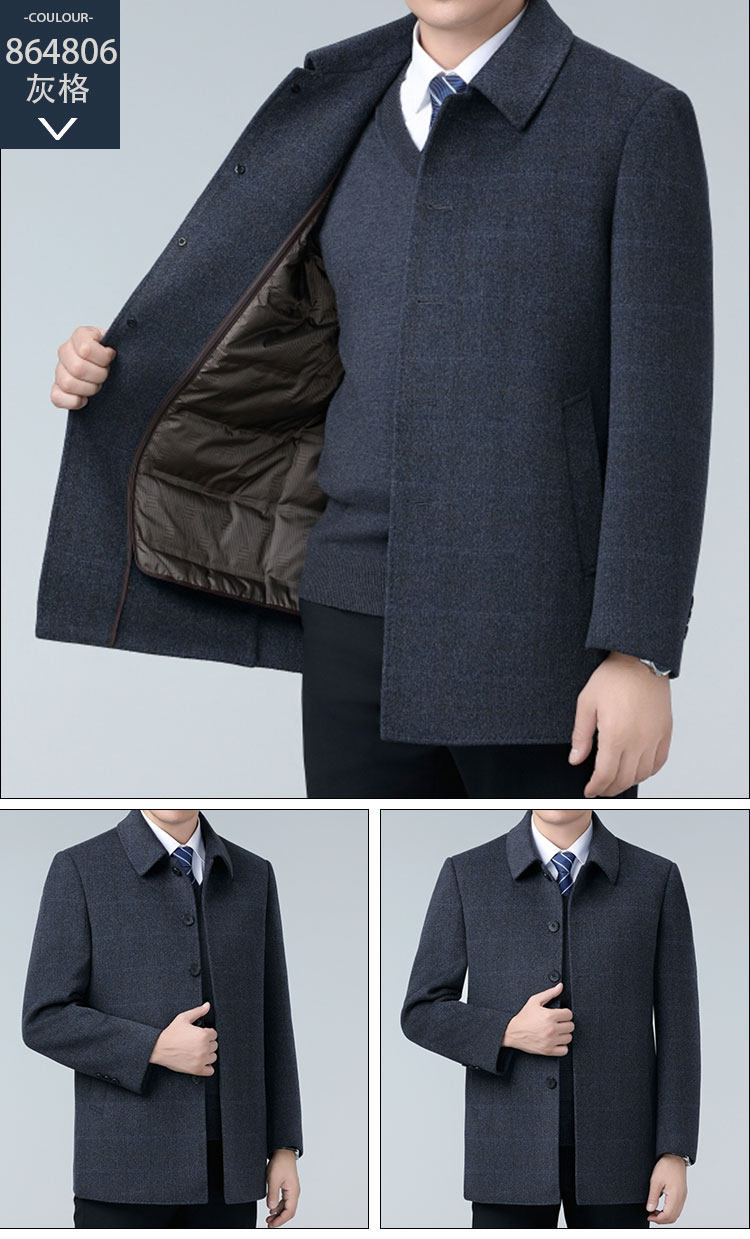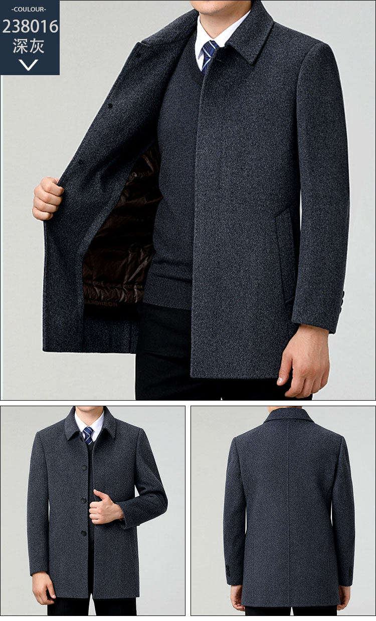 Hengyuanxiang Autumn and Winter Double-Sided Wool Men's Woolen Trench Coat for Middle-Aged Men, Woolen Coat for Middle-Aged and Elderly Men, Dad's Clothing