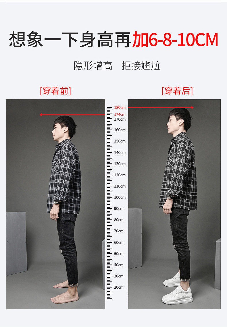 Goni 10cm Height-Increasing Men's Shoes | Spring and Summer White Sneakers with Thick Soles, Casual Sports Shoes, Men's Height-Increasing Shoes, Versatile for Men