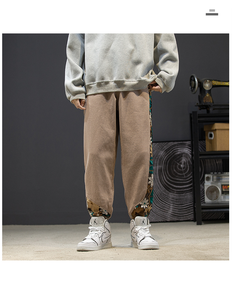 Heavy Embroidery Casual Pants for Men, Chinese Style Retro Jogger Nine-Point Length Pants, Ethnic Patchwork, National Trend Fashion for Spring and Autumn