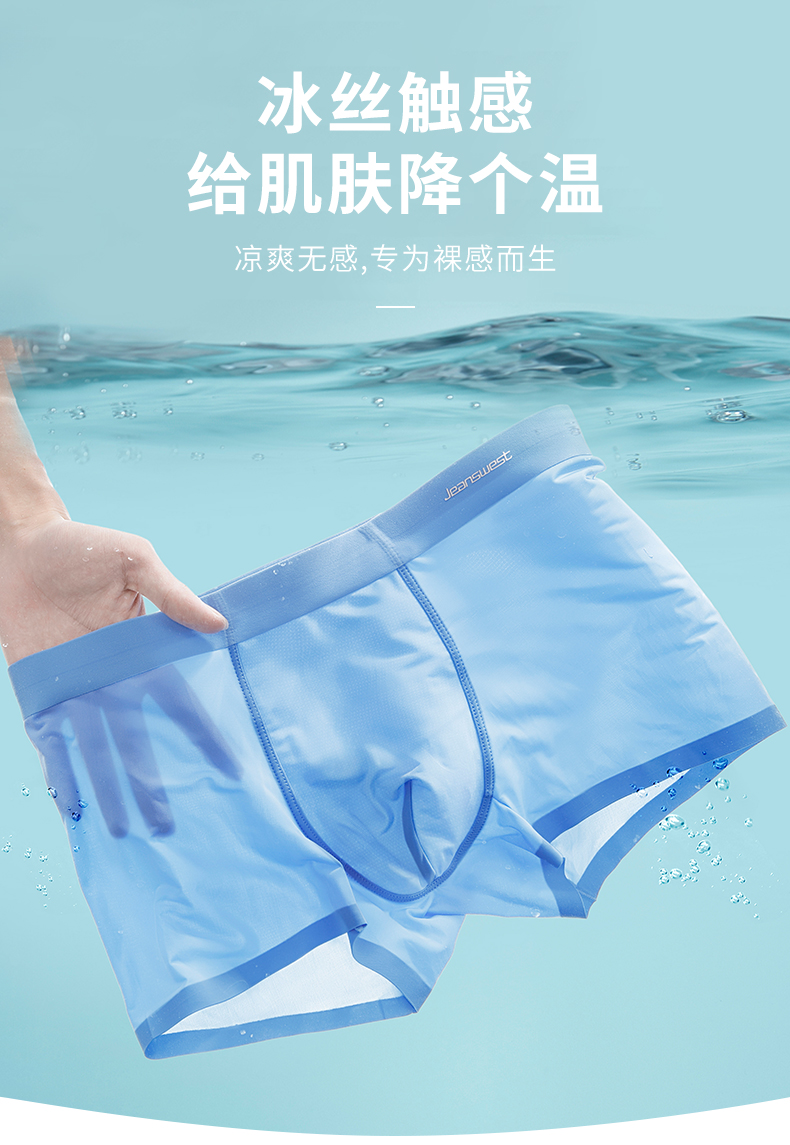 Jeanswest Men's Underwear, Boys' Ice Silk Boxer Briefs, Summer Thin Breathable Seamless Boxer Shorts for Teenagers