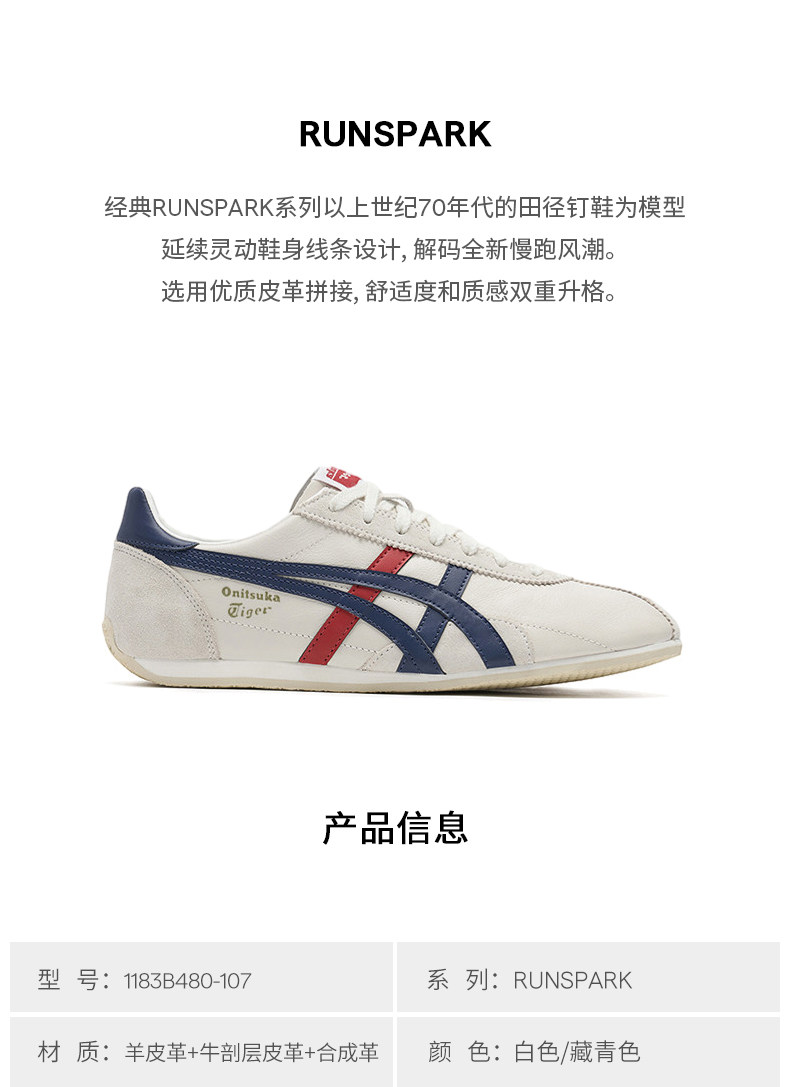 Onitsuka Tiger Runspark White Men's and Women's Shoes Classic Retro Sports Lightweight Casual Shoes