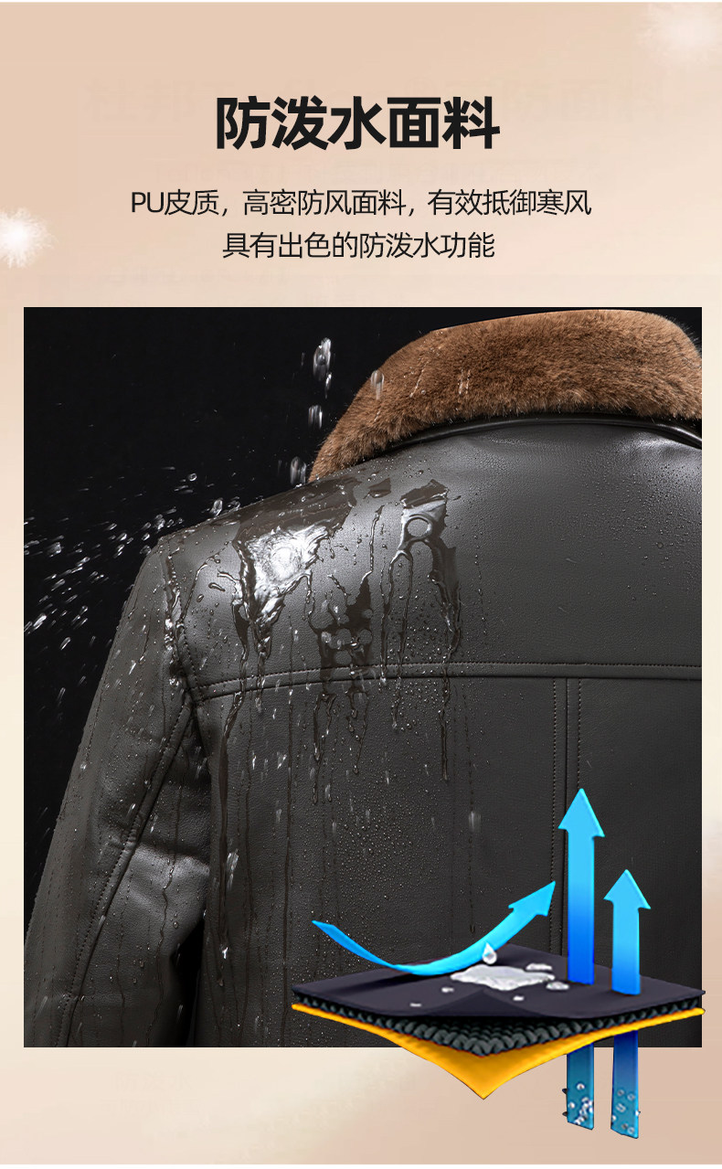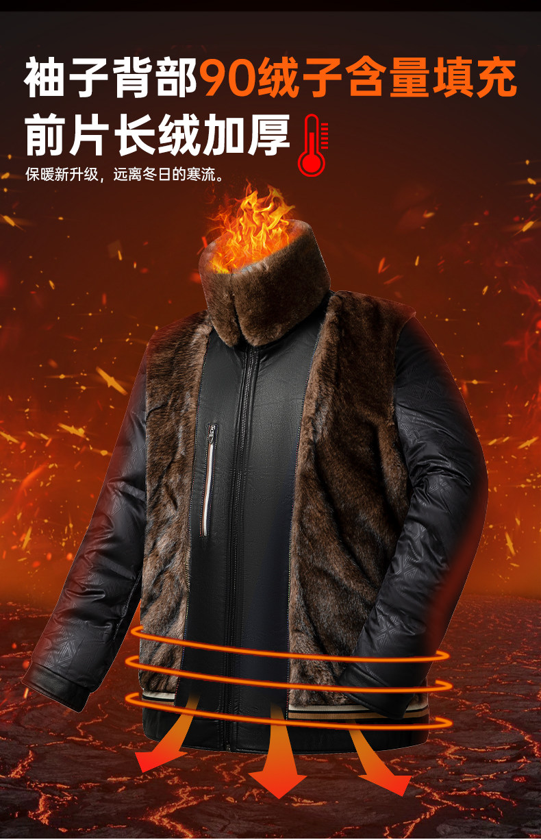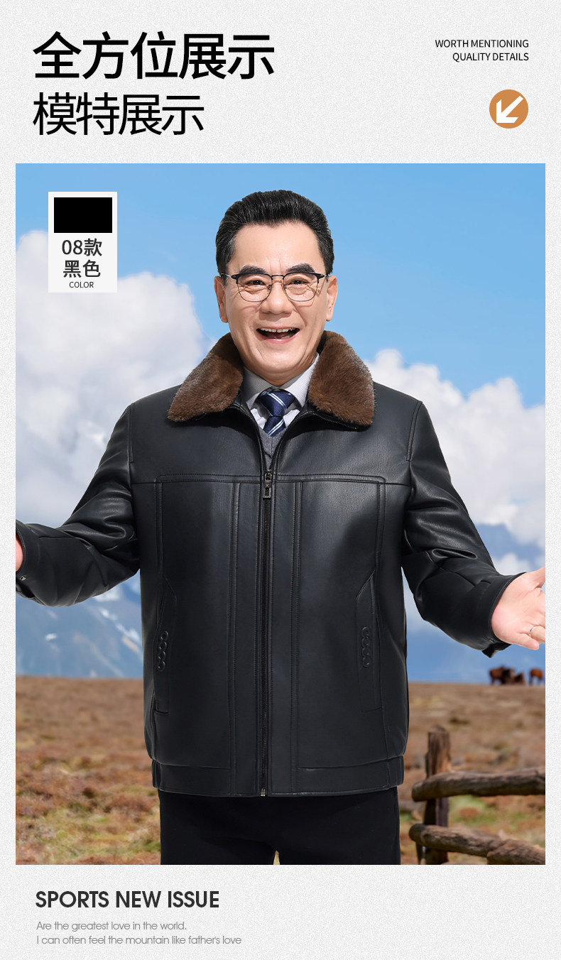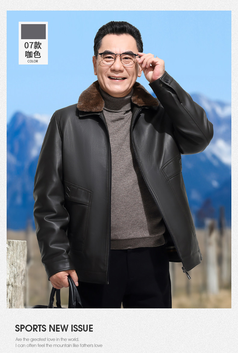 Dad's Winter Leather Jacket, Middle-Aged and Elderly Leather Jacket, Warm Fleece-Lined Thickened Leather and Fur Integrated down Jacket for Men, Middle-Aged