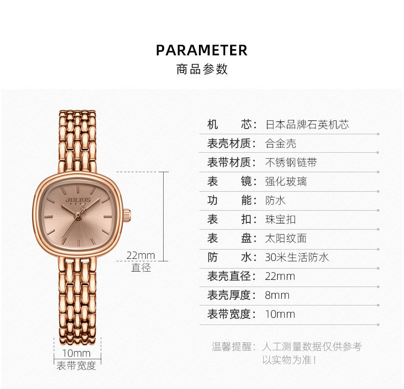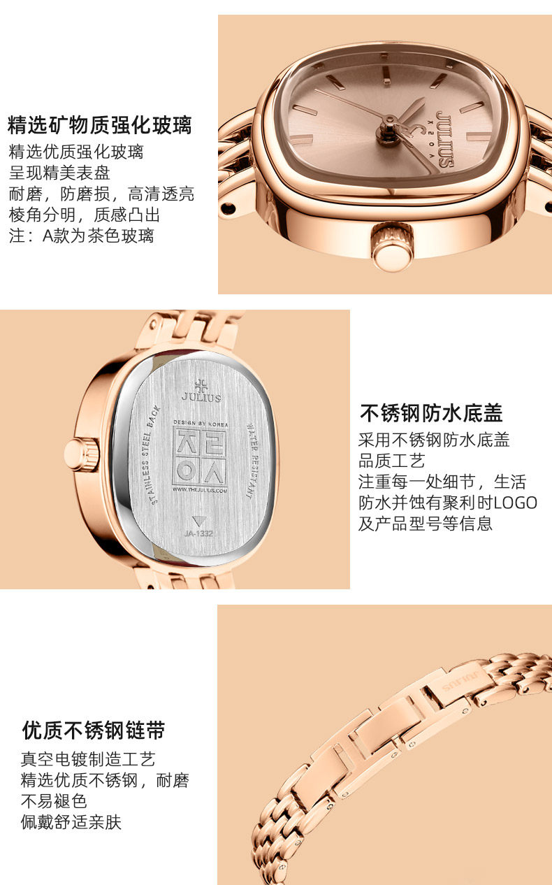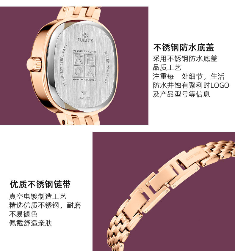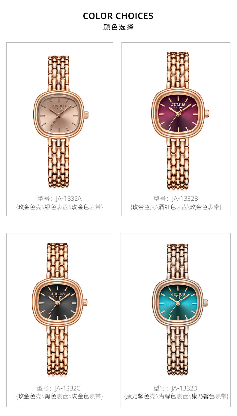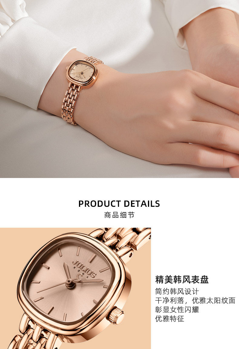 Juli Official Flagship Authentic Oval Fashion Trendy Small Square Watch Elegant Waterproof Versatile Women's Watch 1332