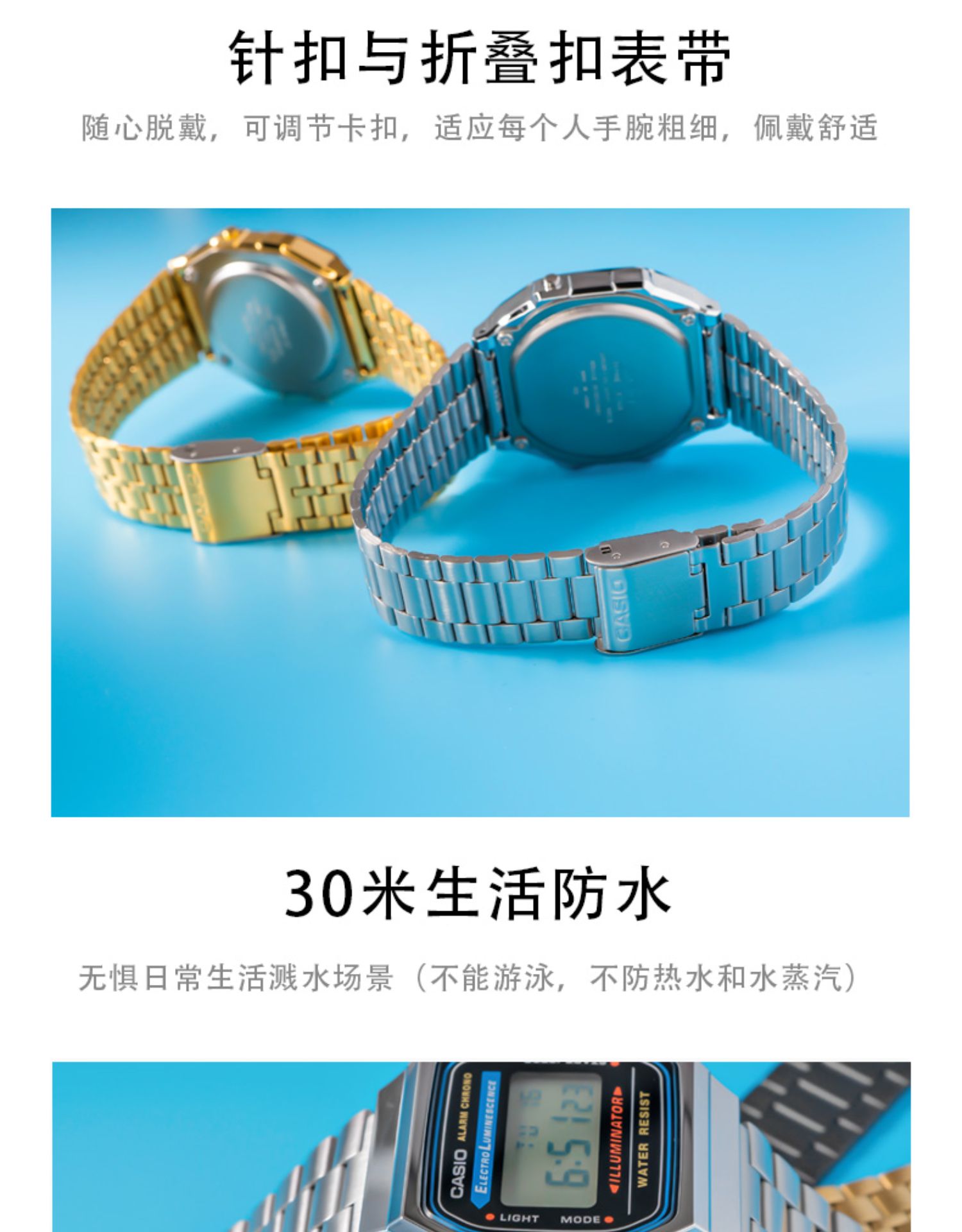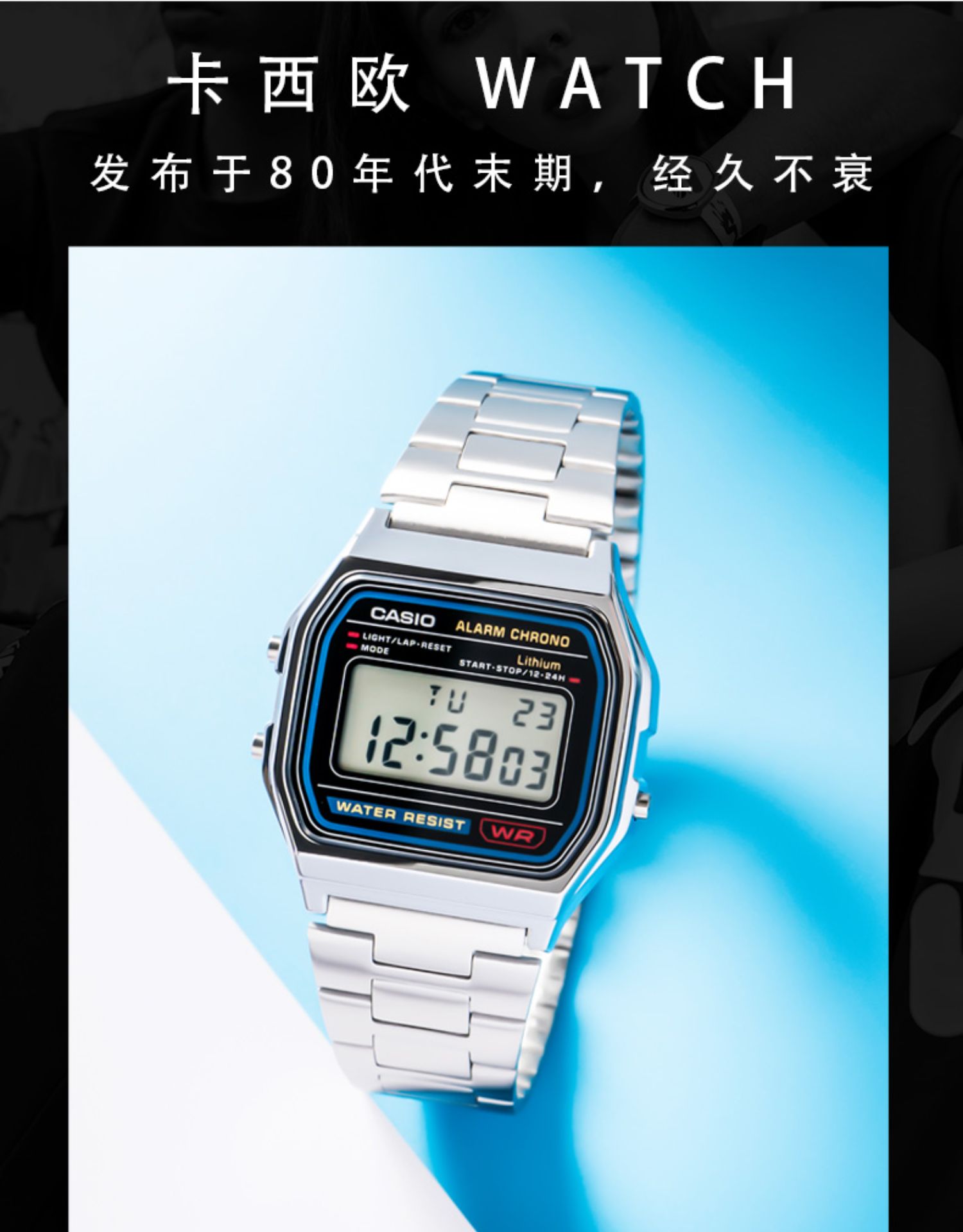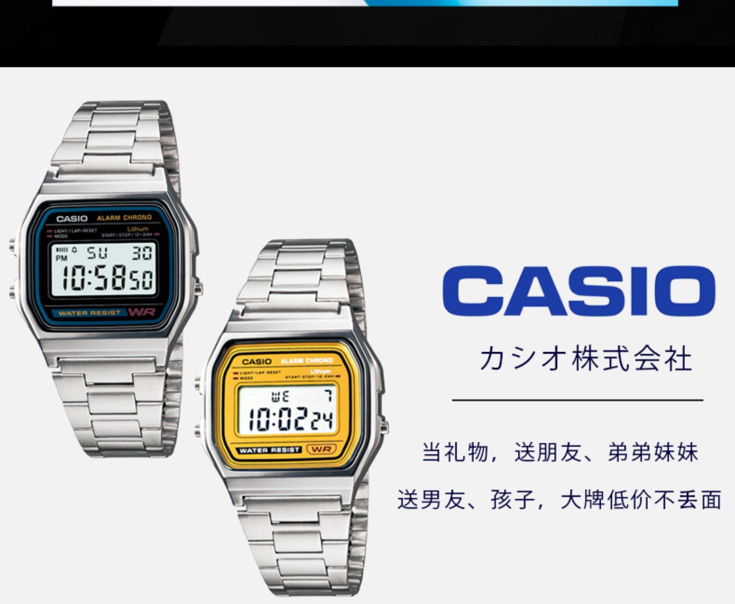 Casio Digital Watch Japanese Casio Waterproof Retro Small Square Silver Watch Fashion A158Wea-9Jf