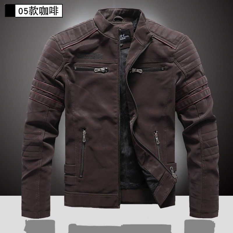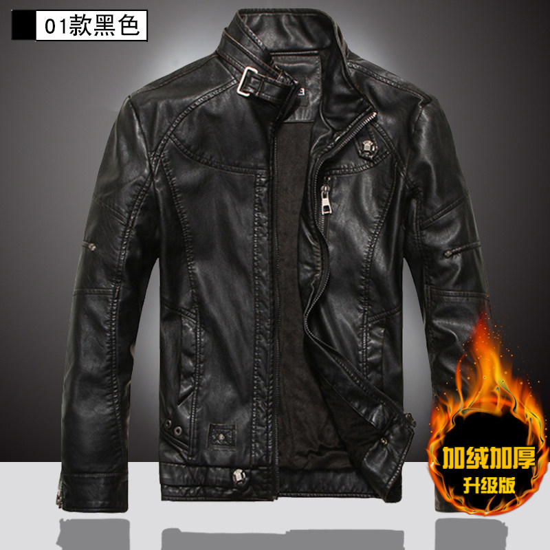 Haining Motorcycle Leather Jacket for Men, Winter Leather and Fur Integrated Coat, Men's Leather Jacket with Fleece Lining, Thickened Riding Jacket, Winter Clothing