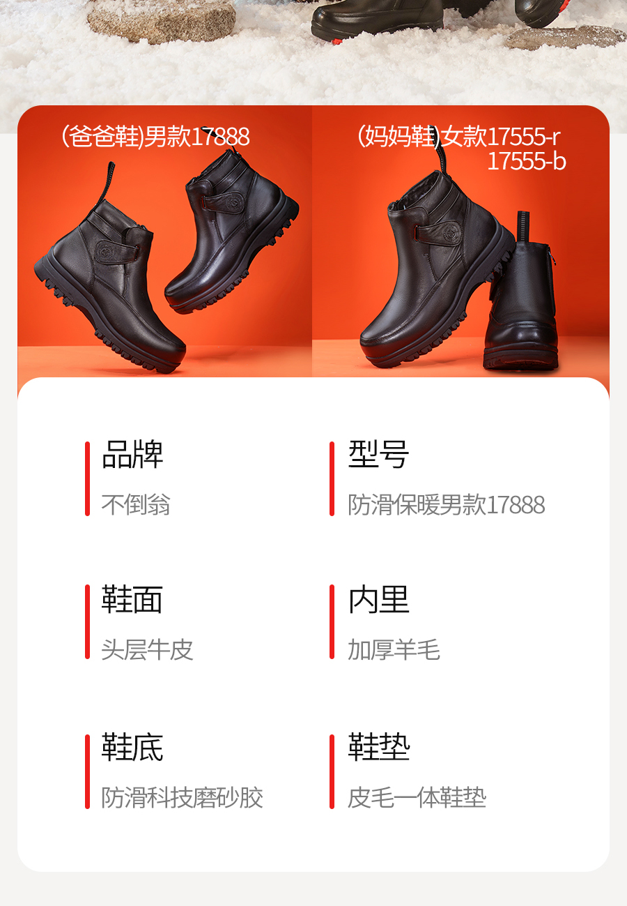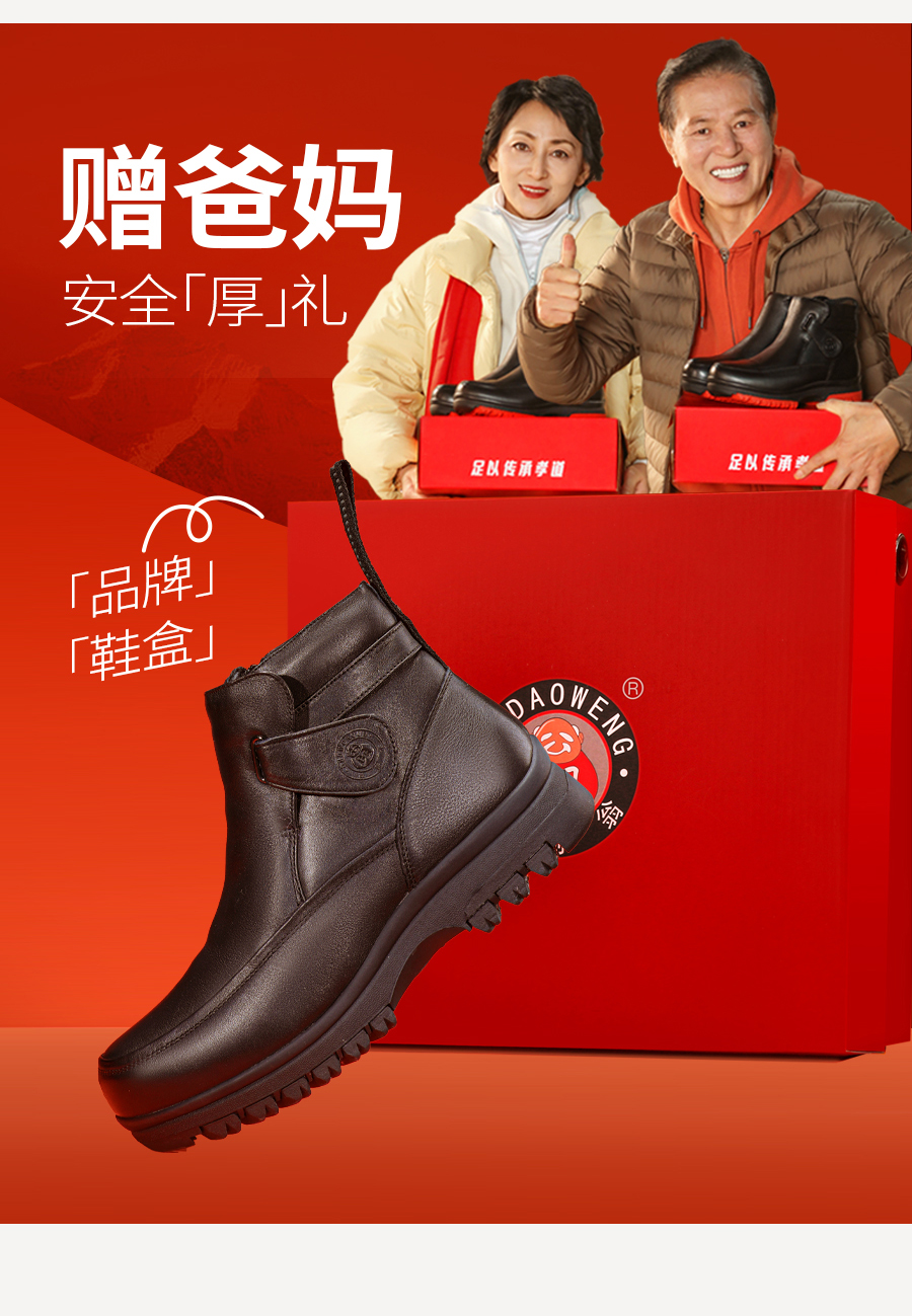Non-Slip Shoes for the Elderly, Winter Cotton Shoes, Genuine Leather Dad Shoes, Middle-Aged and Elderly Men's Shoes, Snow Boots, Warm Shoes for Men