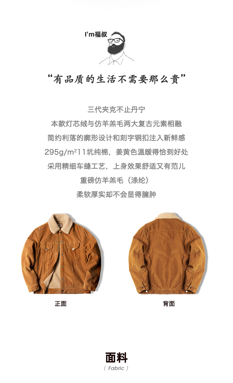 Madden Workwear American Retro Corduroy Jacket Cotton Coat Barn Style Faux Shearling Jacket Thickened Cotton Coat Men's Winter