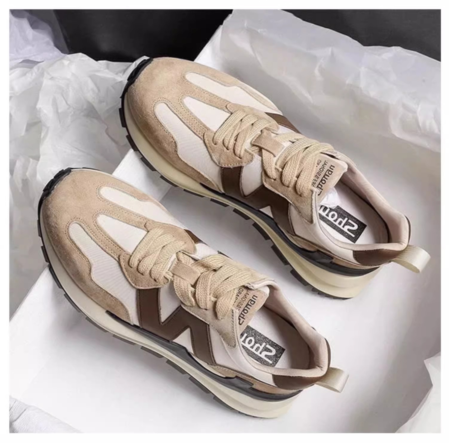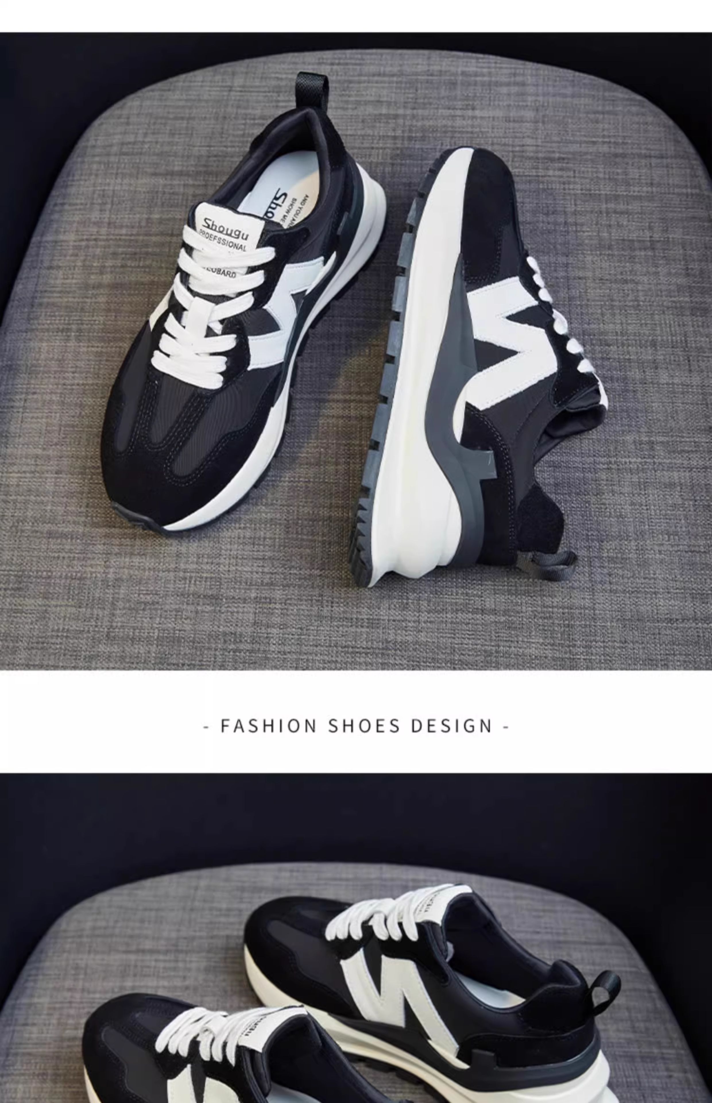 Hong Kong Genuine Leather Dad Shoes for Women 2025 Spring and Autumn Internet Celebrity Super Popular Black Forrest Gump Shoes Sports Casual Retro Running Shoes
