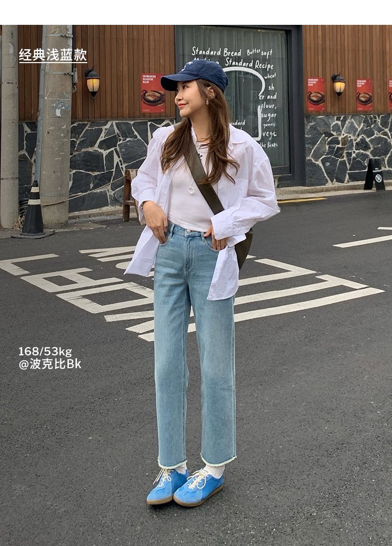 【Baguette Pants Collection】Simplepieces Spring New Sps Jeans for Women Petite Cropped Straight Pants