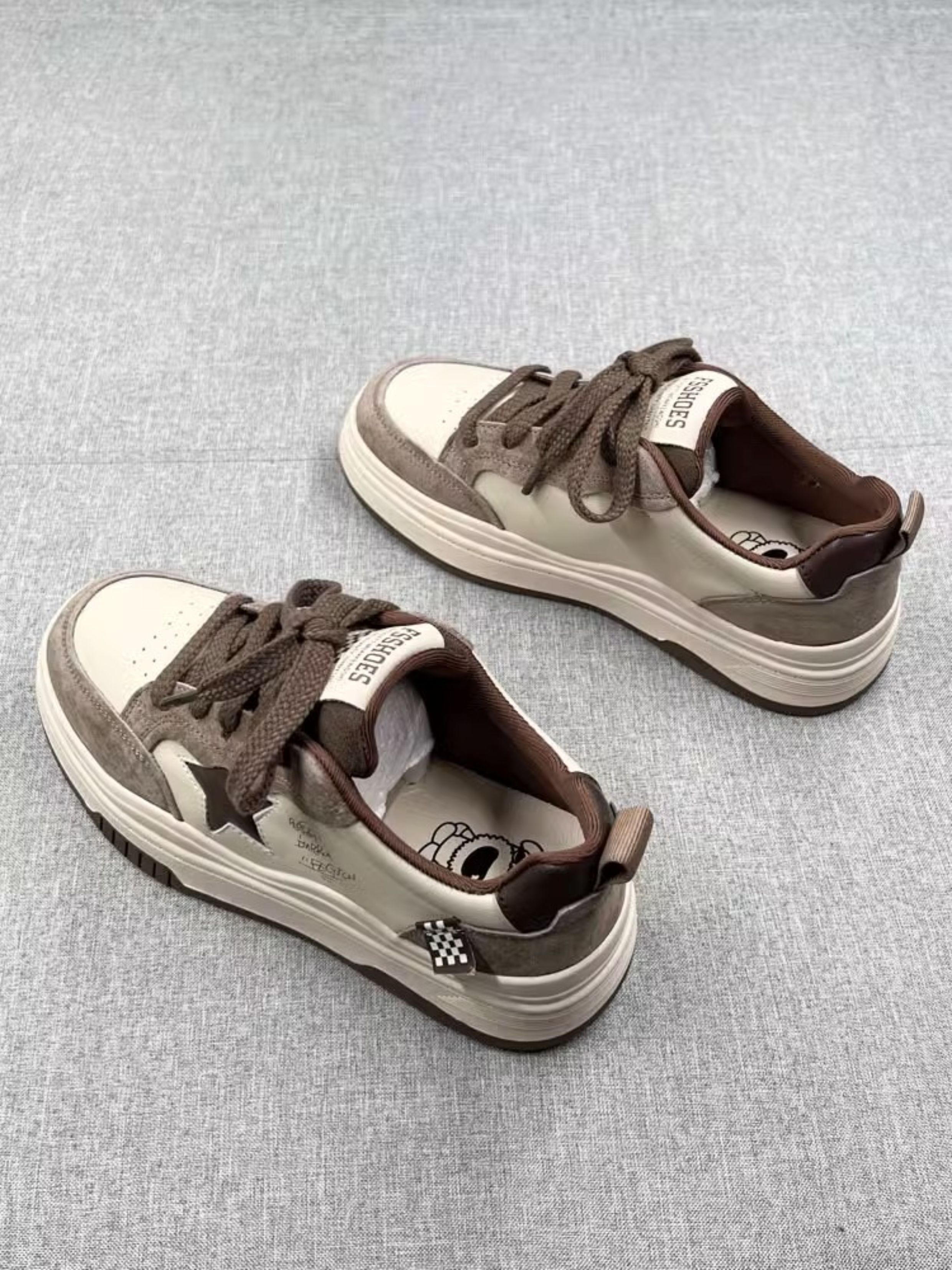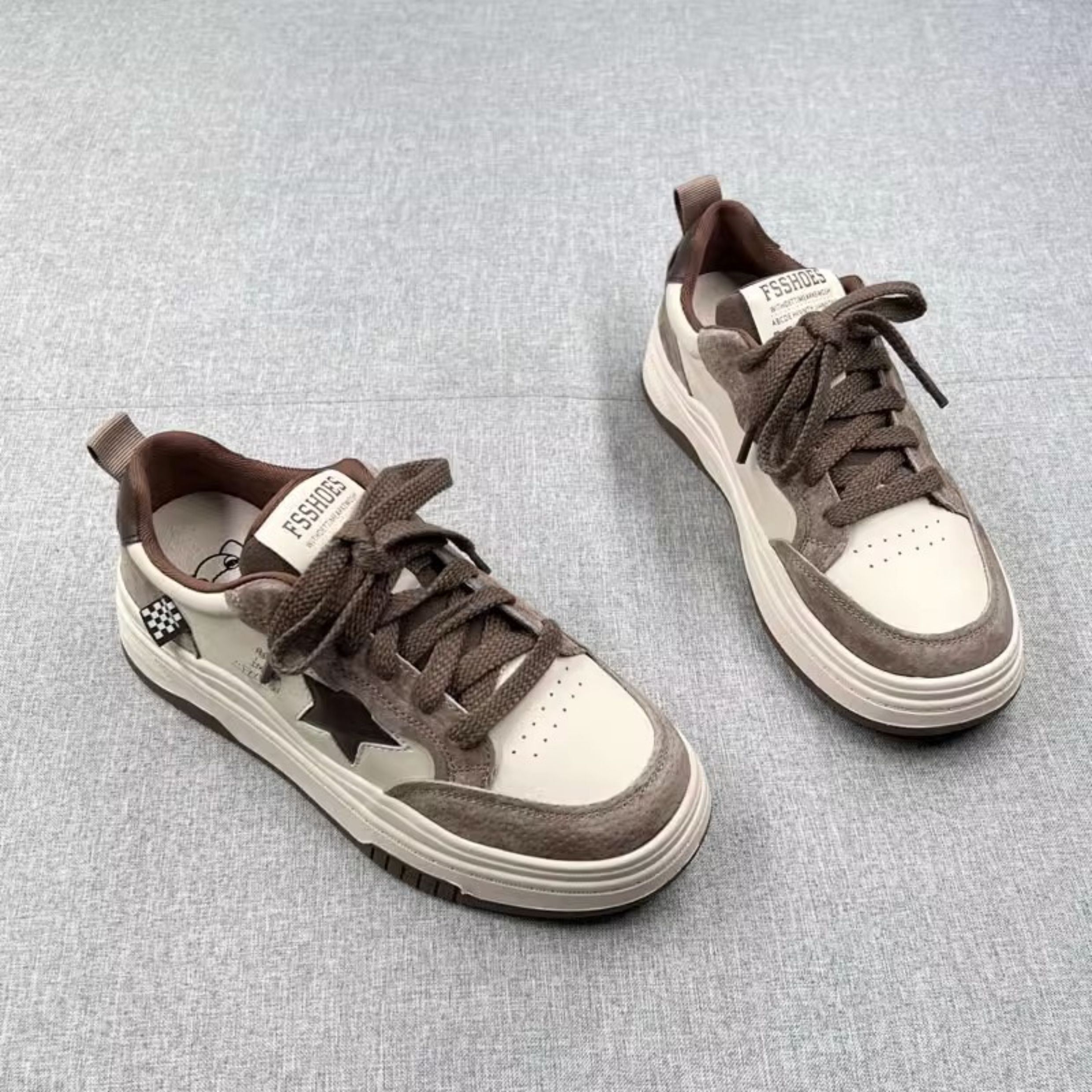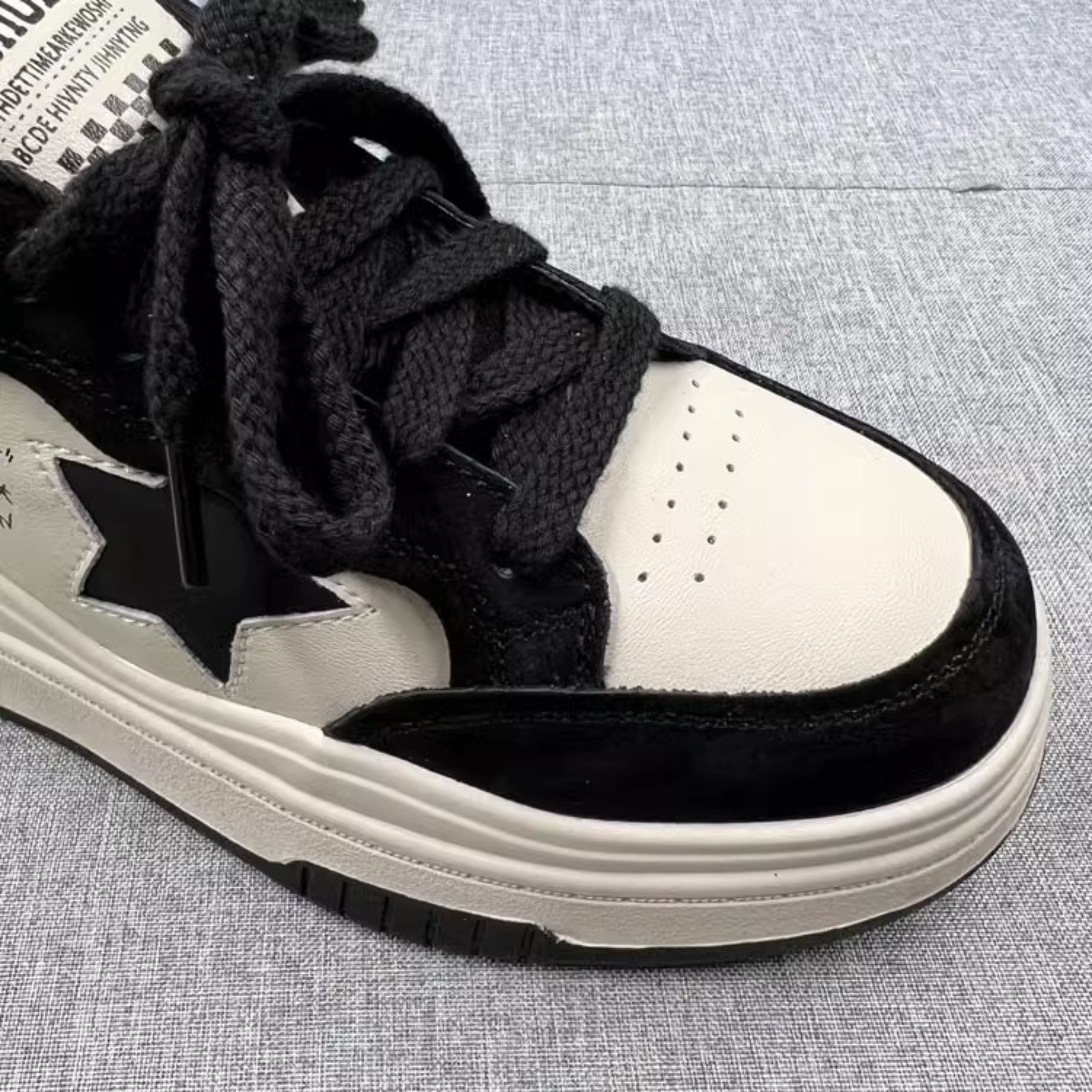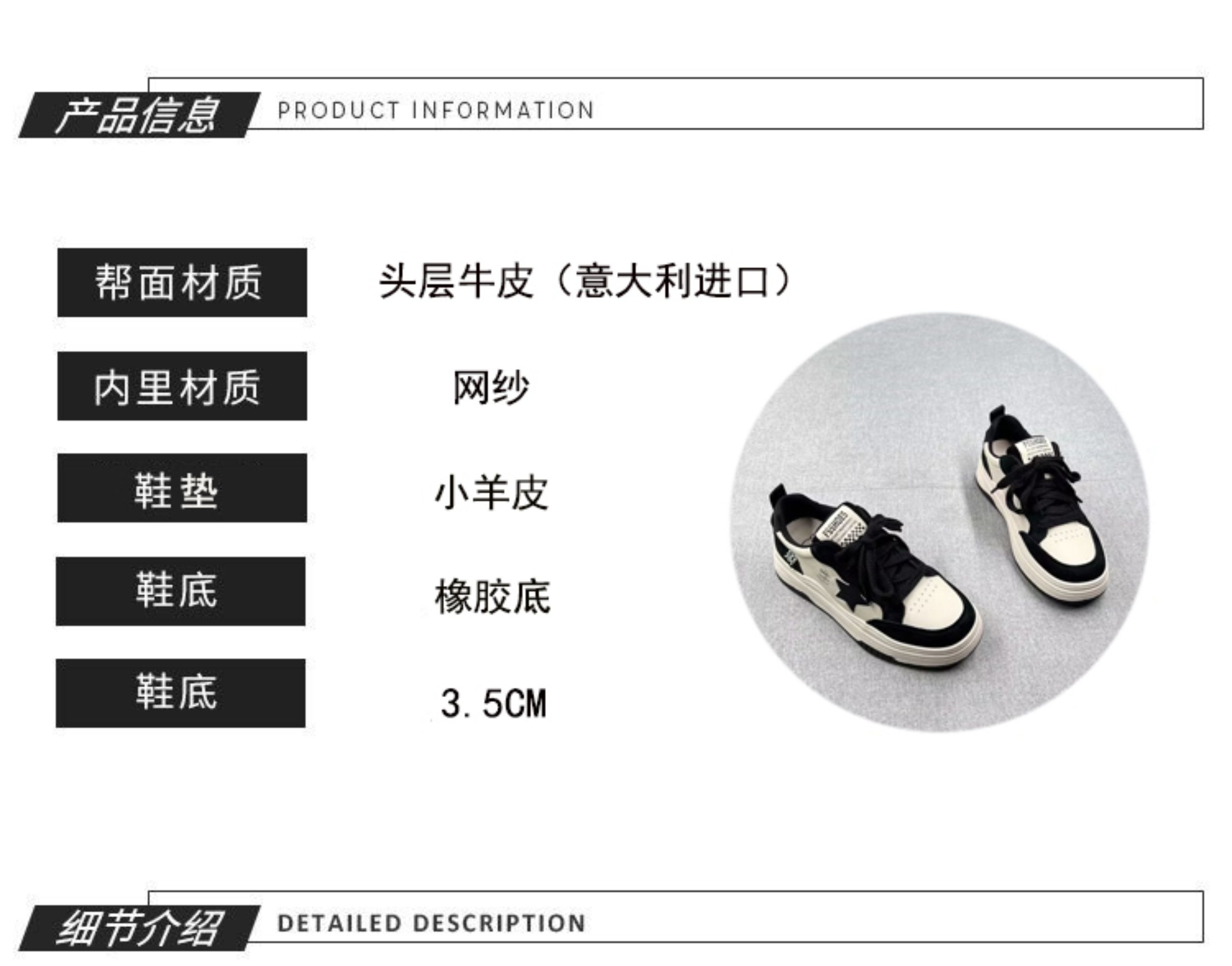 Hong Kong Niche Design Genuine Leather Star Sneakers for Women 2025 Spring and Autumn New Korean Style Thick-Soled Sports Casual Shoes