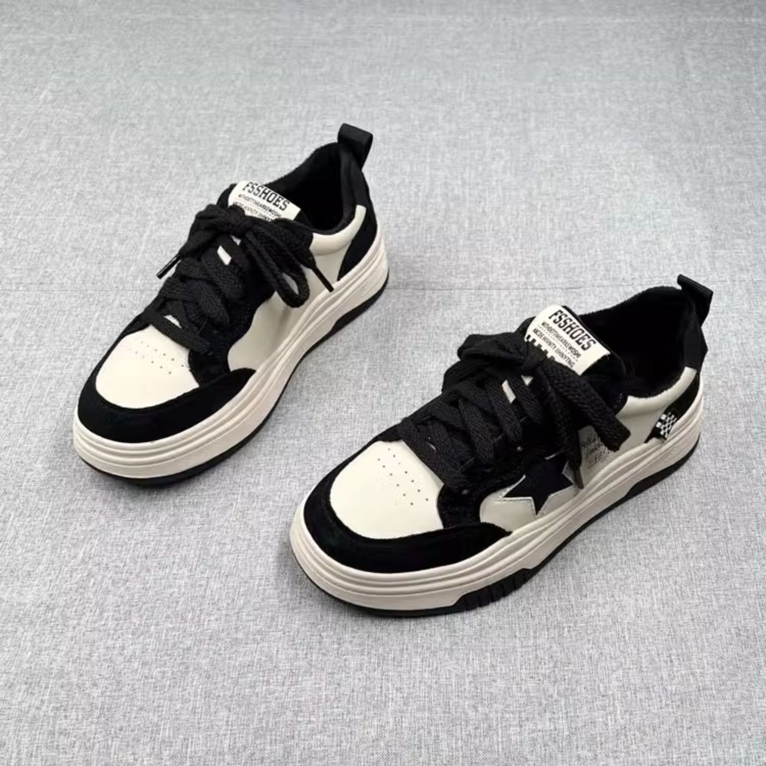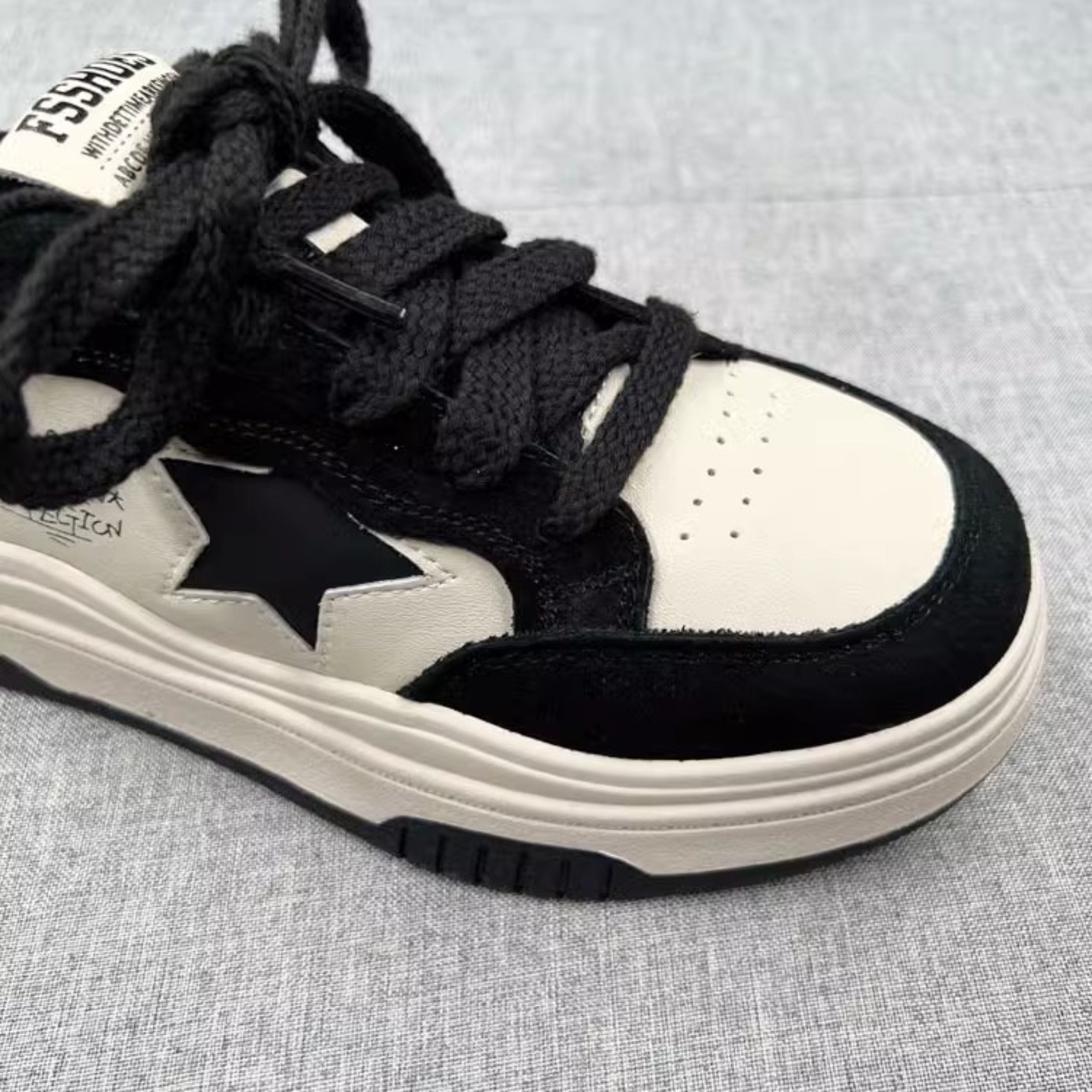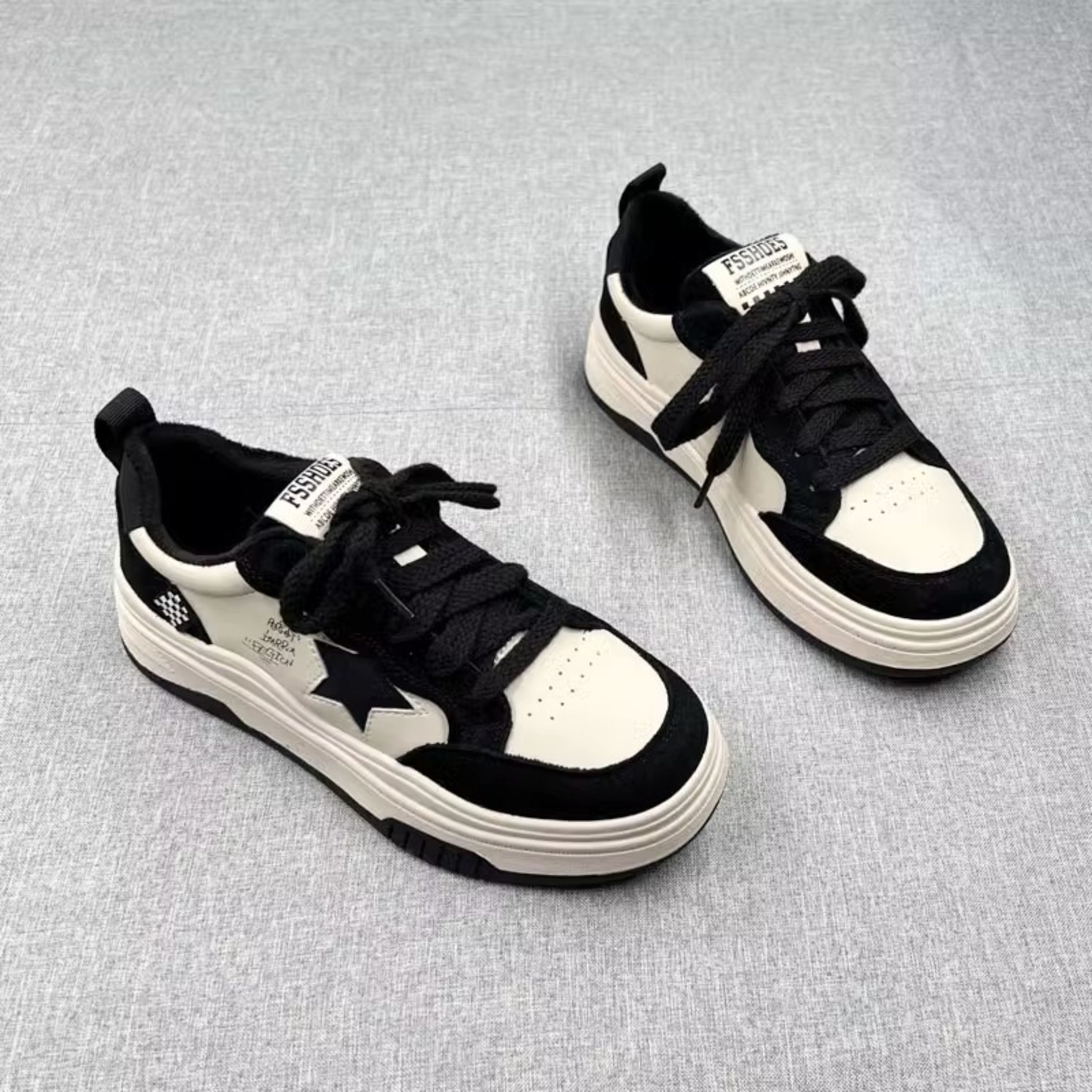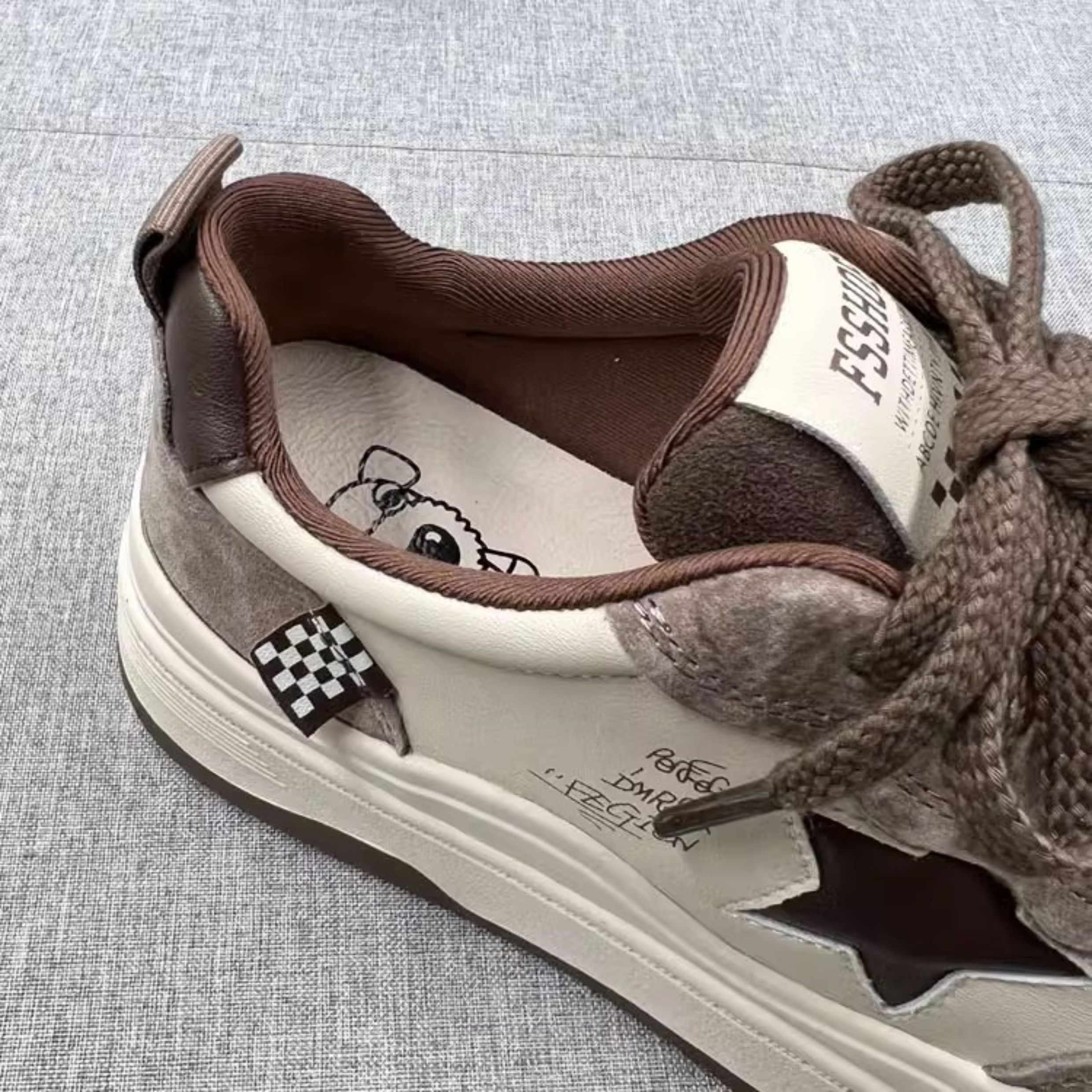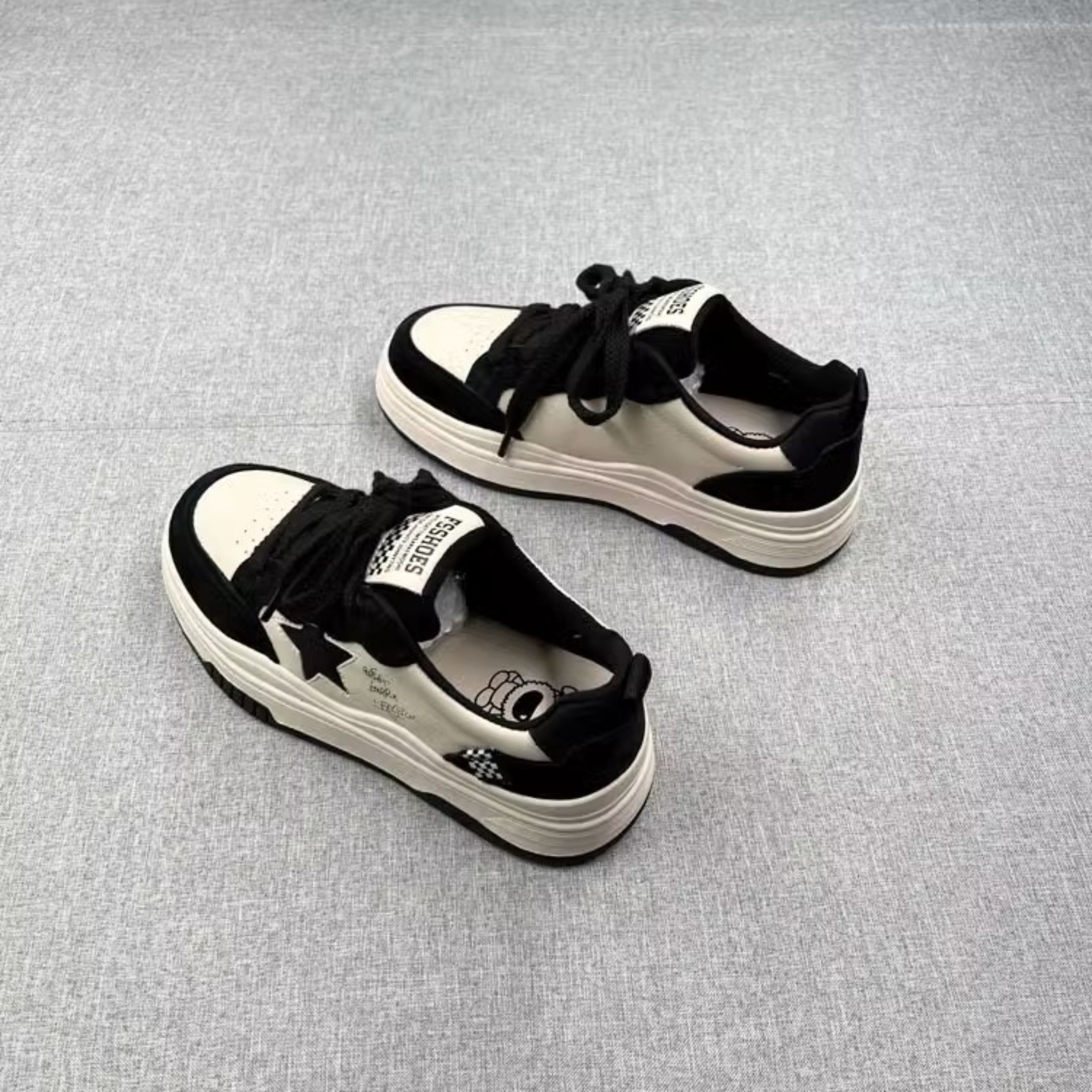 Hong Kong Niche Design Genuine Leather Star Sneakers for Women 2025 Spring and Autumn New Korean Style Thick-Soled Sports Casual Shoes