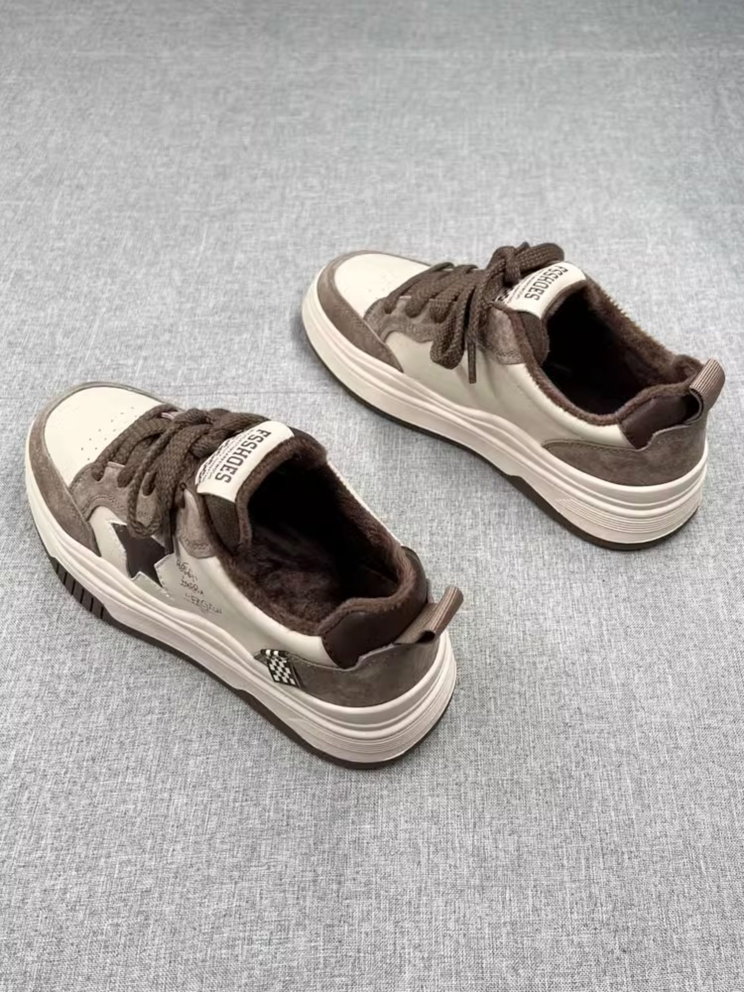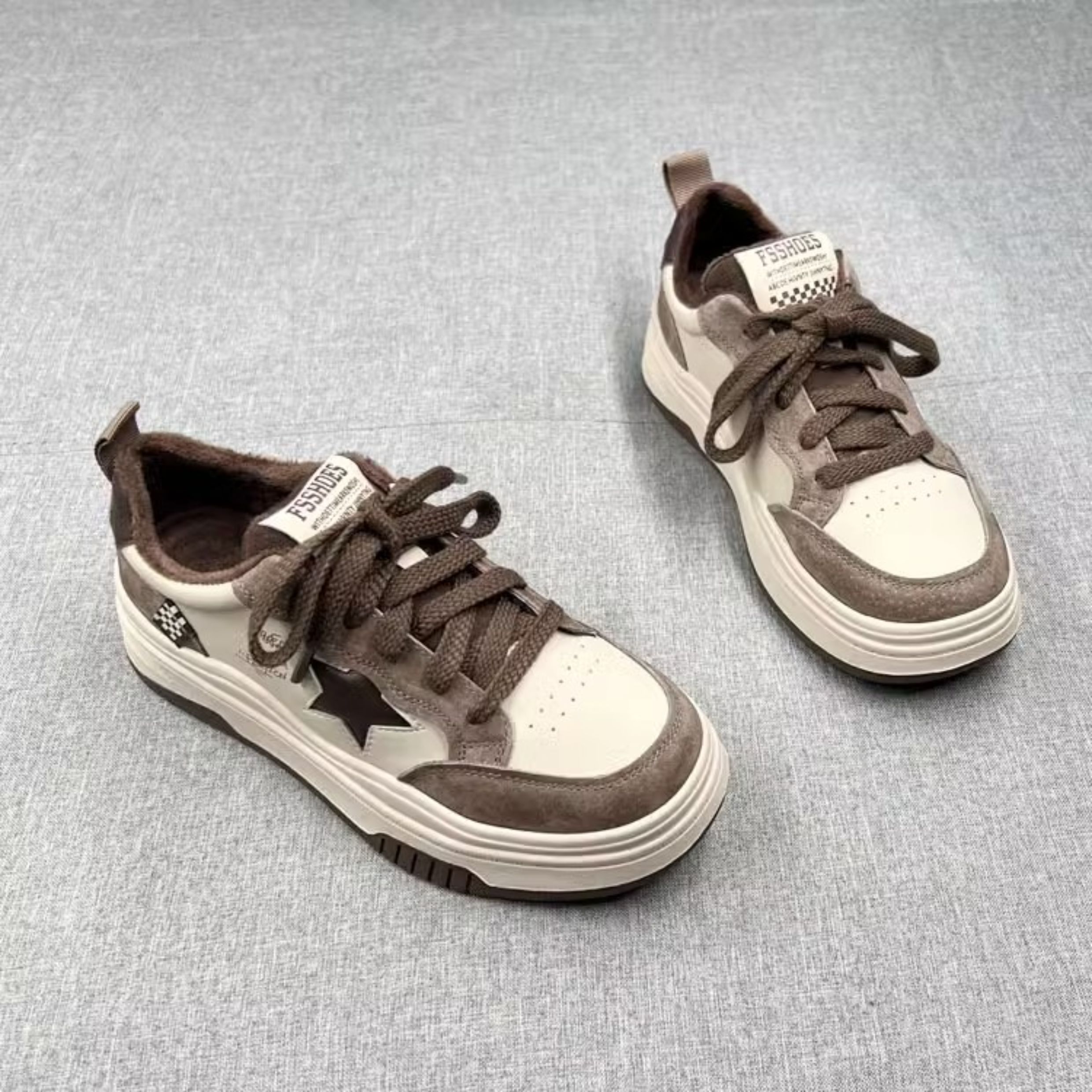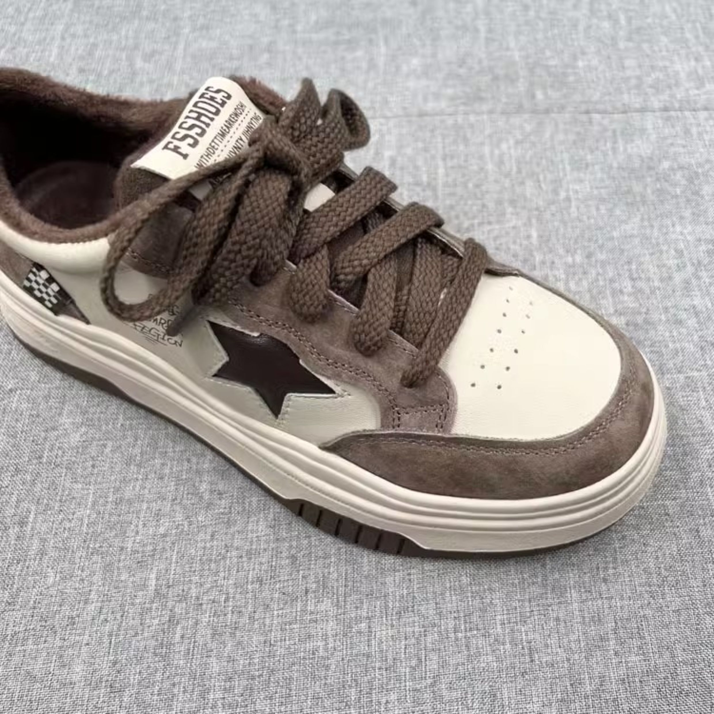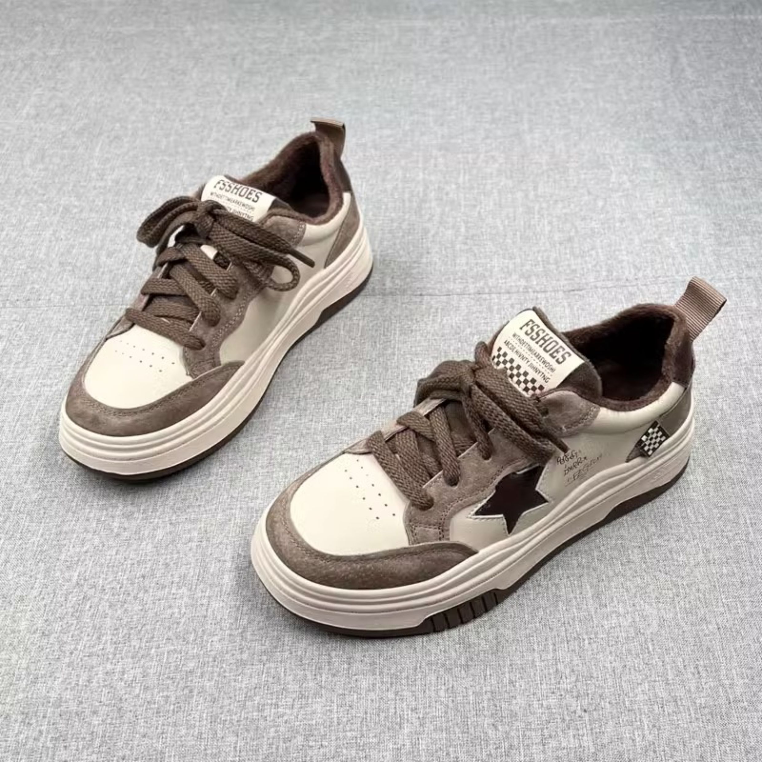 Hong Kong Niche Design Genuine Leather Star Sneakers for Women 2025 Spring and Autumn New Korean Style Thick-Soled Sports Casual Shoes