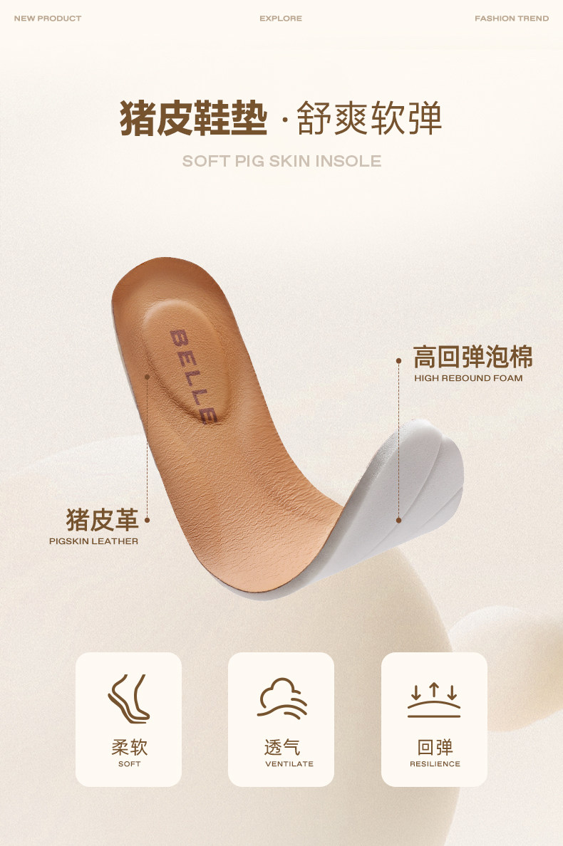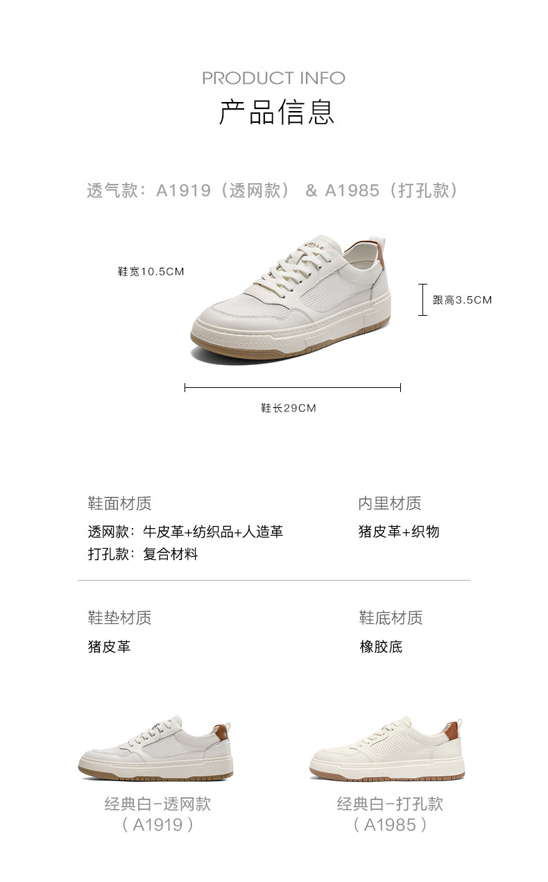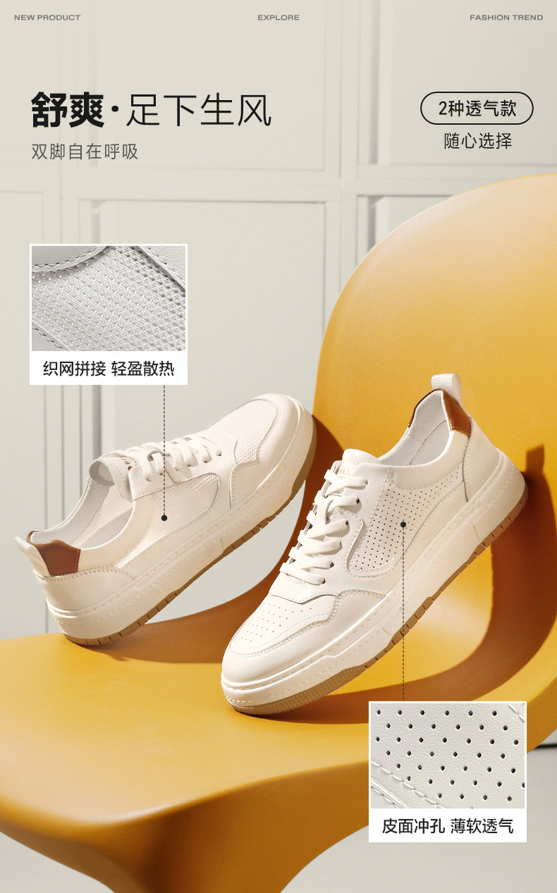 [Recommended by Zhang Linghe] Belle Zufeng Spring/Summer New Height-Increasing Casual White Sneakers with Mesh Breathability A0658A