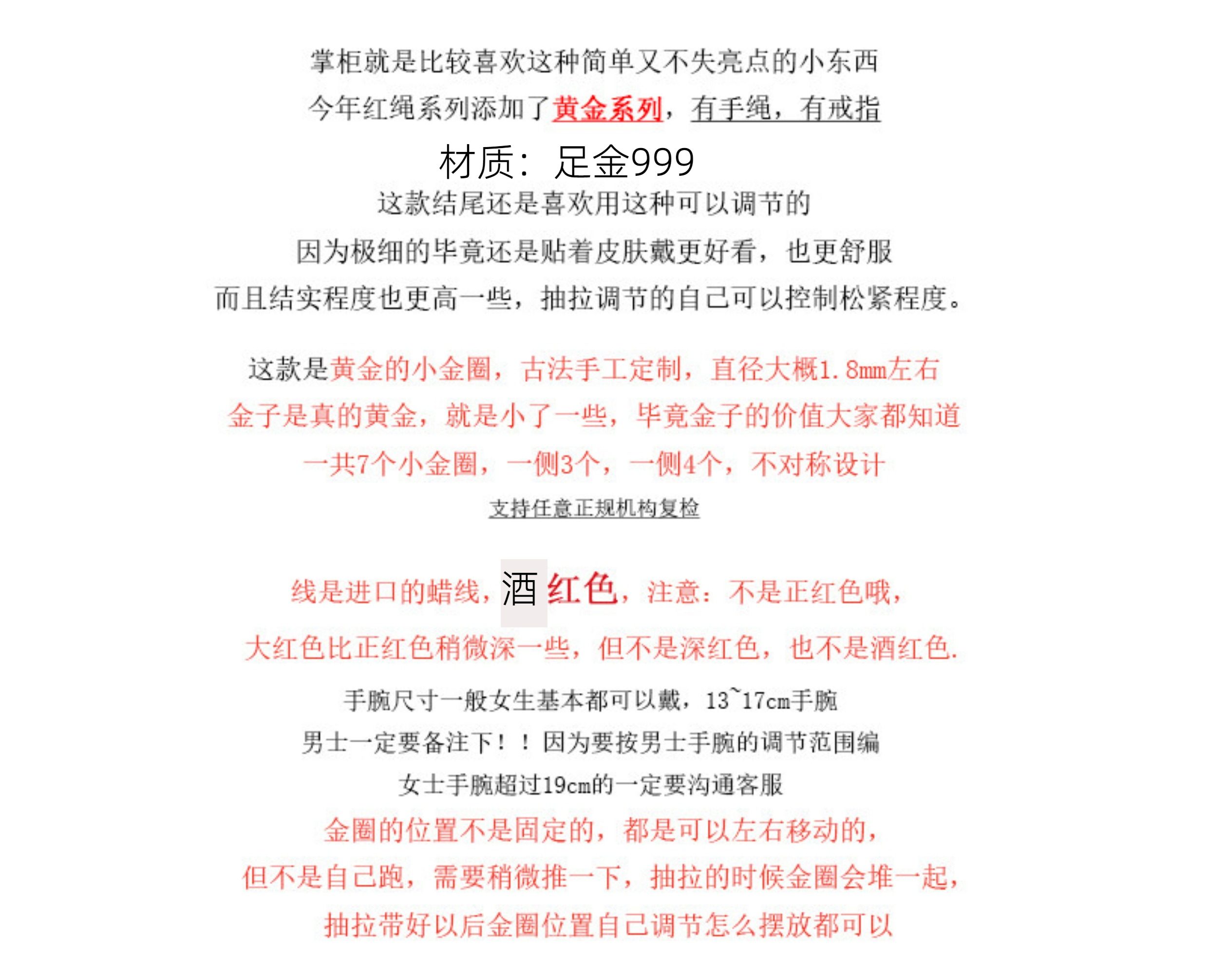Pure Gold 999 Red String Bracelet for the Year of Birth, Double-Layered Gold Ring, Extremely Thin, Adjustable, Lucky Couple Red String Bracelet/Anklet