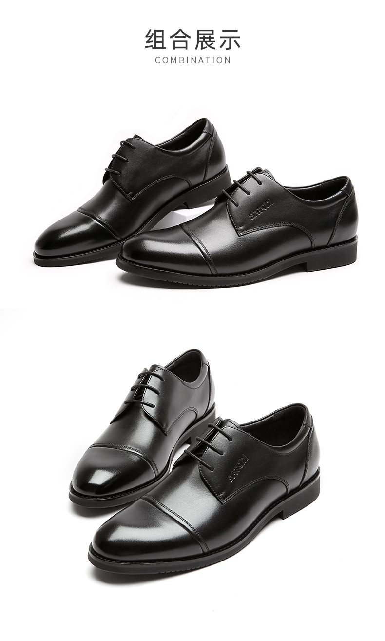 Sachi Men's Shoes Three-Joint Leather Shoes Men's Business Formal Derby Genuine Leather Breathable British Style Youth Wedding Groom's Shoes