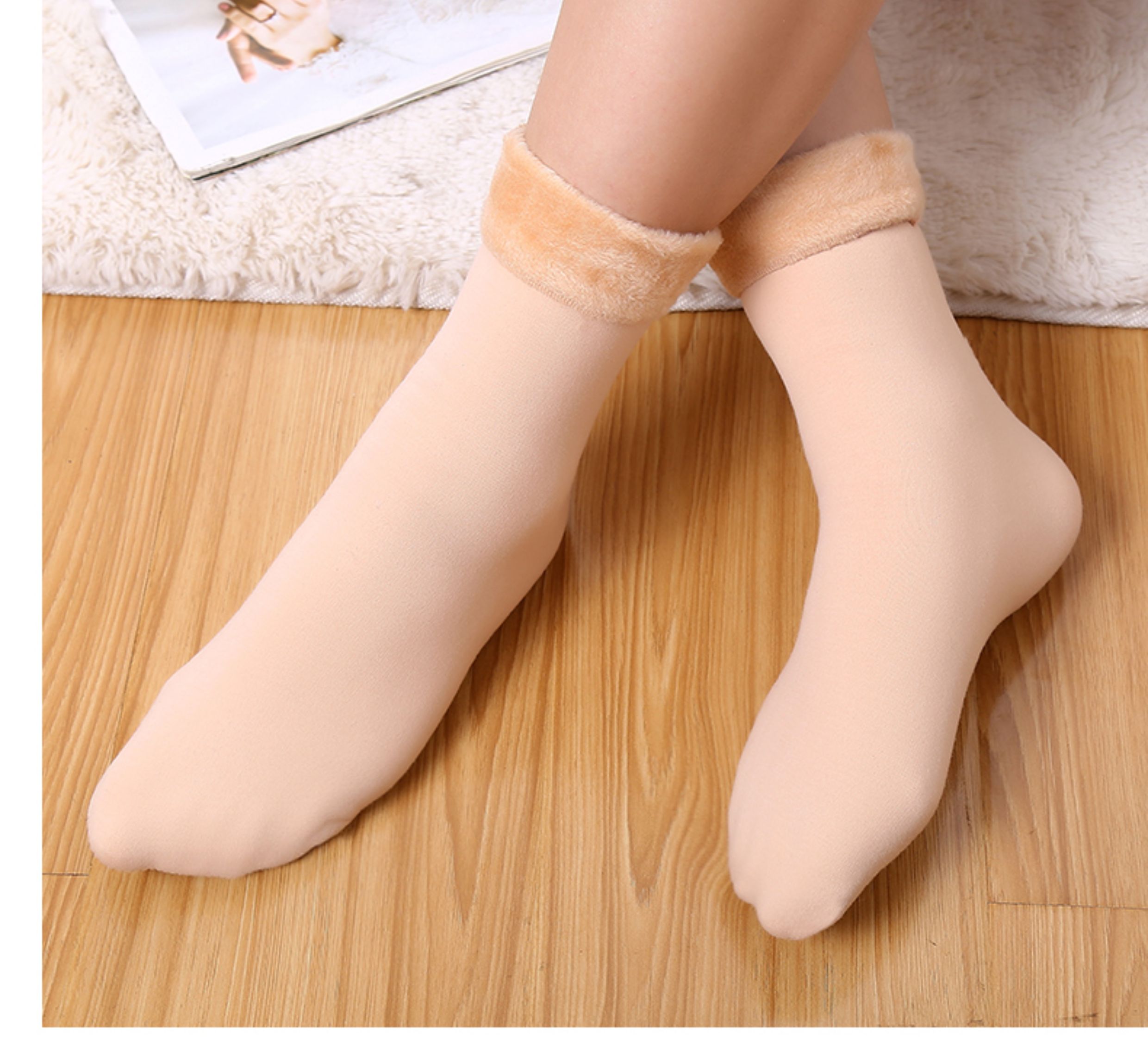 [5 pairs] Snow socks winter Fleece-lined thickened Heattech cold socks for men and women floor socks month socks