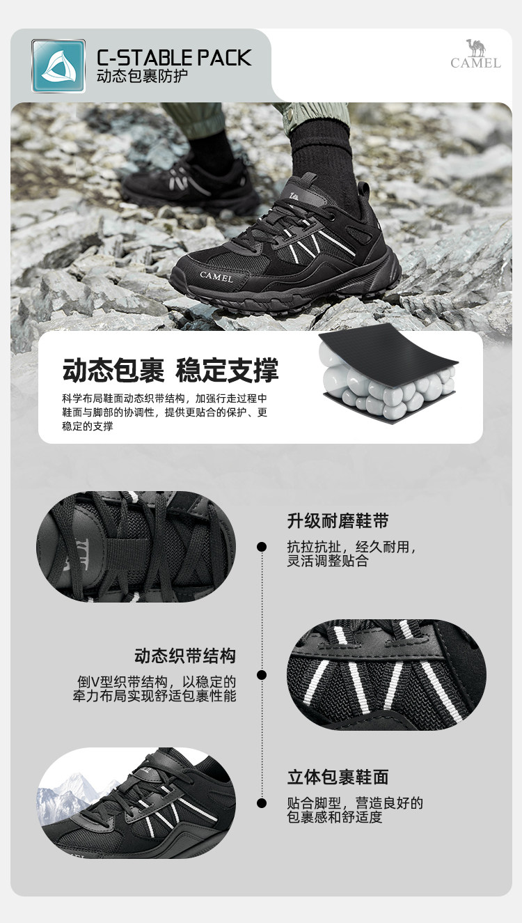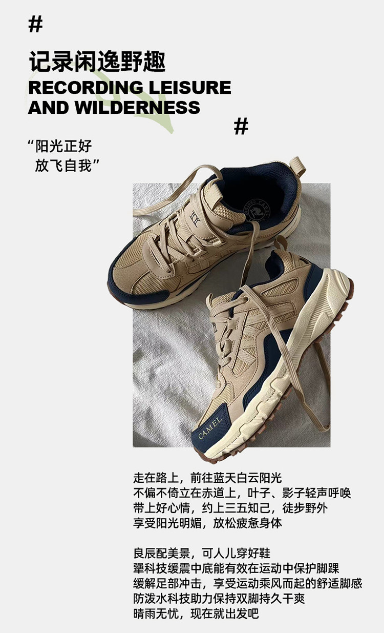 Camel Men's Shoes Autumn and Winter New Outdoor Sports Shoes Men's Versatile Breathable Women's Hiking Casual Shoes Mountaineering Travel Shoes