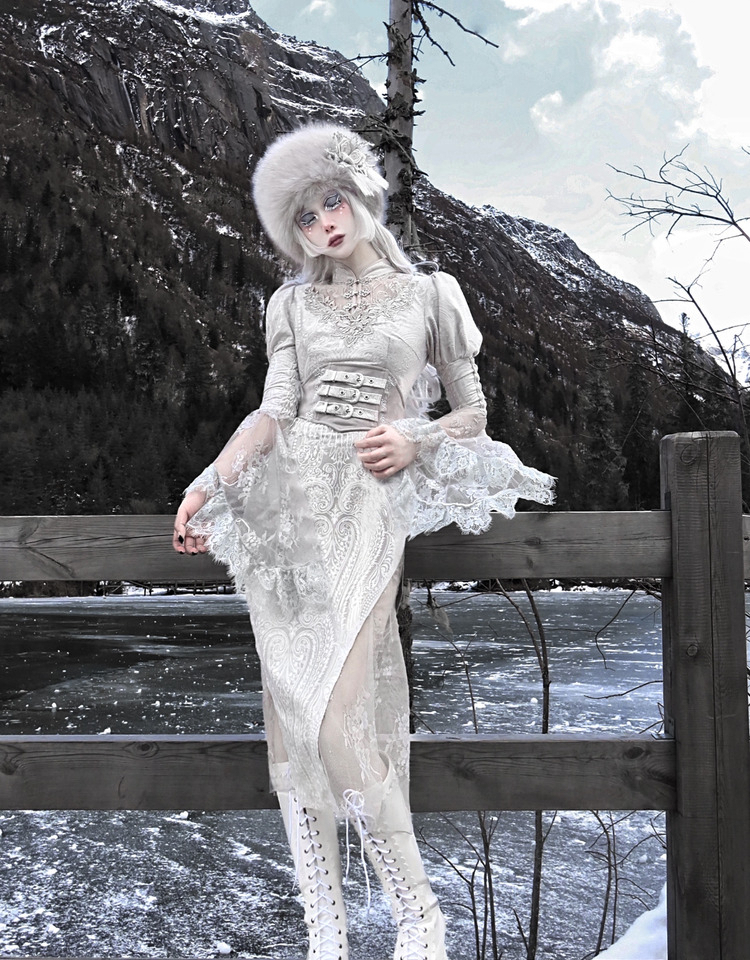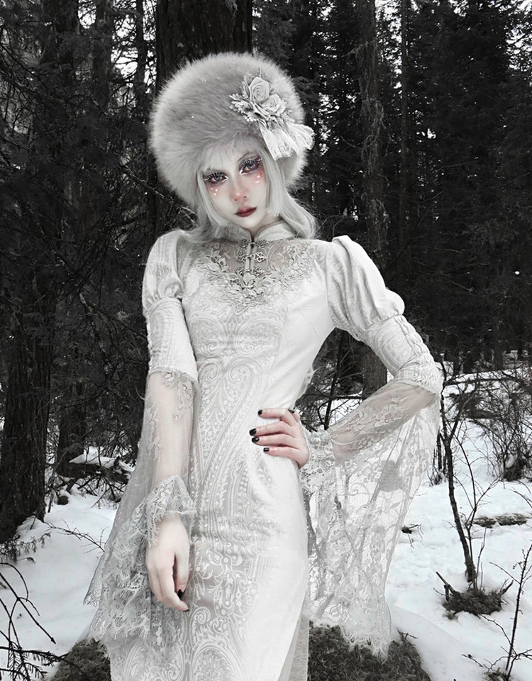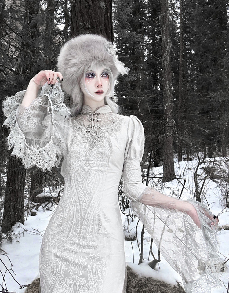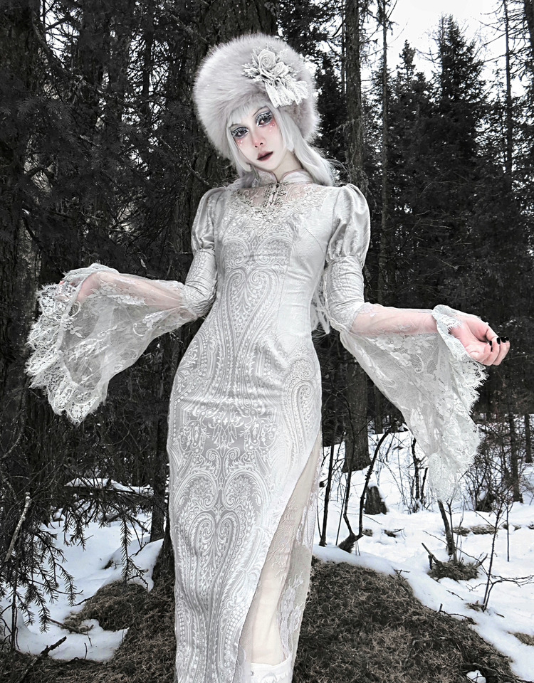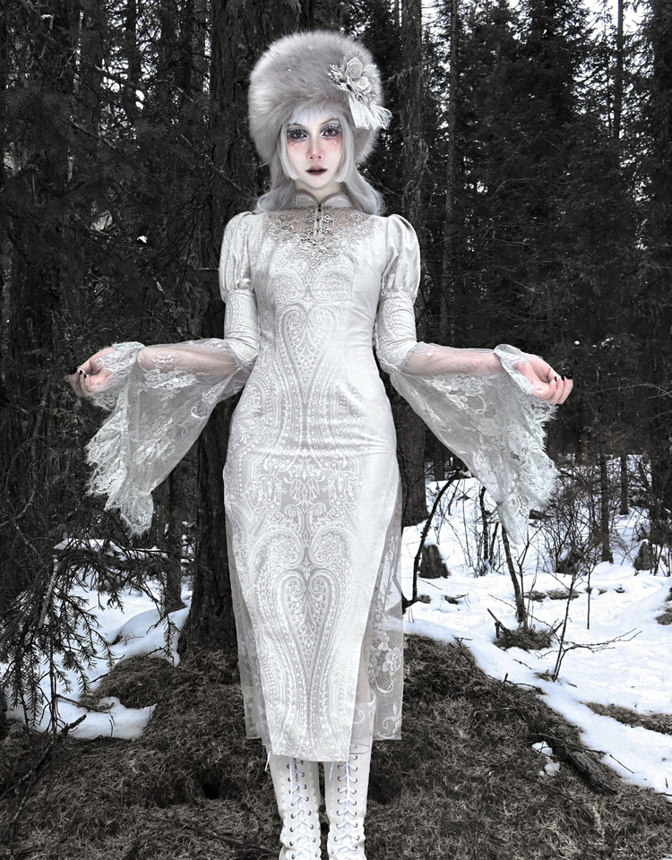 Blood Supply Original ◆ Call of the Snow Country Gothic Jacquard Velvet Mermaid Modified Cheongsam Dress Halloween