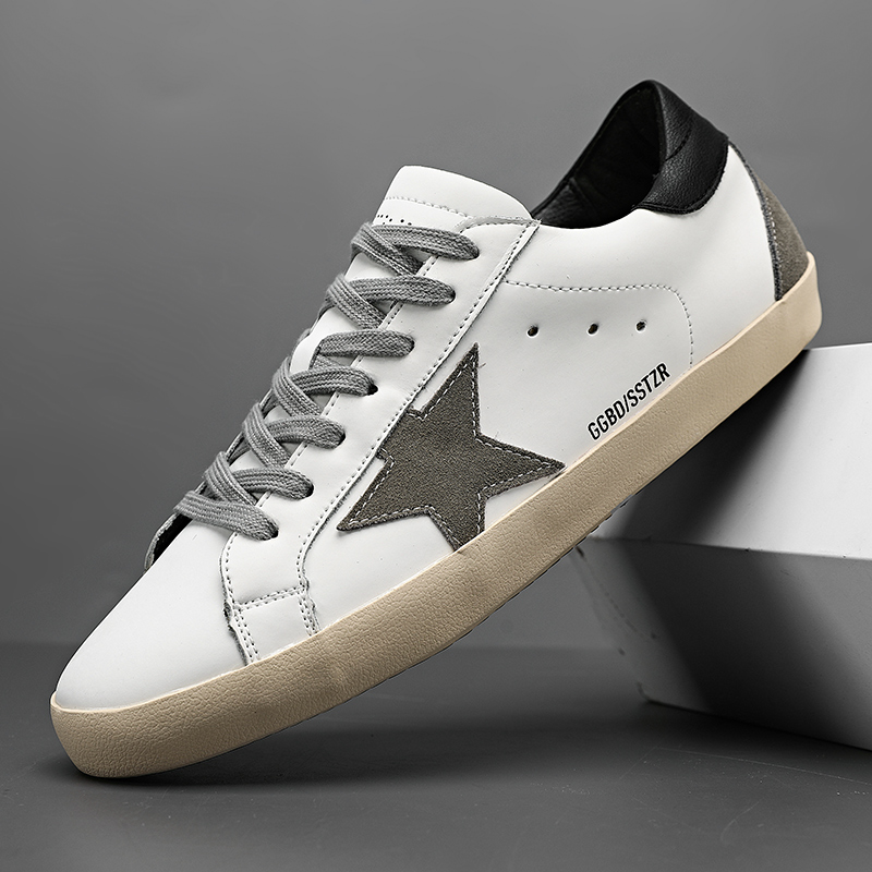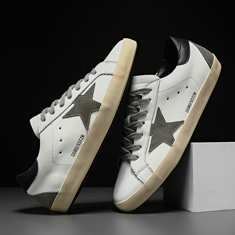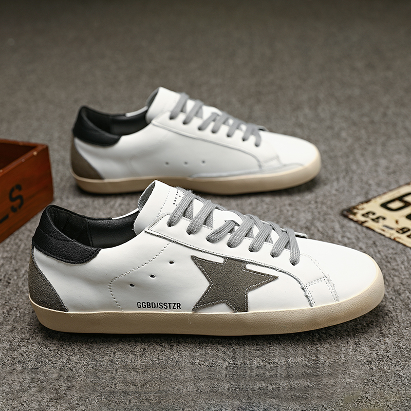 2025 Spring and Autumn Casual Shoes for Men, Genuine Leather Dirty Star White Shoes, Korean Retro Distressed Couple Sneakers for Men