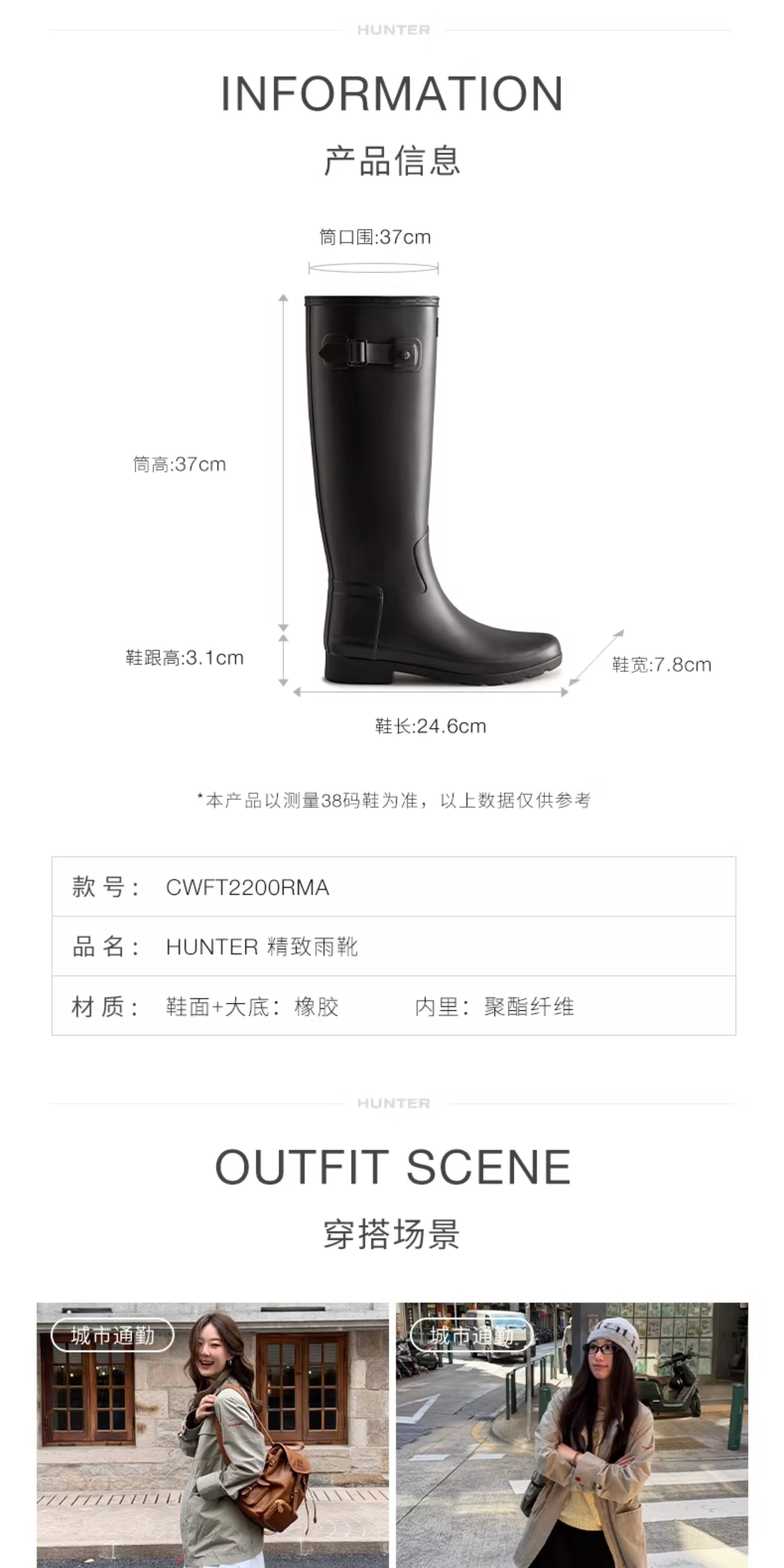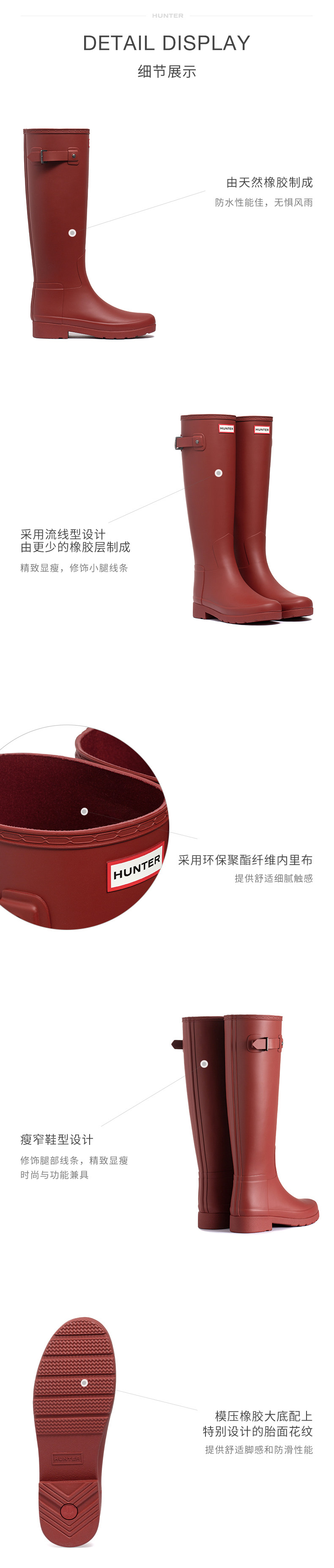 Hunter Women's Rain Boots Refined Rain Boots Camping Waterproof High Boots Rubber Shoes Boots Outdoor Shoes Waterproof Shoes