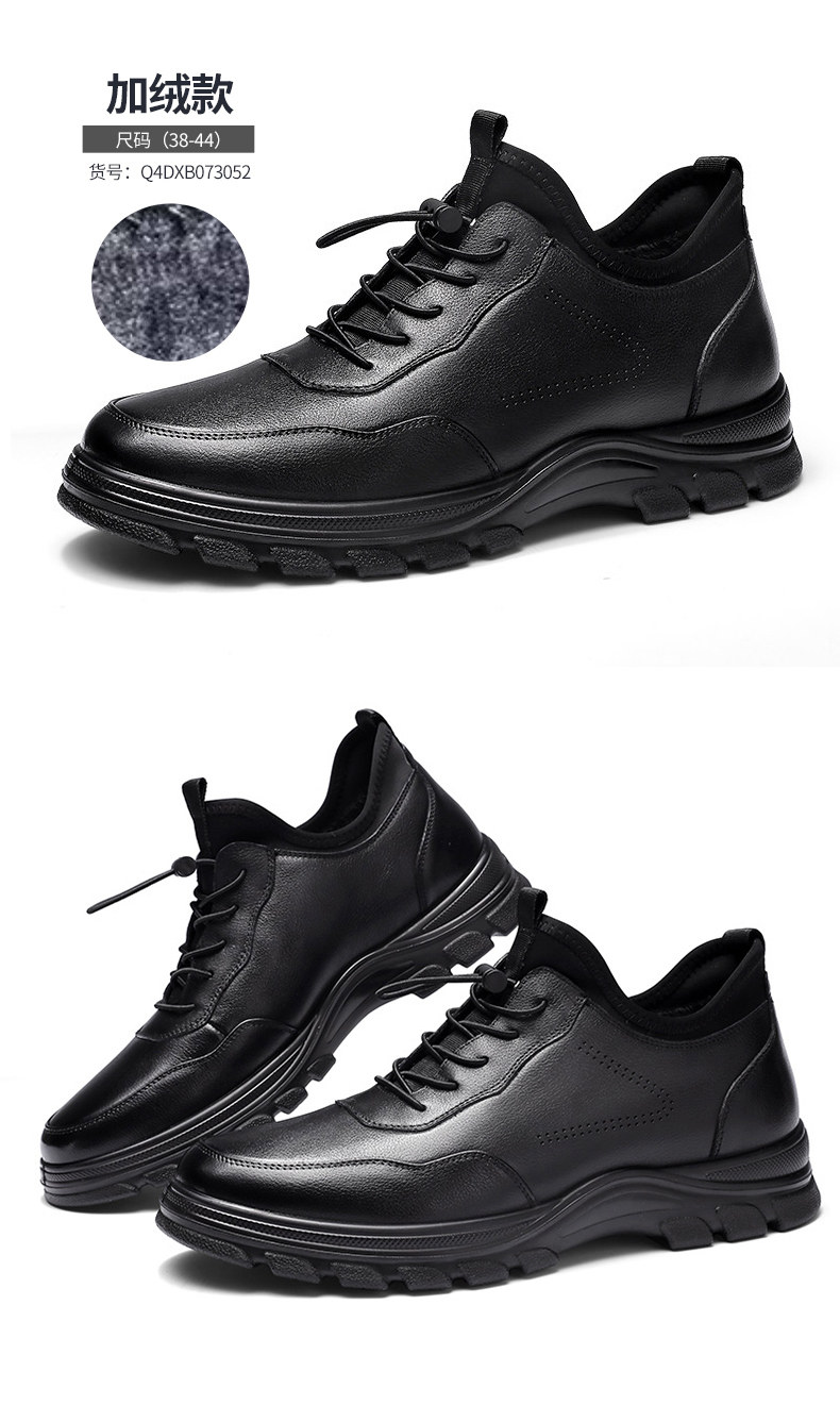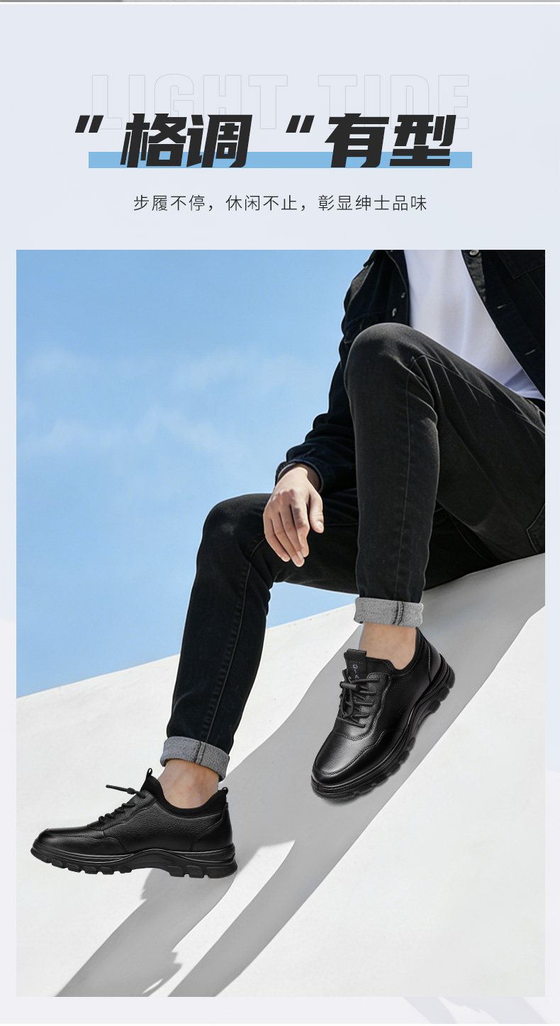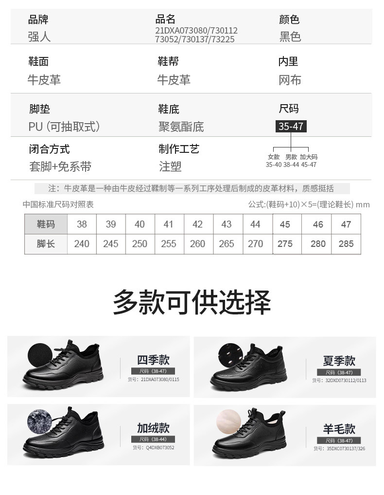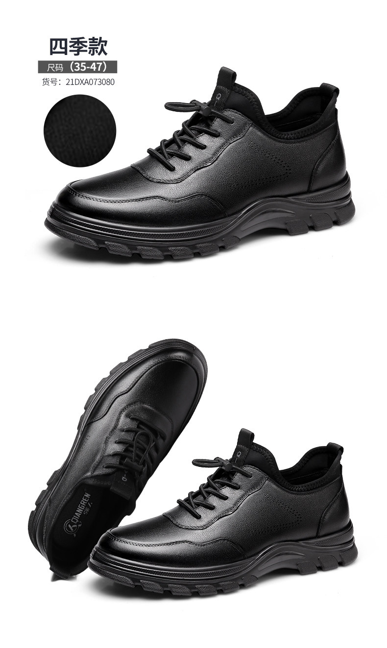 Qiangren 3515 Sports Leather Shoes for Men, Large Size, Genuine Leather, Breathable Business Sports Shoes, Black Formal Leather Shoes, Commuting Shoes
