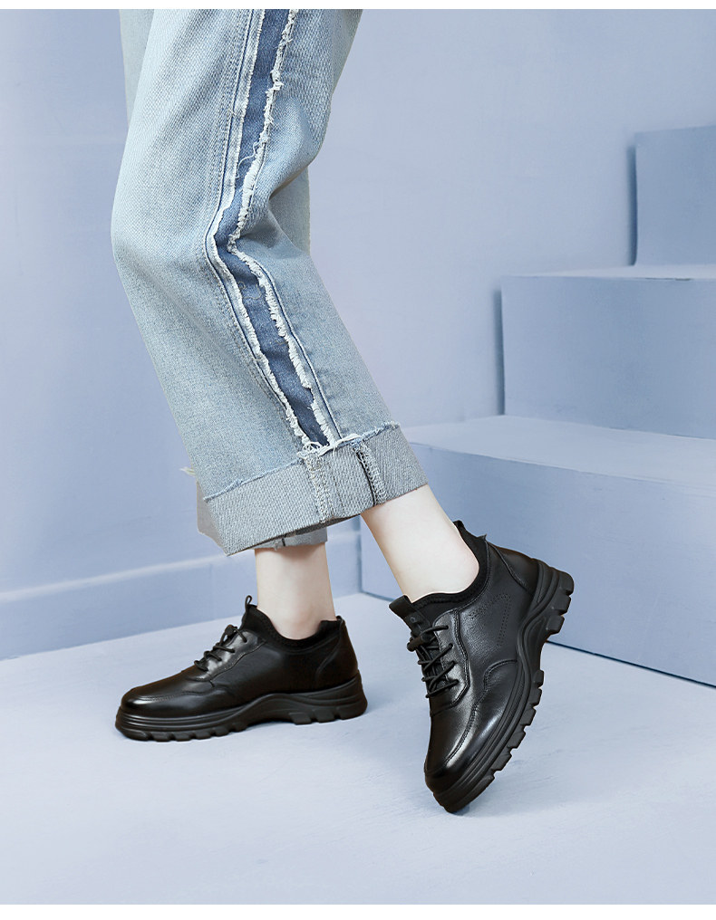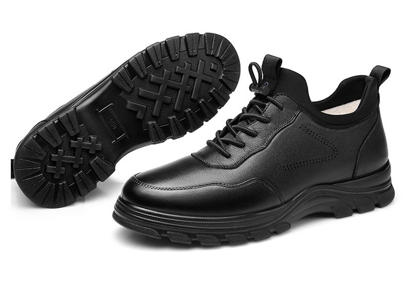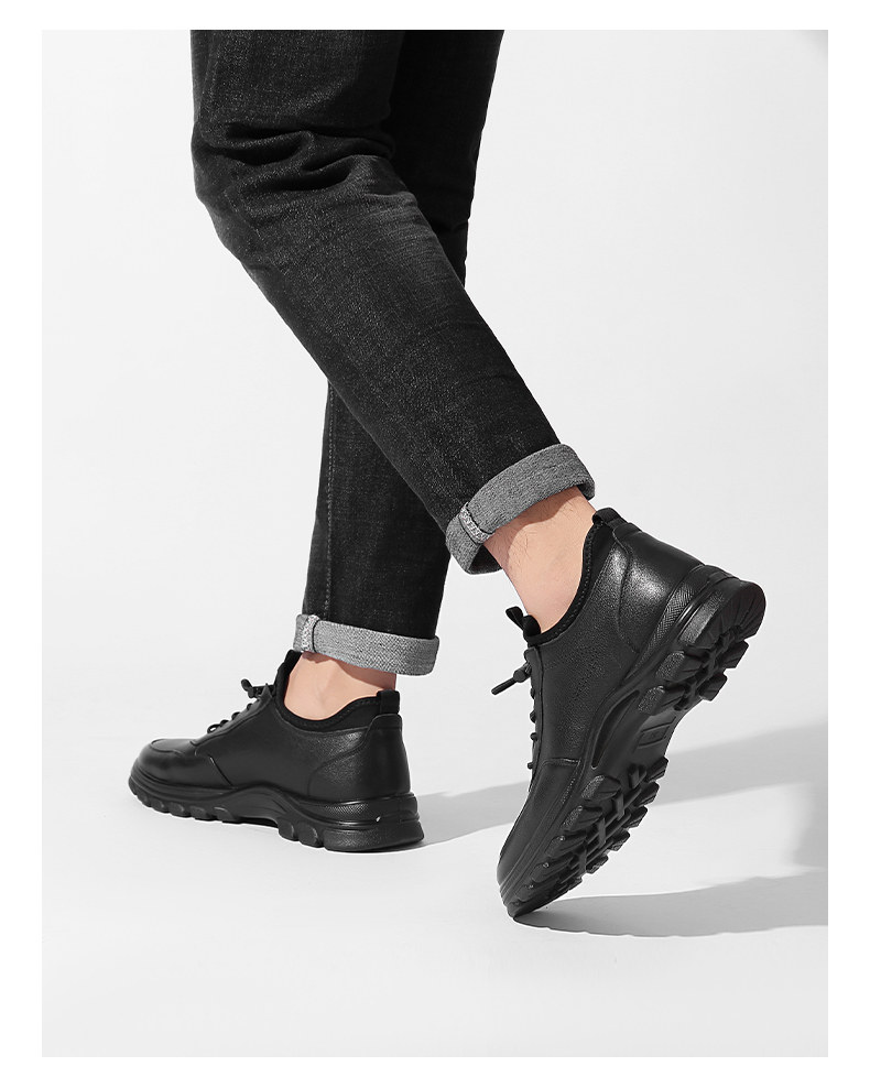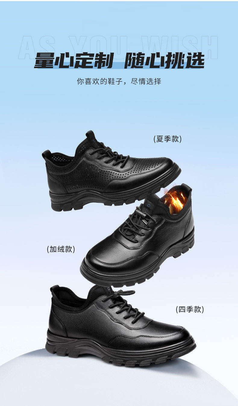 Qiangren 3515 Sports Leather Shoes for Men, Large Size, Genuine Leather, Breathable Business Sports Shoes, Black Formal Leather Shoes, Commuting Shoes